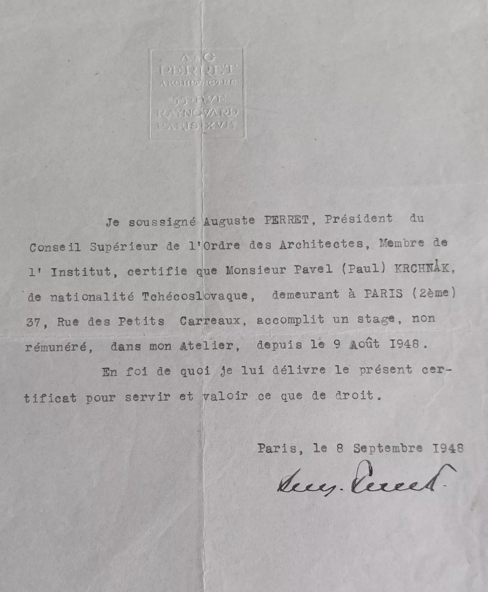 Architekt a urbanista Pavel Krchňák se narodil 17. srpna 1924 v Brně. Po studiu na gymnáziu v Židenicích nastoupil na dva roky jako dílenský rýsovač do Škodových závodů. Po skončení války začal studovat architekturu na Vysoké škole technické v Brně. V roce 1947 získal jako jeden z deseti studentů výjimečnou příležitost pracovat v ateliéru Augusta Perreta, který v té době projektoval mimo jiné i náročnou obnovu válkou zničeného přístavního města Le Havre. Do Francie se Krchňák vrátil o rok později ještě na dvouměsíční odbornou praxi a do roku 1969 získal další zkušenosti i na krátkých zahraničních exkurzích v SSSR (1956 a 1965), v Polsku (1960), Finsku a Švédsku (1965), Francii a Itálii (1969).