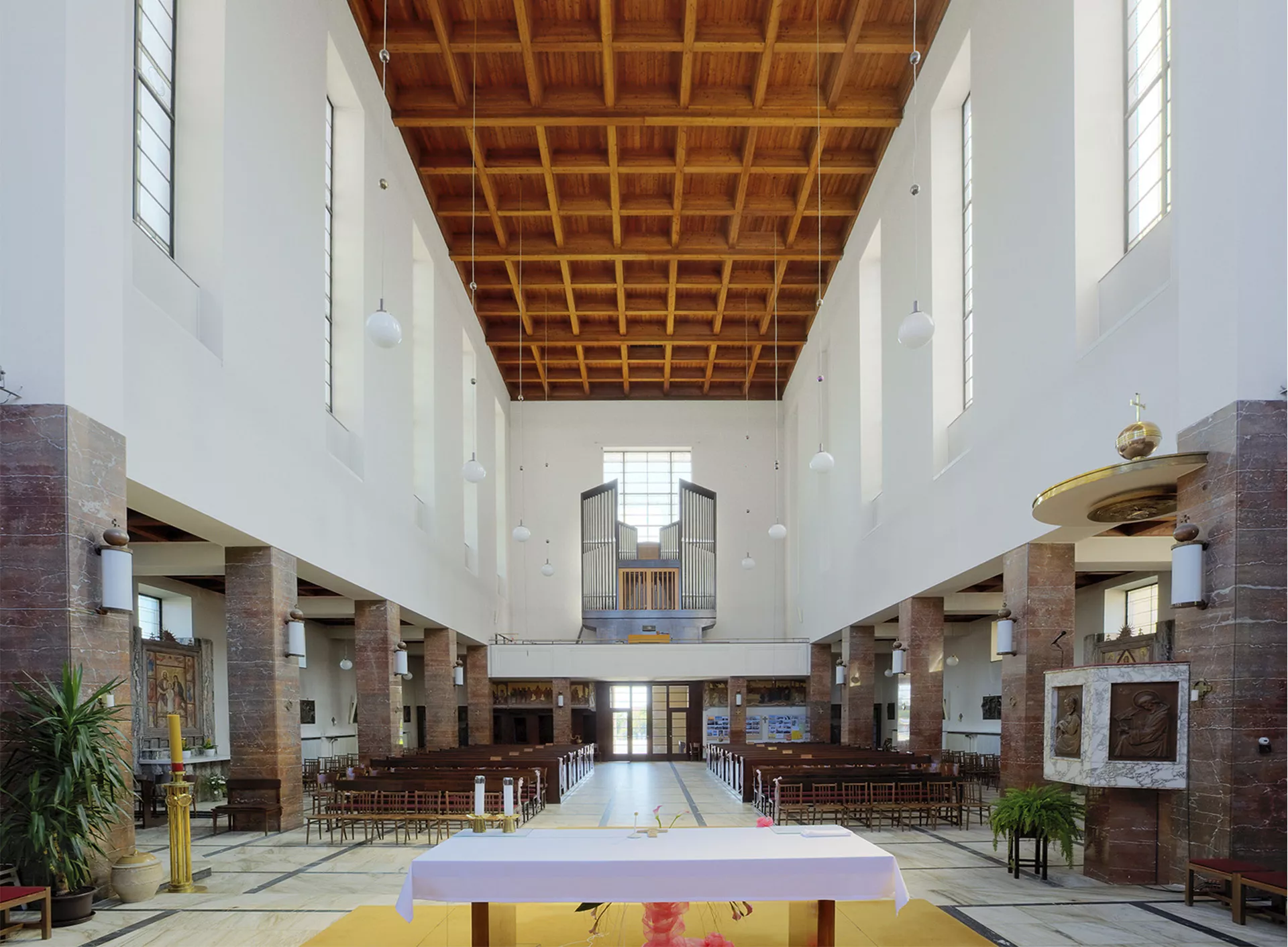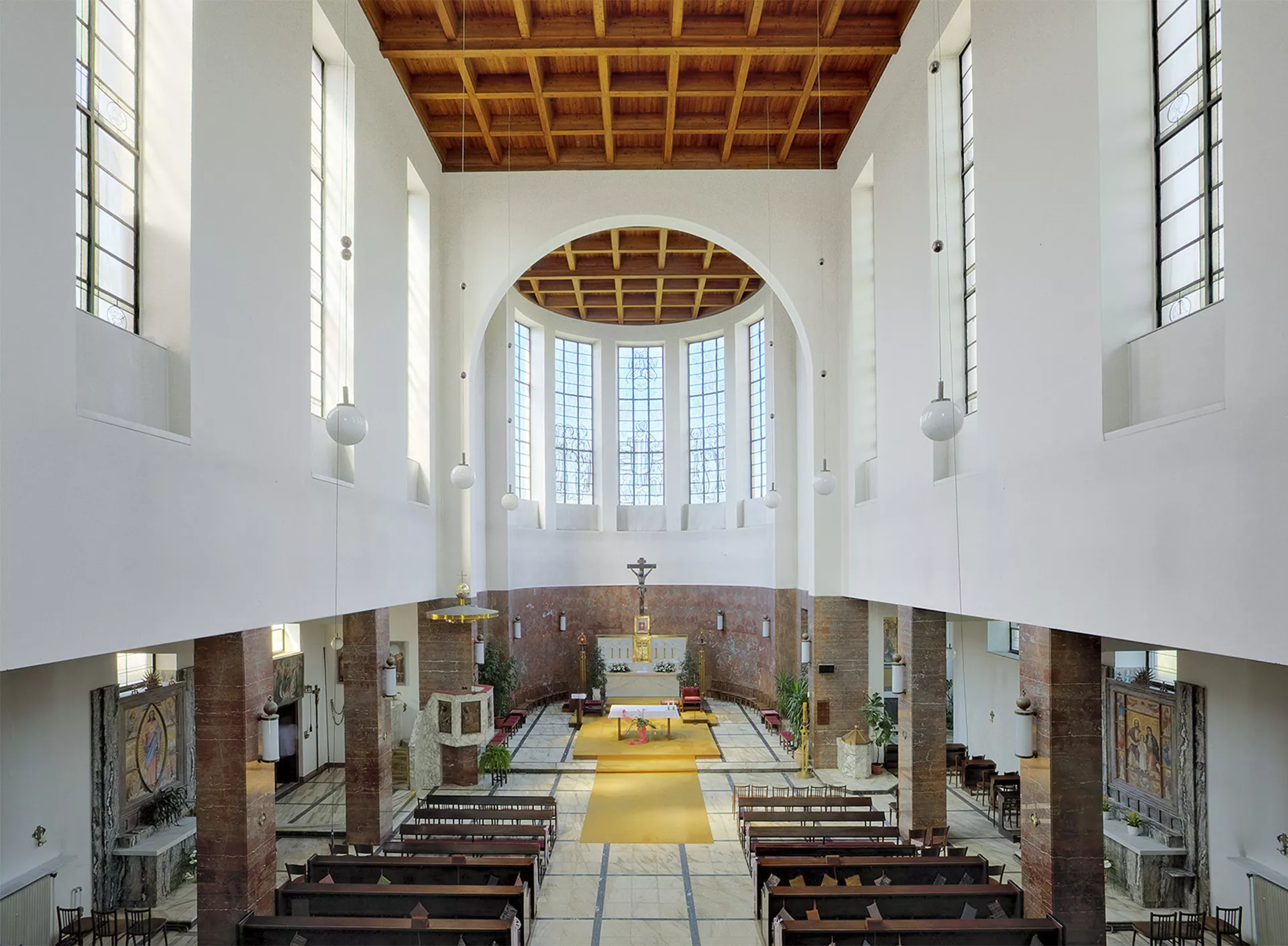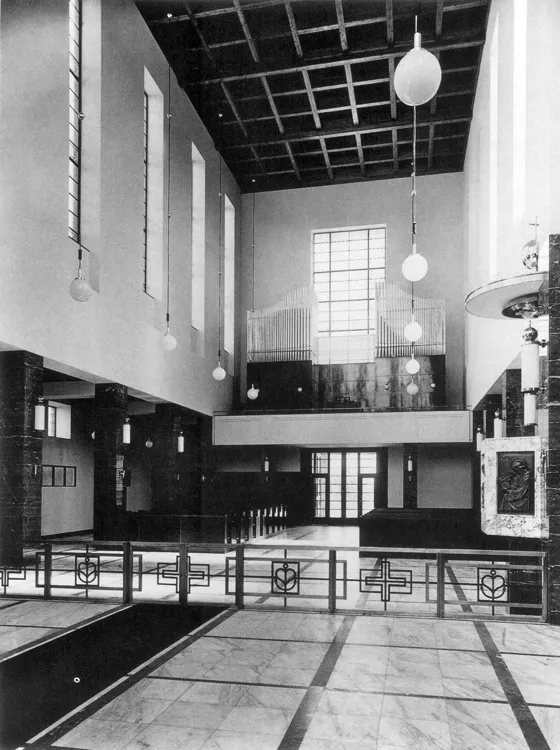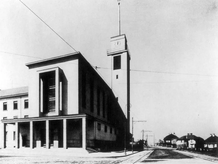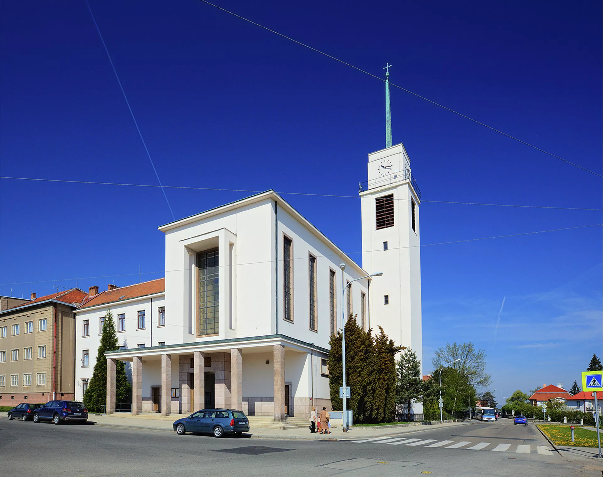 Nach der Entstehung der Tschechoslowakei erweiterte sich die Bauaktivität im deutschen Beamten- (heute Masaryk-) Viertel in Brünn auch auf die Pisárky-Hänge und auf das heutige Gebiet von Stránice und knüpfte so an die Erbauung des tschechischen Beamtenviertels in Žabovřesky (Sebrowitz) an. Vertreter des altbrünner Klosters entschlossen sich auf diesem so umfangreich neu bebauten Gebiet eine Kirche mit einem Pfarrhaus zu erbauen, die die Bedürfnisse der immer anwachsenden Zahl der Pfarrkinder des Masaryk-Viertels befriedigen würde. Aus der Vielzahl kirchlicher Grundstücke wurde die Parzelle auf dem heutigen Platz Míru (früher Babákovo náměstí) ausgewählt und 1930 wurde anlässlich des 1500. Todestages des bedeutenden kirchlichen Lehrers der Grundstein für die „Jubiläumskirche“ des hl. Augustinus gelegt. Professor Vladimír Fischer, eine bedeutende pädagogische Persönlichkeit der Tschechischen Technischen Hochschule in Brünn, wurde zur Ausarbeitung eines Entwurfs der Kirche und des Pfarrhauses aufgefordert. Der Entwurf entstand in den Jahren 1929–30; die Baufertigstellung und die Kirchweihe wurden jedoch erst im Jahre 1935 vollzogen. Fischers Entwurf zeigt formelle Mittel des Funktionalismus auf, was in den glatten Wänden der schlichten geometrischen Körper, die das Volumen der Kirche bilden, zum Ausdruck kommt. Die Grundrisslösung und die Komposition einzelner architektonischer Elemente entsprechen aber der traditionellen Auffassung eines katholischen Kirchenbaus, der von den altchristlichen Modellen ausgeht. In diesem Fall handelt es um eine dreischiffige Basilika mit einem höherragenden Hauptschiff mit Fenstern, die den Raum belichten. Das zum Nordosten orientierte Hauptschiff ist mit einer Apsis abgeschlossen und ihre flache Kassettendecke weist auf die Basiliken der italienischen Renaissance hin – genauso der Bogen, der die Apsis abtrennt, und die perspektivisch zusammenlaufenden Linien des Granitpflasters. Ein klassizistisch wirkendes Element stellt auch der Säulengang der Hauptfront dar; italienischen Vorbildern steht der frei angeschlossene schlanke Glockenturm nahe. Die jüngere Generation der Brünner Architekten sah diese historischen Konnotationen und sie lehnte es ab, den Bau ein progressiv funktionalistisches Werk zu nennen. Seine Einzigartigkeit äußert sich eher in der durchdachten städtebäulichen Lösung: der elegante Baukörper der Kirche ist in unerwarteten Durchblicken von den anliegenden Straßen aus sichtbar, sowie von fernliegenden Aussichtspunkten mit Blick auf die Hänge des Kraví hora (Kuhberg).