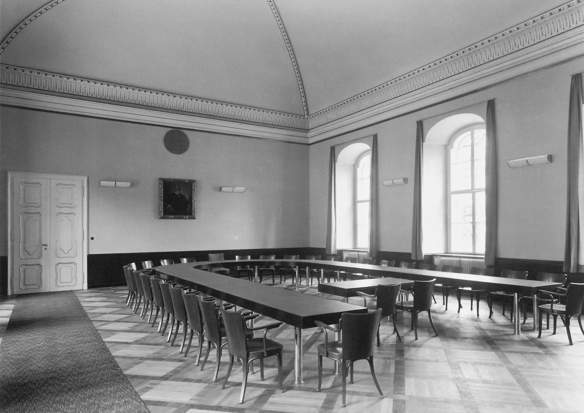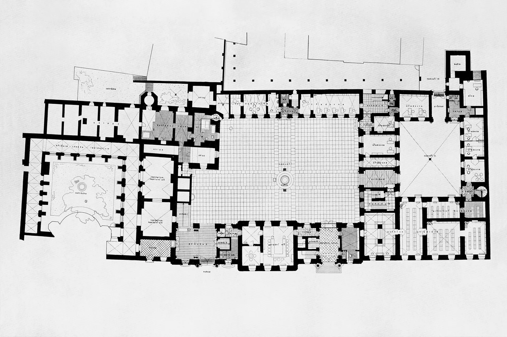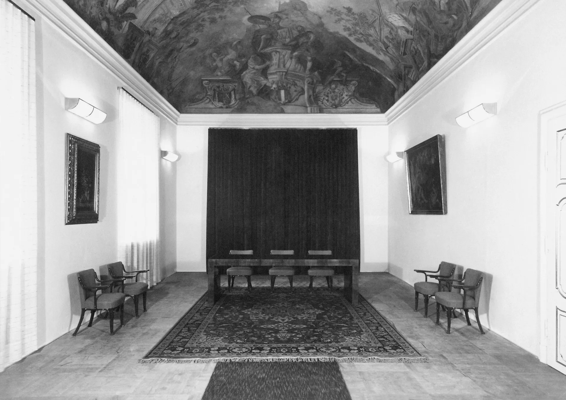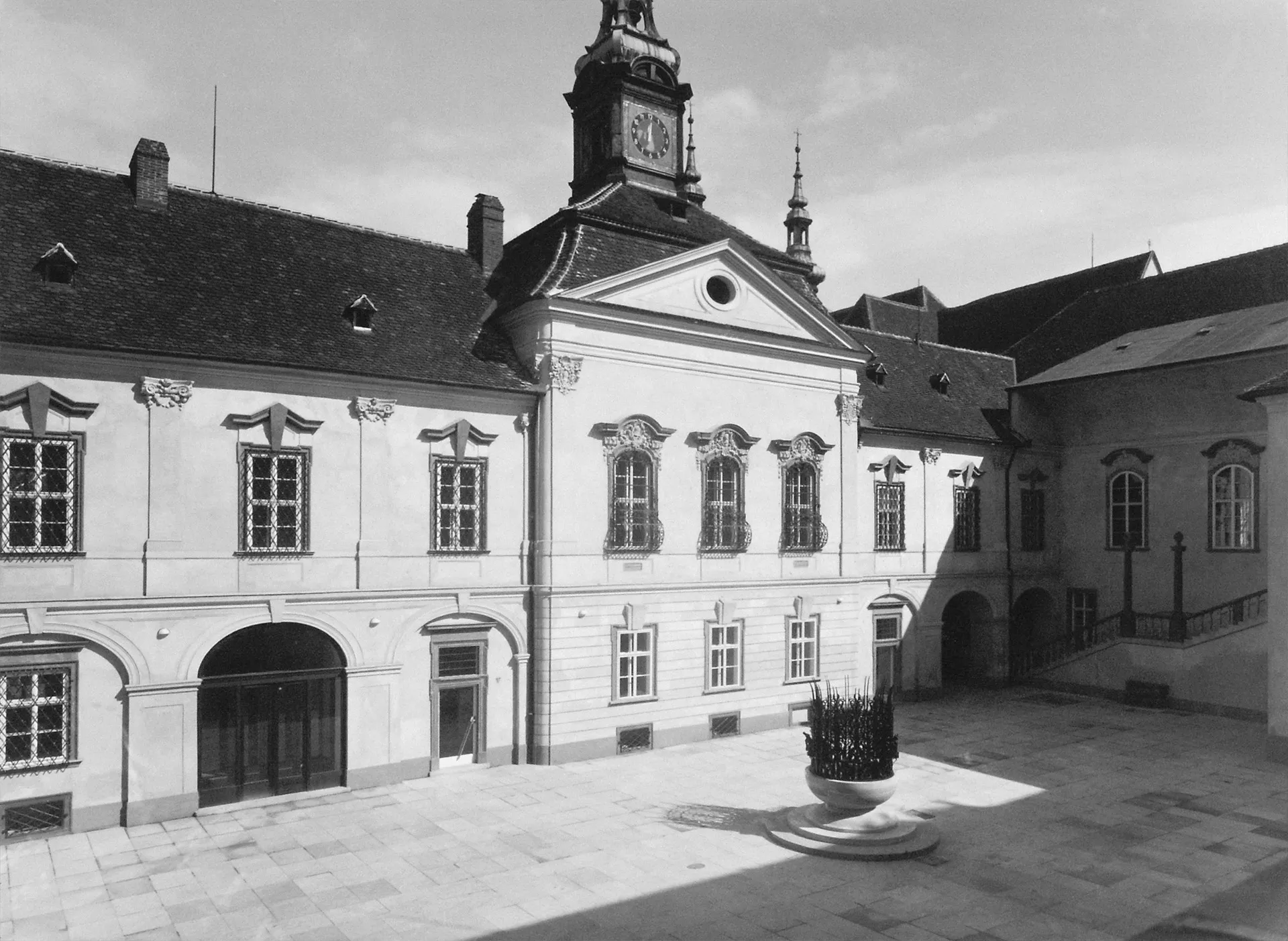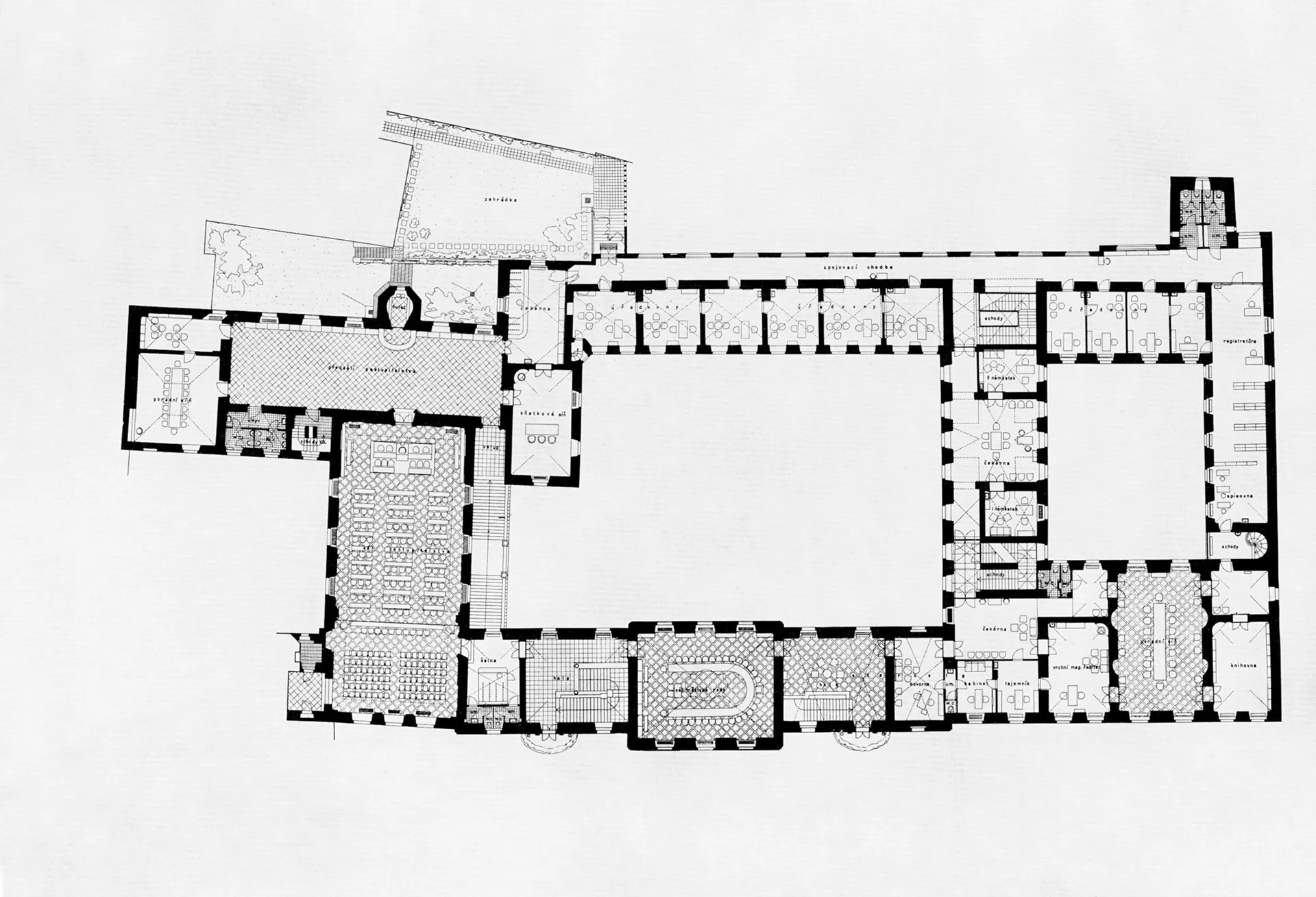 Die Geschichte des sog. Neuen Rathauses in Brünn reicht bis ins Mittelalter zurück, als in den Räumlichkeiten des Kapitelsaales des Dominikanerklosters neben der Kirche des hl. Michael Landtage und Gerichtssitzungen des Landes Mähren abgehalten wurden. Ende des 16. Jahrhunderts wurde über dem Kapitelsaal und teilweise über dem Kreuzgang des Klosters nach dem Entwurf des italienischen Baumeisters Pietro Gabri ein eigenständiger Teil für den Landtag mit zwei großen Sälen – dem Landtagssaal und dem Rittersaal – und kleineren Beratungsräumlichkeiten errichtet. Diese Räumlichkeiten sind bis heute von der erhalten gebliebenen Renaissance-Außentreppe zugänglich. Im Laufe des 17. Jahrhunderts wurden alle Landesämter in Brünn und Olmütz (Olomouc) zu einem Amt mit Sitz in Brünn zusammengelegt, was eine neuerliche Erweiterung des Objekts im Jahre 1666 nach einem Entwurf von Ondřej Erna erforderlich machte. Weitere bauliche Adaptierungen erfolgten in der ersten Hälfte des 18. Jahrhunderts nach einem Entwurf von Mořic Grimm. In der zweiten Hälfte des 19. Jahrhunderts wurde der Bau des neuen Landhauses beschlossen (der heutige Sitz des Verfassungsgerichts in der Straße Joštova ulice), und nach dessen Errichtung wurde das Gebäude am Platz Dominikánské náměstí an die Stadt Brünn verkauft. Zuerst diente es als Gebäude des Städtischen Museums, des Gymnasiums und anderer Vereine und nach und nach auch einer immer größeren Anzahl von Magistratsabteilungen, die im Objekt des heutigen Alten Rathauses keinen Platz mehr fanden. Deshalb wurde Anfang der 1930er die Renovierung des ehemaligen Landhauses sowie dessen Adaptierung für die Zwecke der städtischen Ämter beschlossen. Das Projekt wurde dem funktionalistischen Architekten Josef Polášek übertragen, der bestrebt war, das ursprüngliche Aussehen des Baudenkmals möglichst gut beizubehalten. Der Renovierung, die 1934 – 1936 erfolgte, ging eine neue Vermessung und Einzeichnung des Gebäudes voran, da die ursprünglichen Pläne nicht erhalten geblieben waren. Die Einleitung von Leitungsnetzen und moderner Technologie in die barocken Gebäude machten auch gewisse bauliche Eingriffe erforderlich, wie z.B. Wasserleitung, Abwasserkanalisation, elektrische Beleuchtung, Telefon, Signalanlage, Rundfunk, Zentralheizung u.a. Der Hof wurde neu gepflastert, was dem Komplex einen repräsentativeren Charakter verlieh. Weiters wurden von Jan Janša Restaurierungsarbeiten durchgeführt, wie die Konservierung der Fresken im Landtagssaal, auf der Treppe und im Trausaal. Polášek ist es hier gelungen, ein einzigartiges Interieur zu schaffen: da die meisten ursprünglichen Dekorationen erhalten geblieben waren, wurde dadurch ein Kontrast zu den modernen einfachen Möbeln geschaffen. Das Rathaus wurde am 23. September 1935 feierlich eröffnet und aus diesem Anlass trug Jiří Mahen das folgende Gedicht vor: „….jsou města, v nichž ti člověk ruku podá, / že možnostmi jsou stále bohata – / z nich bude Brno! Pro něj chcem-li žíti, / náš musí býti svět, v němž obzor práce svítí / vší odvahou! My stanem nad osudem, / že také ve své město věřit budem!“ [“… es gibt Städte, in denen man dir die Hand reicht, / die stets reich an Möglichkeiten sind – / eine davon wird die Stadt Brünn sein! Wollen wir für sie leben, / muss die Welt unser sein, in der der Horizont der Arbeit leuchtet / mit ganzem Mut! Wir stehen über dem Schicksal, / dass wir auch an unsere Stadt glauben!“] Zurzeit ist das Neue Rathaus der Sitz des Magistrats der Stadt Brünn und im Landtagssaal finden unter dem neu restaurierten Fresko von Daniel Gran Sitzungen des Stadtrates und des Gemeinderates statt.