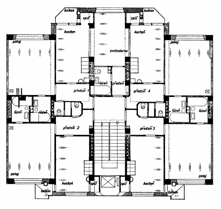 Das Mietshaus Nr. 3 in der Bayerova-Straße ist ein Beispiel für das Funktionieren der Baupraxis der Firma Dvořák und Kuba. Die Errichtung des Rohbaus dauerte von der Pfahlgründung bis zur Überdachung lediglich 93 Tage; dabei zeichnete sich das Haus durch einen durchdachten Entwurf des Grundrisses und eine qualitätsvolle handwerkliche Ausführung von Details aus. In jedem Stock befanden sich Kleinwohnungen in Kombination mit Garçonnieren, im Souterrain war sogar ein zentraler Kühlschrank untergebracht. Die Straßenfassade des Hauses wurde von einem zentralen Risalit mit einem durchgehenden Fenster des Aufzugschachtes, das das Treppenhaus beleuchtete, und von Balkonen mit Opaxitverkleidung gebildet. Opaxit wurde auch im lichtdurchfluteten Foyer benutzt, dessen Raum durch eine Spiegelwand optisch vergrößert wurde. Heute ist dieses Haus, das wie der Großteil der Mietshäuser in der Umgebung nicht unter Denkmalschutz steht, zum Abriss bestimmt, um einer Vergrößerung des benachbarten Gebäudes des Obersten Gerichtes Platz zu machen. PH