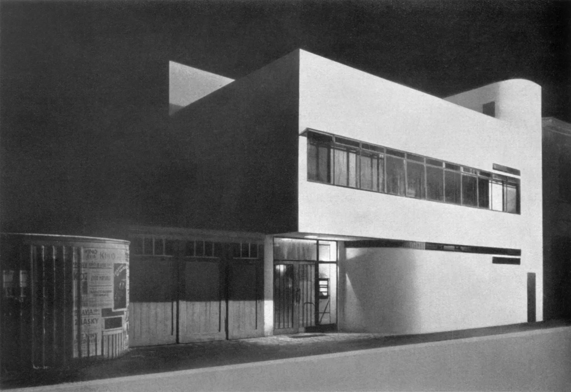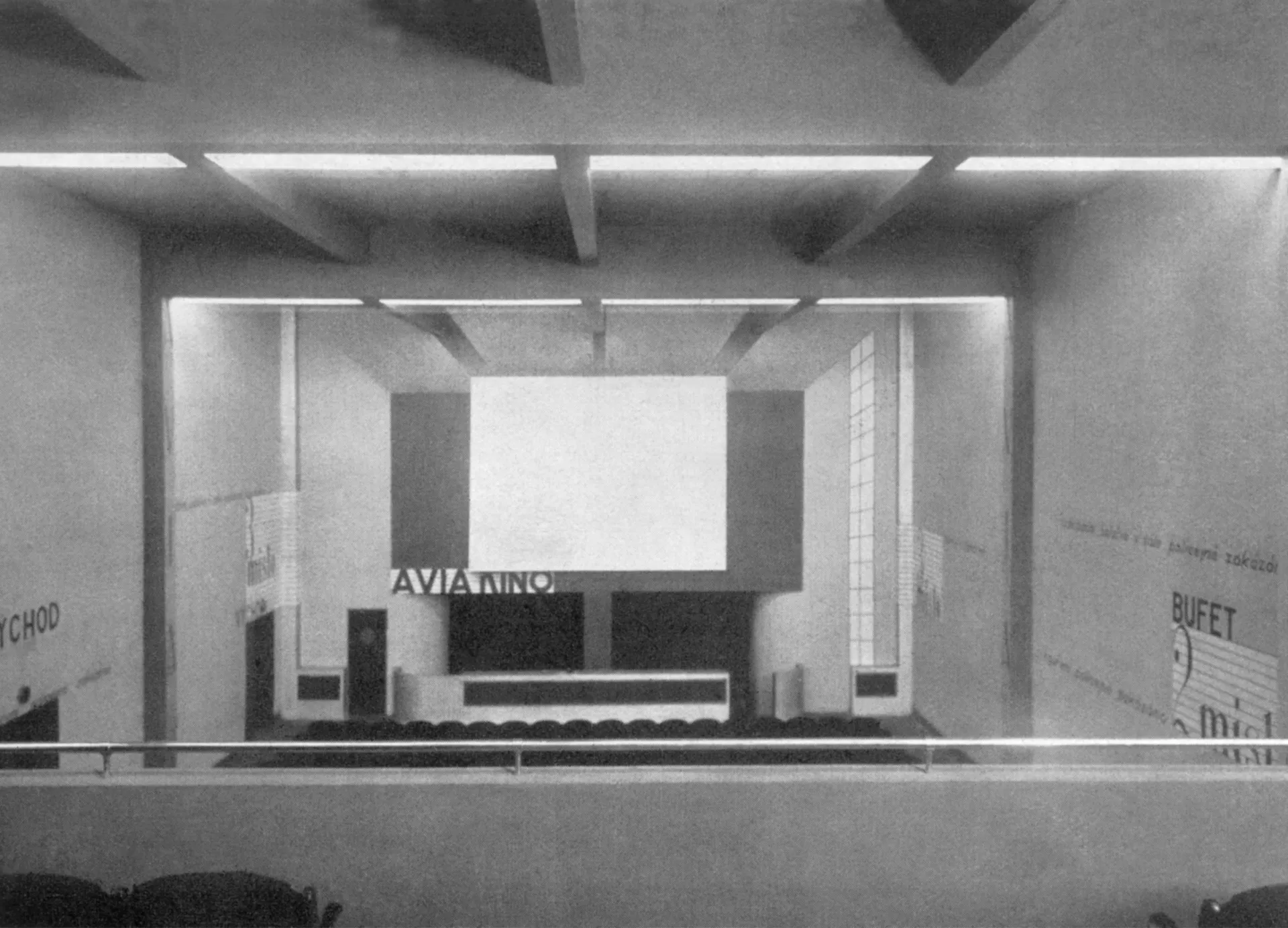 Das Gebäude des Kinos Avia von Josef Kranz in der Štolcova-Straße sollte ursprünglich Bestandteil eines größeren Sokol-Areals mit Turnhalle und Kulturzentrum sein, das jedoch letztendlich nicht realisiert wurde. Gebaut wurde nur ein Teil des geplanten Komplexes, der ein Kino, eine Wohnung für den Verwalter, Sporträume und einen Sportplatz im Freien enthielt. Die niedrige Straßenfassade des Objekts ist gleich wie bei Kranz' Café Era grafisch durch elementare Formen verschiedener Typen von Wandöffnungen gegliedert. Bestandteil der Fassade ist der verglaste zurückversetzte Haupteingang auf der linken Seite, dessen abgerundete Wand sich beim erhöhten Treppenhaus des Vorfürraums auf der rechten Seite wiederholt. Die schmale Fensterlinie im Erdgeschoss zeigt sich noch einmal im ersten Stock, der jedoch von einem Bandfenster dominiert wird, das nach außen hin den heterogenen Innenraum vereinheitlicht. Ein wichtiges künstlerisches Element war die augenfällige Aufschrift KINO AVIA über dem Eingang. Über die Eingangshalle mit den Garderoben gelangte man in den Kinosaal und zur Treppe, die in den ersten Stock und zur Zuschauergalerie führte. In diesem Geschoss befanden sich auch ein Büro, eine weitere Garderobe und die Wohnung des Verwalters, die im hinteren Teil der Parzelle lag. Heute werden die Räume des ehemaligen Kinos als Sportareal benutzt, was beträchtliche Umbauten notwendig machte. Die äußere Gestalt des Gebäudes ist jedoch im Wesentlichen erhalten geblieben. PH
