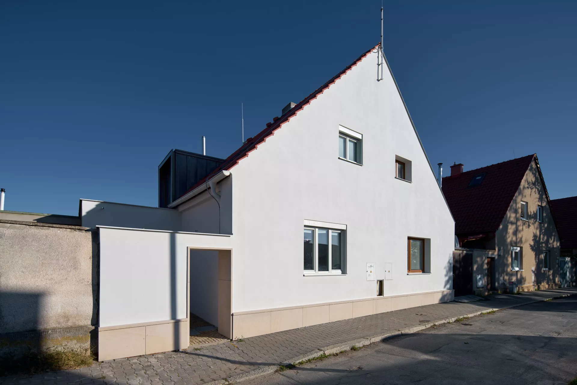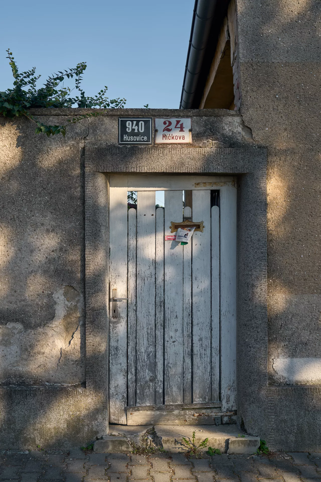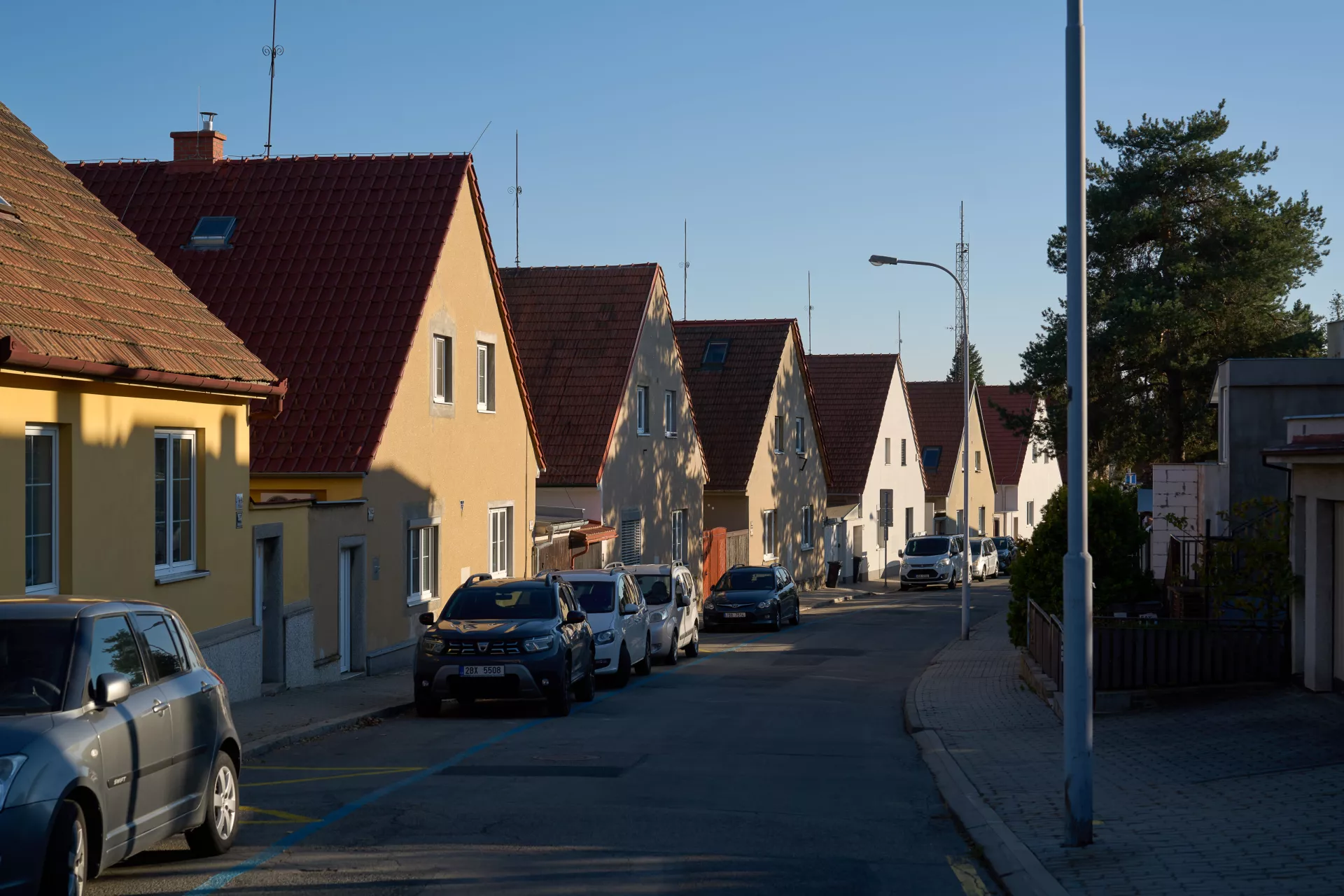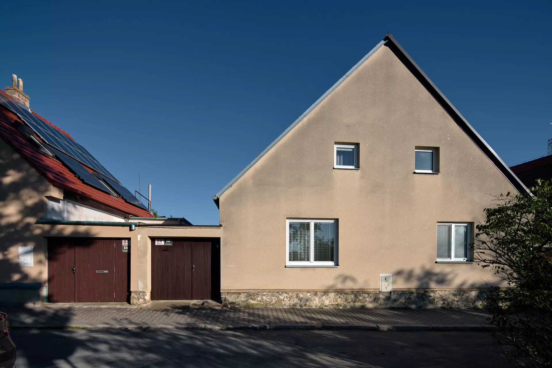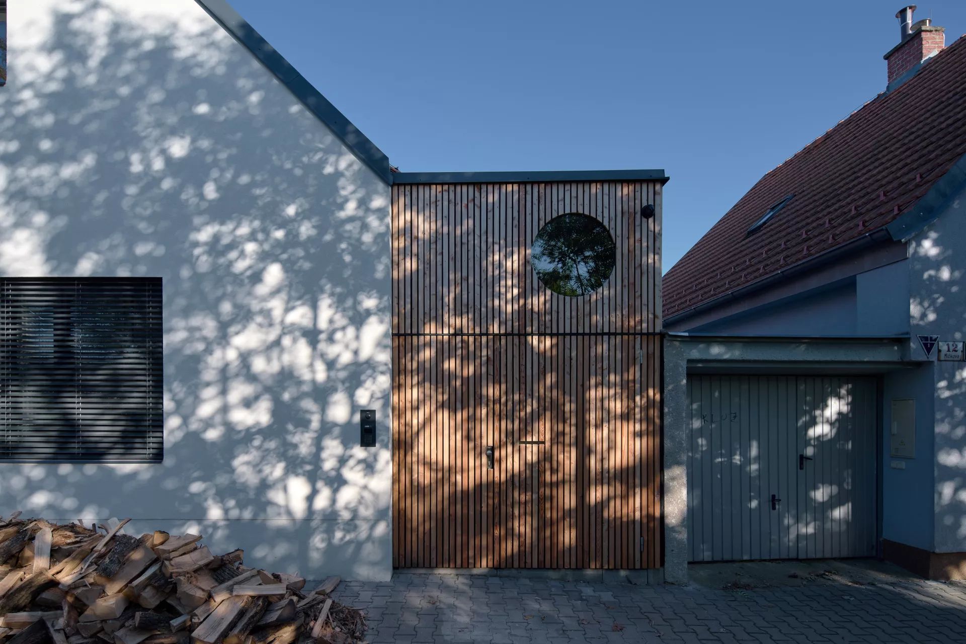 Im Jahre 1923 entwarf Bohuslav Fuchs für die Baugenossenschaft „Rodina“ („Familie“) eine Reihe von elf Doppelhäusern in der Míčkova-Straße. Die Häuser sind Bestandteil einer Arbeiterkolonie, die auf dem Gipfel eines bewaldeten Hügels am Rand des Villengebietes des Stadtteils Štefánikova čtvrť (Štefánik-Viertel) entstand. Die Doppelhäuser erinnern mit ihrer Form an typische mährische Häuser auf dem Land, ihr Grundriss ist jedoch bereits den Bedürfnissen von Stadtbewohnern angepasst. Die Gebäude sind in zwei identische spiegelverkehrte Wohneinheiten aufgeteilt. Hinter dem Eingangs-Windfang mit anliegender Toilette befanden sich im Erdgeschoss eine Küche (die auch als Badezimmer benutzt wurde) und ein großes Wohnzimmer. Vom Eingangsbereich führte eine Treppe in das bewohnbare Dachgeschoss, wo zwei Schlafzimmer mit Abstellräumen lagen. Durch die Unterbringung zweier Wohneinheiten unter einem gemeinsamen Dach gelang es Bohuslav Fuchs sowohl die Bau- als auch die Betriebskosten zu senken. Angesichts der wachsenden Anforderungen an einen Wohnraum wurden die zwei Wohneinheiten in späteren Jahren miteinander verbunden, im Äußeren blieb jedoch der ursprüngliche Charakter der Häuser erhalten. LV