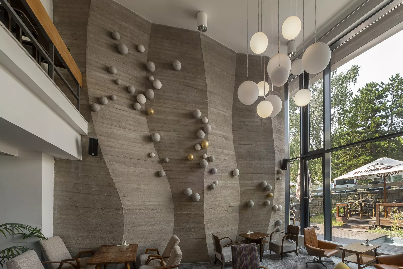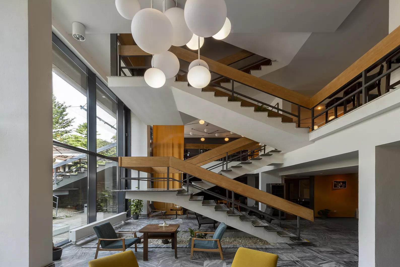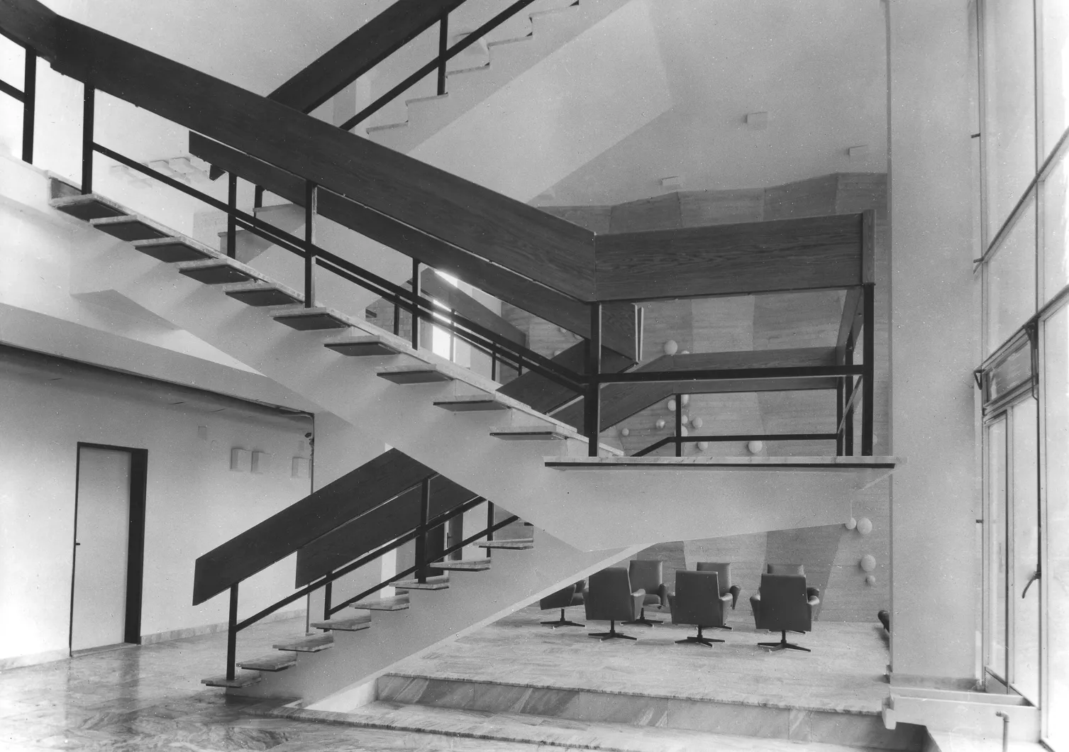 Das Gebäude des Forschungsinstituts für mathematische Rechenmaschinen, entworfen vom Architekten Zdeněk Řihák im Atelier 01 des Staatlichen Handelsprojektinstituts Brünn, ist zwischen der Černopolní und Durďák-Straße situiert. Das niedrige dreigeschossige Bürohaus knüpft mit seinem Volumen an die umgebende Bebauung an und durch seine Konzeptionsanordnung kopiert es anscheinend den horizontalen Block der Eingangspartie des Kinderkrankenhauses von Bedřich Rozehnal, erbaut 1948-1954. Das erhöhte Erdgeschoß und das offene Souterrain des Instituts werden von einer geräumigen Eingangshalle mit einer durchglasten Wand zur Straße hin und einem zwischen zwei Tragepfeiler gesetztem Treppenhaus gebildet. Im Inneren dominiert eine plastisch geformte Betonwand, die von der Künstlerin Eva Kmentová, Mitglied der Gruppe Trasse, stammt. Monumentaler strukturierter Beton der Wand trägt in seinen Vertikalen weiße und goldene Kugeln, die mit ihrem zufälligen Rhythmus die Rechentechnik der Zeit symbolisieren sollen. Der Treppenraum knüpft auf zwei weitere geschlossene Bürogeschosse an, die ursprünglich an der Fassade von dem Eingangsteil mit atypischen Vorhangpaneelen mit durchlaufenden Fenstern und vertikalen Aluminiumbändern getrennt waren. Für ihre Zeit progressive Gebäudekonzeption hatte zur Aufgabe einen luftdurchströmten Eindruck des offenen Erdgeschosses mit eingehängtem Treppenhaus zu vermitteln, das Treppenhaus steigt gleichsam über das Wasserreservoir des Souterrains durch die durchglaste Wand nach draußen in den Vorgarten empor. Der farbige Kesselraum des Instituts, die der Architekt dem Betrachter beim Durchgang des Interieurs enthüllte, kontrastierte noch mehr in seinem rohen Zustand mit den edlen Metallmaterialien, mit glattpoliertem Beton und Glas. Mit dieser Konzeption knüpfte Řihák wohl an Vorbilder aus der Zeit zwischen den beiden Weltkriegen, bereicherte sie jedoch um moderne architektonische Elemente, wie es die erste Nutzung der Technologie der gehobenen Decke bei diesem Bau beweist. Nach 1989 diente ein Teil des Erdgeschosses als Verkaufsstelle für Heizkörper. Das Gebäude wurde nach 2000 umfangreich renoviert, dabei wurden von der Fassade die Vorhangpaneele entfernt und die Fenster und Türen ausgetauscht. Die ursprüngliche Konzeption der architektonischen Lösung verschwand unter dem Auftrag von braunen Blocks des neuen Putzes, es verschwanden auch die offenen technischen Einrichtungen. Wie ein Wunder bewahrte das Interieur zum großen Teil seine Authentizität, nicht nur in Gestalt des skulpturalen Werkes, des dominanten räumlichen Treppenhauses, sowie des draußen befindlichen Wasserreservoirs, aber auch in der neuen Nutzung des Eingangsbereiches als Café. Der Betreiber richtete das Café geschmackvoll im Retro-Stil ein, so dass der Besucher die Gelegenheit beim Kaffeetrinken hat, einige erhaltene Teile der Inneneinrichtung und die Kunst von Eva Kmentová zu bewundern.