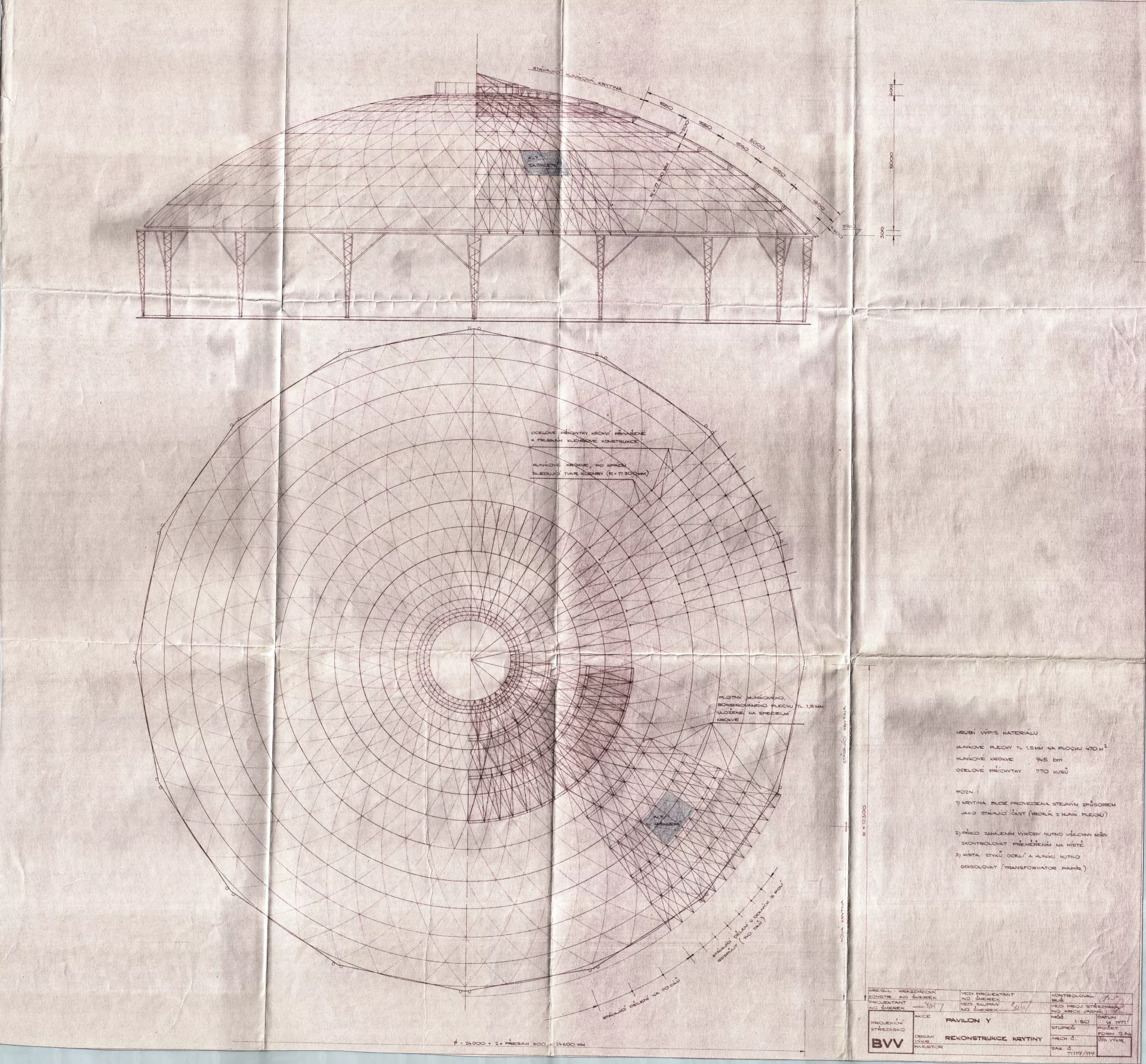 Bevor die konstruktionsmäßig unikalen Kuppeln der Pavillons C und Z errichtet wurden, war dieses System von Ferdinand Lederer, der damals als Professor an der Brünner Technischen Hochschule tätig war, bei dem Bau des Pavillons Y erprobt worden. Es handelte sich um eine durch spiralförmig gestaltete Stahlstäbe in die Form einer Kugelkappe entworfene Konstruktion; an Schnittstellen waren die Stäbe durch Stahlbügel verknüpft. Im Jahre 1982 wurde der kleine Pavillon unweit des Bauer-Schlösschens um einen Erweiterungsbau mit Eingang und Sanitäranlagen nach dem Entwurf vom Architekten Jaroslav Šmerek ergänzt. PH