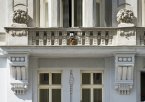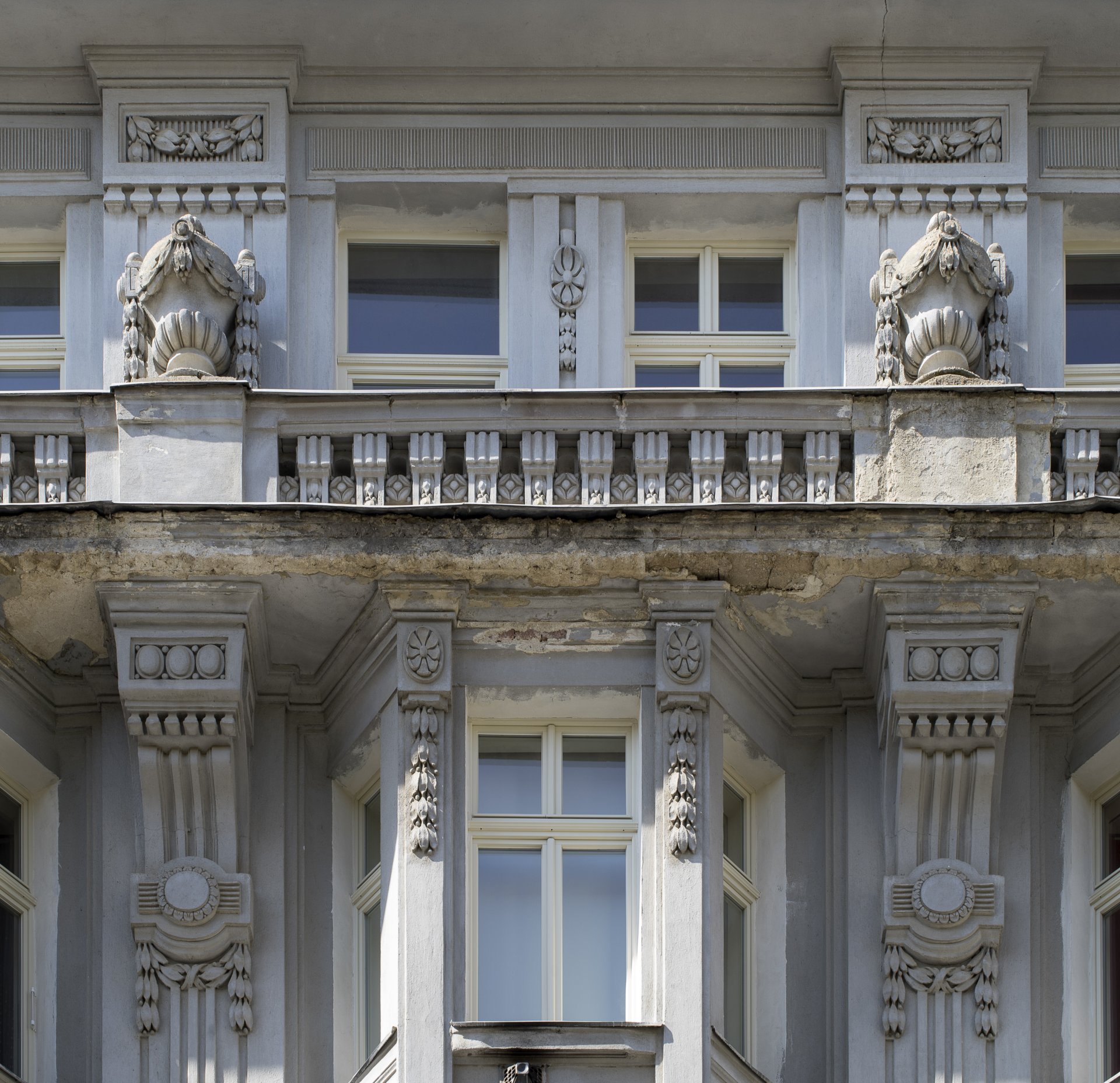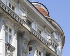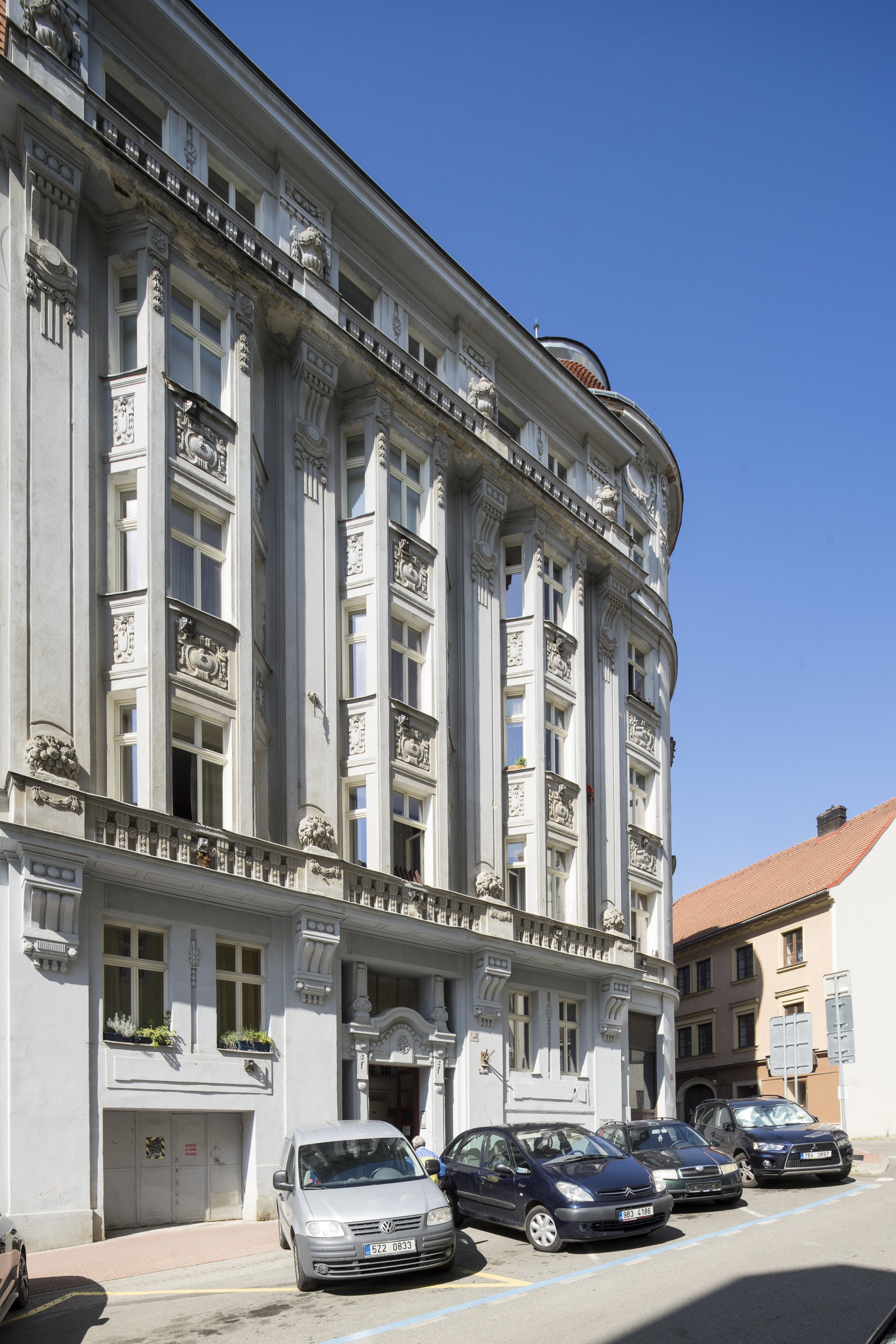 Das zweiflügelige vierstöckige Eckhaus hat eine der Straße Stará zugewandte vieraxiale Fassade und eine dreiaxiale, die zur Straße Francouzská zeigt. Die wirkungsvolle Baumassenlösung wurde so gewählt, damit eine exponierte Ecke entsteht, in die ein monumentaler, von einem Dachhelm gekrönter halbkreisförmiger Turm eingefügt wurde. Die Fassade ist vertikal und horizontal unter Berücksichtigung des traditionellen Palais-Schemas gegliedert. Mithilfe von durchgehenden, mit Balustraden versehenen Balkonen sind Sockelzone, Beletage und die Partie des baumassenmäßig aufgelockerten Dachgeschosses klar voneinander getrennt. Die monumentale Vertikalität wird durch eine hohe Pilasterreihe hervorgehoben, und in der dominanten Mittelpartie treten dreiseitige Erker hervor und verleihen der ganzen Komposition eine deutliche Plastizität. In dem auffälligen Stuckdekor, das stilisierte geometrische und vegetabile Element in bunter Zusammensetzung kombiniert, werden ebenfalls überwiegend historisierende oder klassizisierende Motive verwendet, so beispielweise runde Scheiben oder Rosetten mit Laubwerkfestons, Rollwerkkartuschen, mächtige Blumenkörbe oder Dekorvasen. Den Eingang in der Straße Stará akzentuiert ein dekoratives Portal, das die verschiedensten klassizisierenden Elemente auf eine Art und Weise zu einer Einheit verbindet, die eine das Suchen und Finden zeitgemäßer aktueller Haltungen des historisierenden Stils begleitende Experimentierfreudigkeit nicht leugnet.