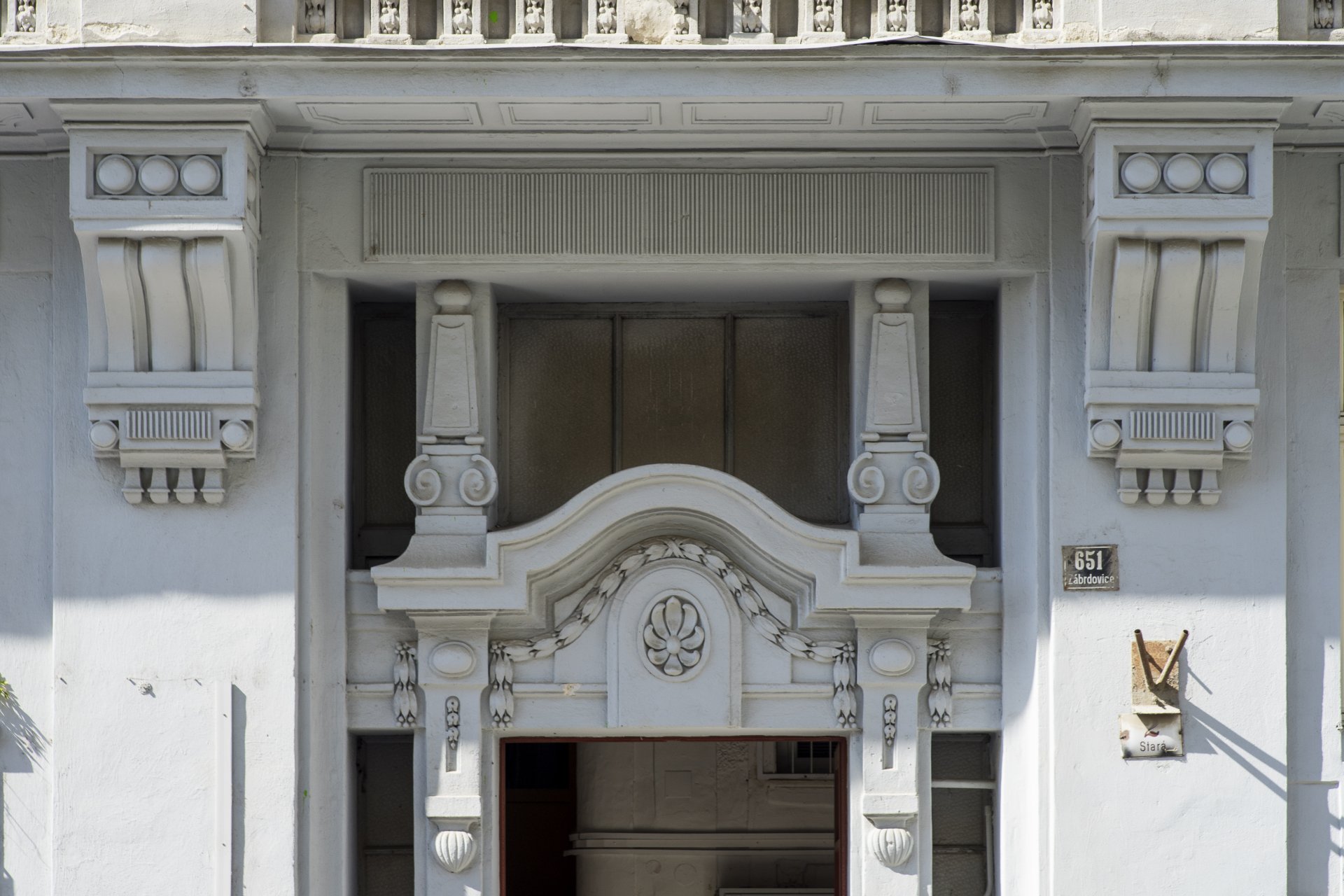 Das im Spätjugendstil gehaltene Mietshaus an der Ecke der Straßen Francouzská und Stará zählt zu den bedeutenden Werken des Brünner Baumeisters Robert Krug d.Ä.