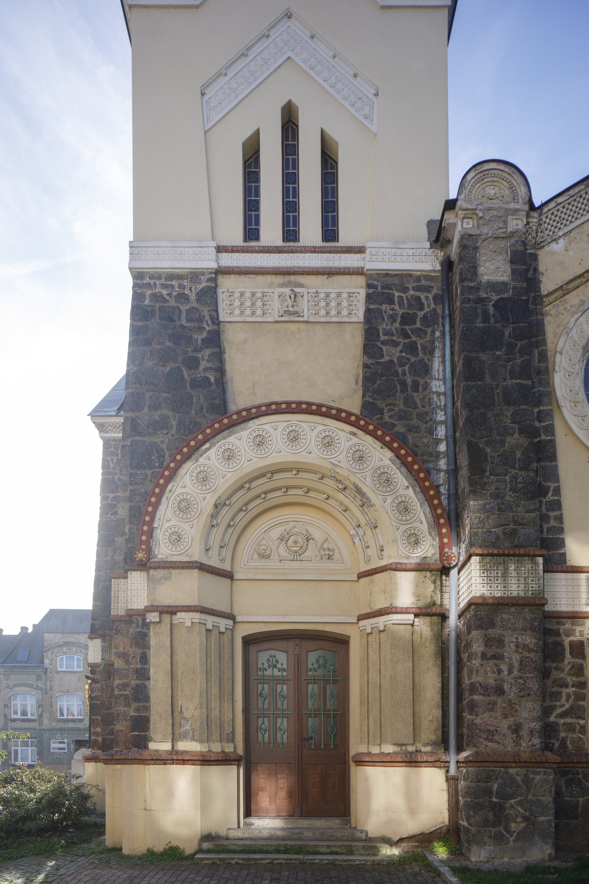 Die Anlage des Bauwerks ist eklektizistisch und reicht von Verweisen auf die mittelalterliche und byzantinische Architektur bis hin zum Jugendstil, Art déco und sogar zu kubistischen Elementen (pyramidenförmige Türme). Während außen historisierende Bezüge vorherschen, basiert die Ordnung des Innenraums auf einem quadratischen Raster im Geiste des geometrischen Jugendstils; die Wände sind durch unterlegte Rahmen gegliedert, stellenweise mit ornamentalen Elementen. Das Dreischiff und das Presbyterium sind verglast, der Bereich unter den Emporen und am Presbyterium ist mit Kassettendecken versehen; das Ziegel- und Steinmauerwerk trägt eine Deckenkonstruktion aus Stahlbeton. Wegen Problemen mit dem Grundwasser bei der Fundamentlegung sind die Baukosten sehr gestiegen, weswegen der von Valentin Hrdlička entworfene Hauptaltar, der Seitenaltar und die Bänke erst aus den Jahren 1929–1933 stammen, sich jedoch der ursprünglichen Architektur anpassen. Das einzige komplexe Interieur aus der Bauzeit ist die Annenkapelle, deren Altar mit abgestufter Mensa in einem flachen Retabel ein Gemälde von Theodor Hilšer aus dem Jahr 1910 mit der die Jungfrau Maria unterrichtenden Heiligen Anna zeigt. Die drei Rundfenster im Presbyterium mit Glasmalereien nach einem Entwurf von Ferdinand Herčík wurden Ende der 1930er Jahre ersetzt, da sie nicht genügend Licht durchließen. Seit 2002 wird eine Generalsanierung der Kirche, einschließlich ihrer statischen Sicherung durchgeführt.