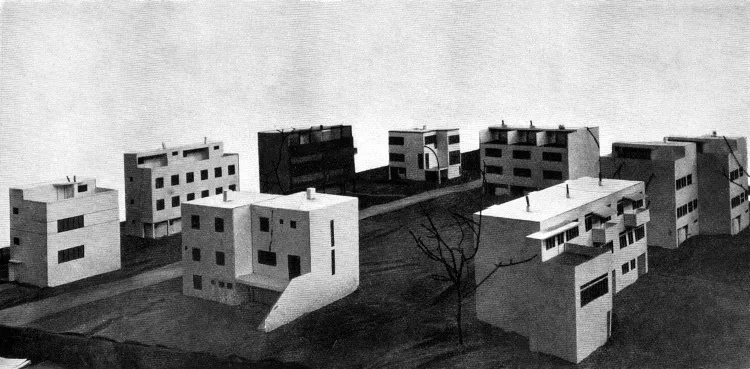 Parallel zu den Hängen des Kraví hora begann sich auch das Gebiet unterhalb des Wilson-Waldes urbanistisch zu entwickeln. Die ältere dünne Besiedelung wurde überwiegend von Einfamilienhäusern vor allem in der Umgebung der heutigen Šmejkalova-Straße ergänzt, die zur Straßenachse wurde und vom Brünner Hauptweg (dem heutigen Platz Burianovo náměstí) bis zum Waldrand führte. Im Jahre 1928 entstand in Zusammenhang mit der Ausstellung zeitgenössischer Kultur, die auf dem Brünner Messegelände stattfand, an dieser bisher wenig bebauten Örtlichkeit eine Typenbau-Siedlung, die sogenannte Kolonie Nový dům (Neues Haus), die den Besuchern einen sehr modernen und gleichzeitig finanziell erschwinglichen Typ individuellen Wohnraums für mittlere Bevölkerungsschichten vorstellte. Sechzehn kleine Einfamilienhäuser wurden in Gruppen aufgeteilt und locker im Randbereich eines keilförmigen Grundstücks angeordnet, in dessen Mitte sich die Fläche eines gemeinsamen Parks und eines Spielplatzes befanden (zwischen den heutigen Straßen Šmejkalova, Bráfova und Jana Nečase).