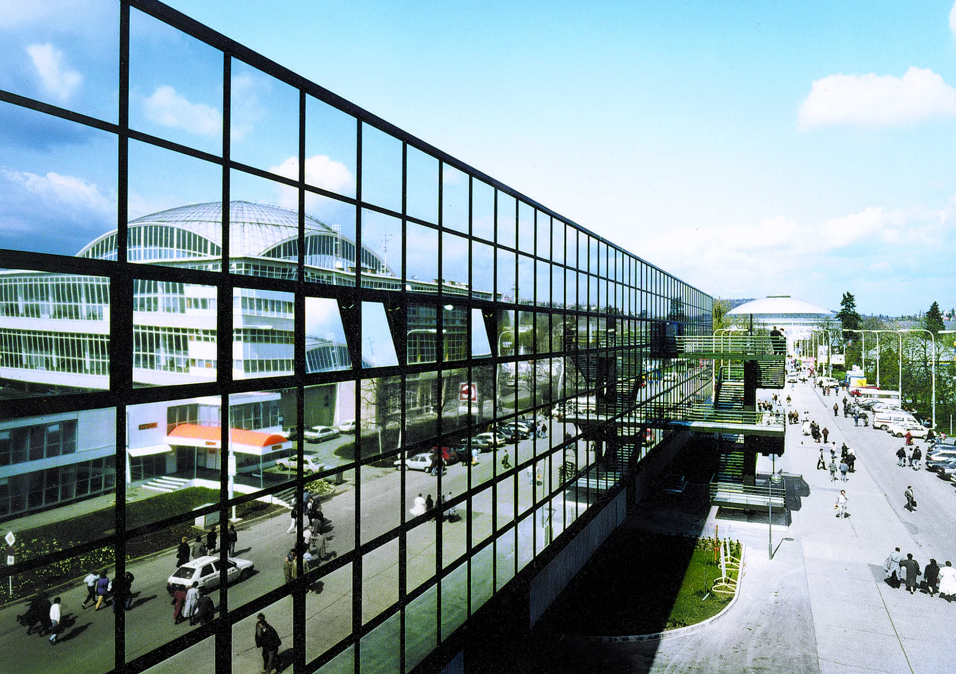 In the mid-1970s when Zdeněk Müller became the main architect of the exhibition centre, there were frequent debates regarding the future of trade fairs. In 1975 and 1978 two international symposiums on exhibition design were held in the Brno exhibition centre, hosting experts such as Zdeněk Lang, Václav Roštlapil, Josef Svoboda, Iloš Crhonek, Jan Rajlich, František Cubr and others. This creative atmosphere gave rise, in 1977, to a new plan for the exhibition centre (Müller, Borková) which served as a template for its development for over two decades. In the 1980s a trade fair centre was built to architect Müller’s design (now the BVV company headquarters), along with the building of the chamber of commerce and several company pavilions (Škoda, Vítkovice, Topham, Kandt, Melcher, Nordstahl). As the main architect, Zdeněk Müller also participated in the preparation of concepts and investments that were passed on to other specialists. He was responsible for the reconstruction of pavilions A (1979-81) and B (1984), the construction of a system of underground collectors for the infrastructure and the building of roofed passages linking the pavilions used by the exhibition centre visitors. In addition, he produced studies preceding the construction of the House of Technology (1989), Pavilion E (1989-90) and the reconstruction of Pavilion G (1994-96). The last mentioned design for the reconstruction of Pavilion G is also associated with the names of architects Viktor and Martin Rudiš and Zdeňka Vydrová. However, their plan was based on an urbanist concept by Zdeněk Müller and Jaromír Stříbrný created for the Office of the Main Architect of the BVV.