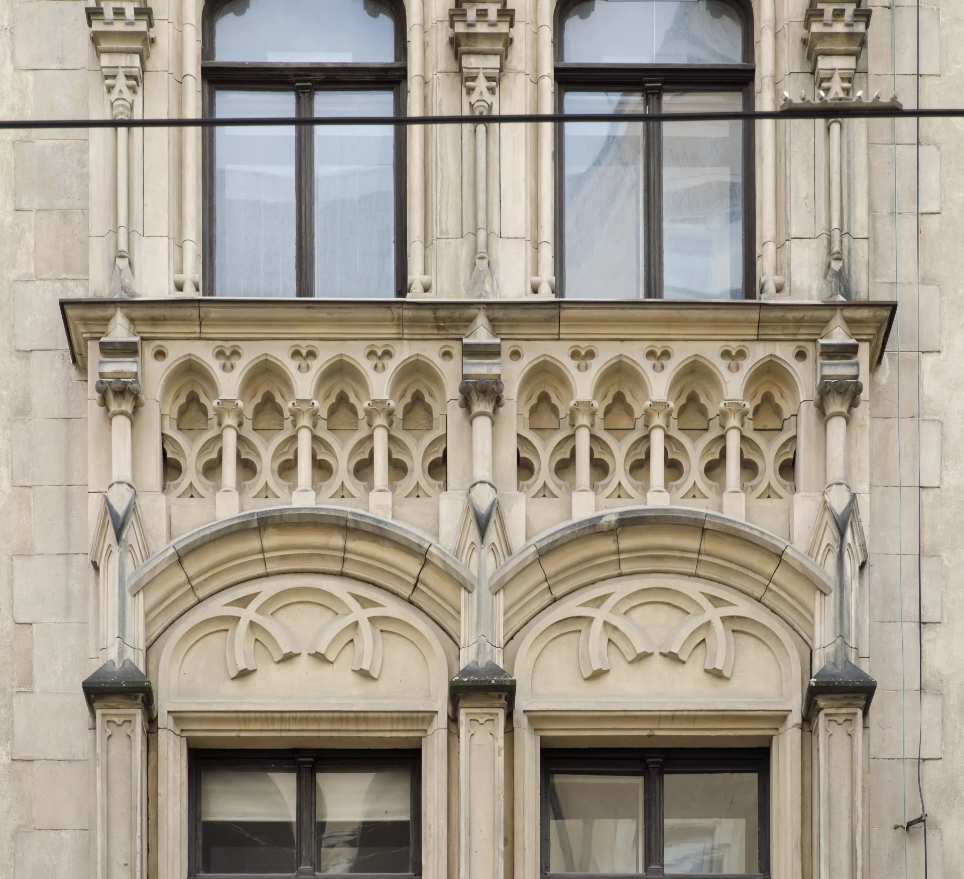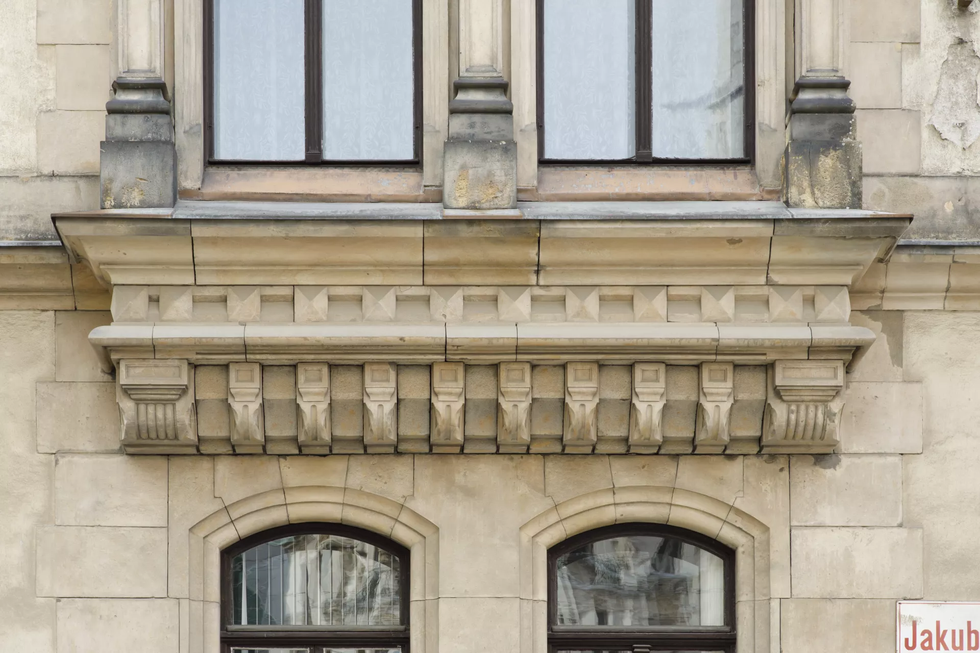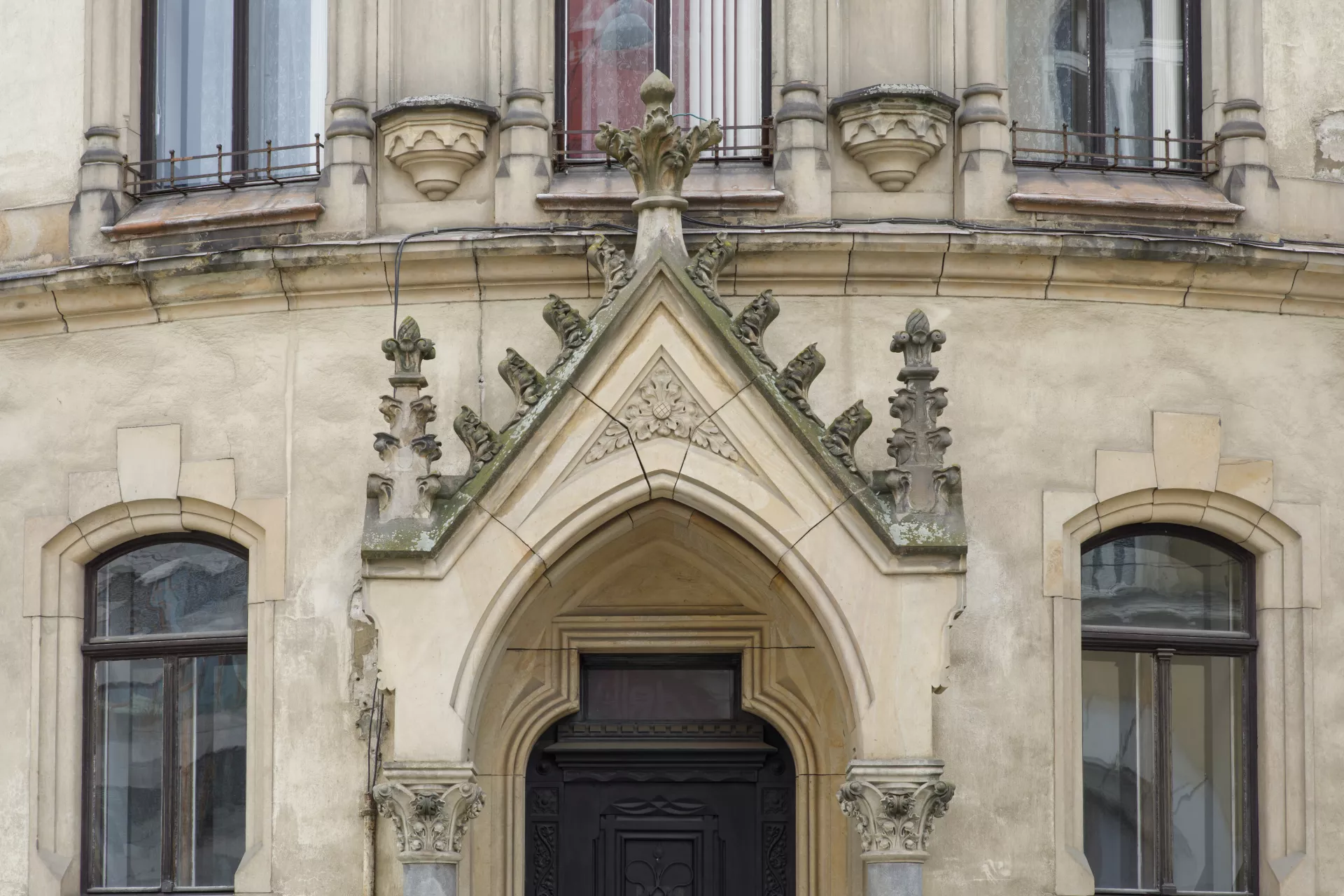 Since 1902, the rectory of the Church of St. James has stood across from the city’s main church. The building’s volume defines a prominent part of the then newly established church square, which was intersected by a new main avenue leading from náměstí Svobody to what was then the German House. The competition for the rectory was won by the architect Germano Wanderley, who in 1899 had contributed to the urban plan for the new street, today known as Rašínova. A considerable number of houses and old alleys, including the old Baroque rectory from 1710, were demolished to make way for this new avenue. Wanderley’s building is essentially a modern three-wing design with a rounded corner and a recessed terrace carved into the upper floor. It was built by the construction company of Josef Nebehosteny. His decision to give the rectory a Neo-Gothic look was most probably influenced by the square’s dominant feature, meaning the monumental Gothic Church of St. James. The windows are decorated with stone pillars topped by stiff-leaf capitals, pinnacles, blind tracery, niches and dentils. The building’s corner is flanked by two gables, between which a polygonal turret rises from the roof. Wanderley applied a similar turn-of-the-century Neo-Gothic design to the mostly well-preserved grand interiors. The central wing housing the staircase connects the halls and landings with a network of vaults directly inspired by the Church of St. James, their ribs rising from cylindrical supports on the walls. The vaults are adorned with munificent vegetal decoration. The stairs are lined by a remarkably intricate cast-iron railing produced by Brno’s Franz Schenk company. The interiors’ stylistic harmony is further underscored by the ornamental floor tiles from the Liechtenstein brickworks in Poštorná. The area around the Church of St. James is one of the few places in Brno where a significant amount of Neo-Gothic architecture was built during the redevelopment of the city centre. Besides the rectory, stylistic references to Gothic architecture can also be found on the buildings with steep gables built by Maxim Monter on the square’s northern side. This architecture, inspired mainly by the German Gothic with Art Nouveau influences, may well have been influenced not just by the church’s venerable age but also by Brno’s ethnic make-up at the time, with its German-speaking majority. Moreover, one of the requirements for the new rectory was that its design respect the church’s original architecture. Matěj Kruntorád