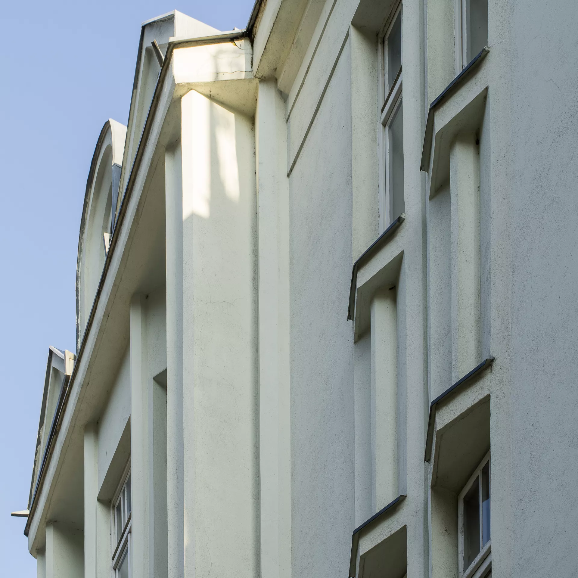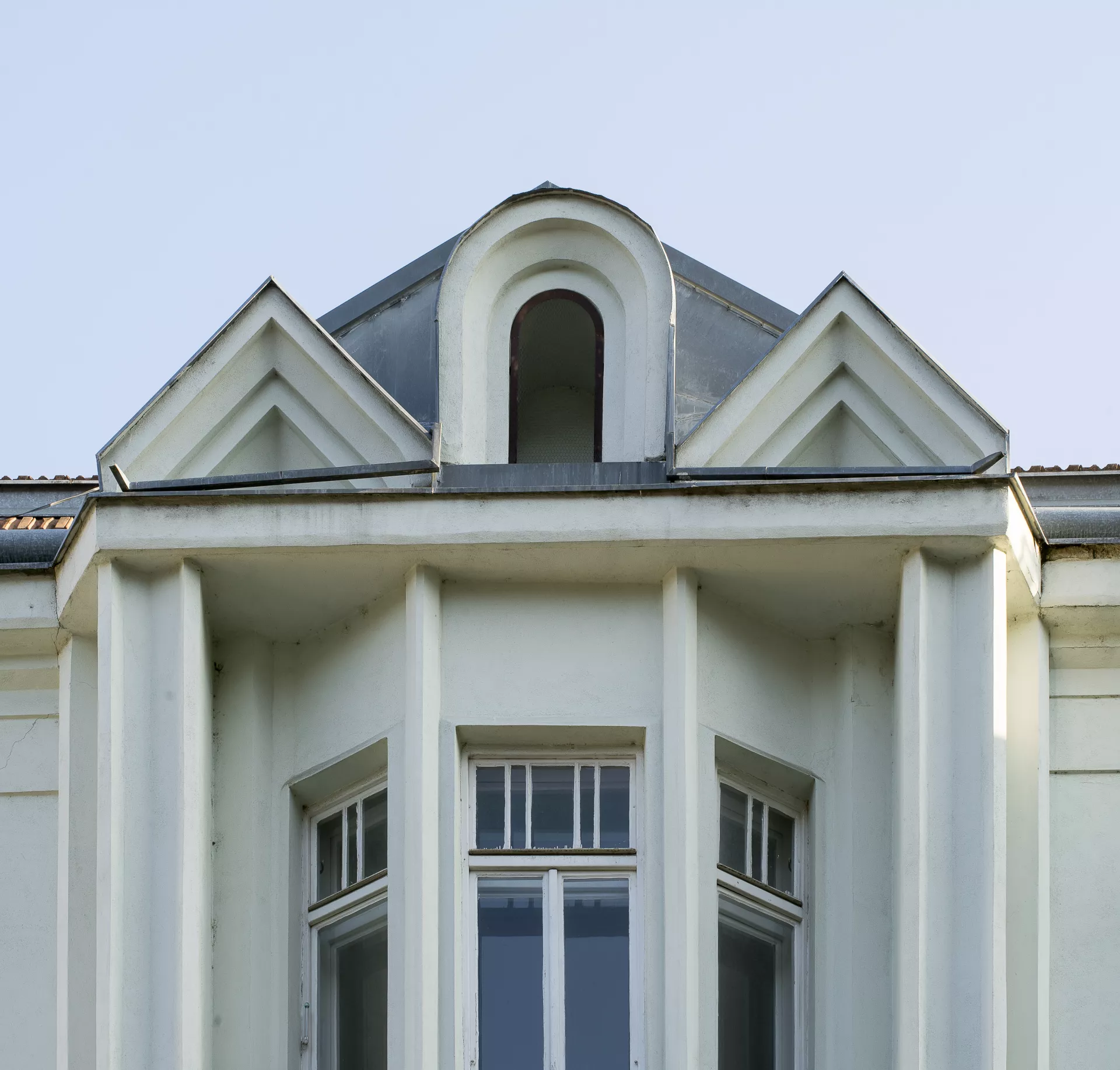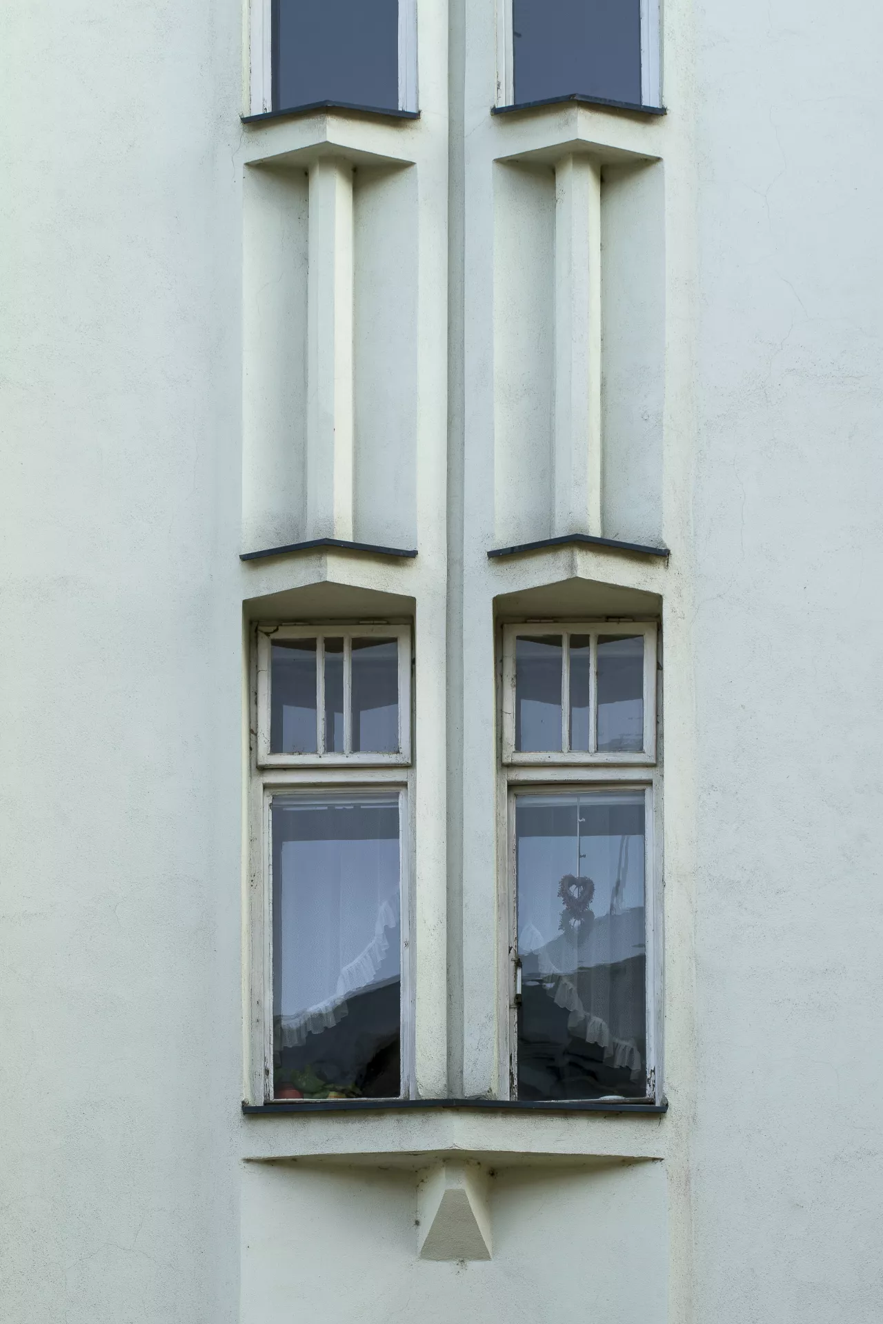 František Uherka (1880–1948) built this Cubist-influenced modernist apartment building in 1913–1914 on what was originally the backyard of Pekařská 28. That property was owned by Anna Jonášová, from whom the builder’s wife Marie Uherková bought the land in February 1912. Permission to build a new apartment building was granted in March 1913, and the building was completed in 1914. According to the 1921 census, the building was owned by Marie Uherková, and she and František occupied one of the units with their four children. In 1926 the house was acquired by Rudolf Ehrlich, and it remained in the possession of Rudolf and Ella Ehrlich until the Second World War. The distinctive design of the vertically composed facade is characterized by richly articulated volumes and the repeated use of sharply angled or crystal-like Cubist elements. The dominant feature of this dynamically composed facade is the central avant-corps flanked by two monumental pillars and topped by an ensemble of small gables of various shapes (arch, triangles, pentagon). Another noteworthy element is the building’s entrance, with its distinctive right-angled artificial stone portal, above which a trio of shard-like openings are framed by deep bevelled jambs. Above the entrance, a crystal-shaped bay window juts out sharply from the facade. Other Cubist architectural details include the sharp-angled windowsills atop crystal-like consoles. The building’s progressively modernist design hints at inspiration from the Cubist architecture of Prague, although the Cubist motifs used here are more like references without any deeper connections – used essentially as one possible type of décor. The result is nevertheless a remarkable Cubistic building, a unique ‘crystalline jewel’ of Brno’s historical architecture. Like its neighbours, the building is set into a slope. As a result, it has two basement floors with apartments, a raised ground floor, two floors above that and an attic. A staircase inside the main entrance vertically connects the various floors. Many of the original interior elements have been preserved, including the terrazzo staircase with its modernist handrail, the black and white wall tiles, the black and white floor tiles with a geometric pattern and the doors to the apartments. Pavla Cenková