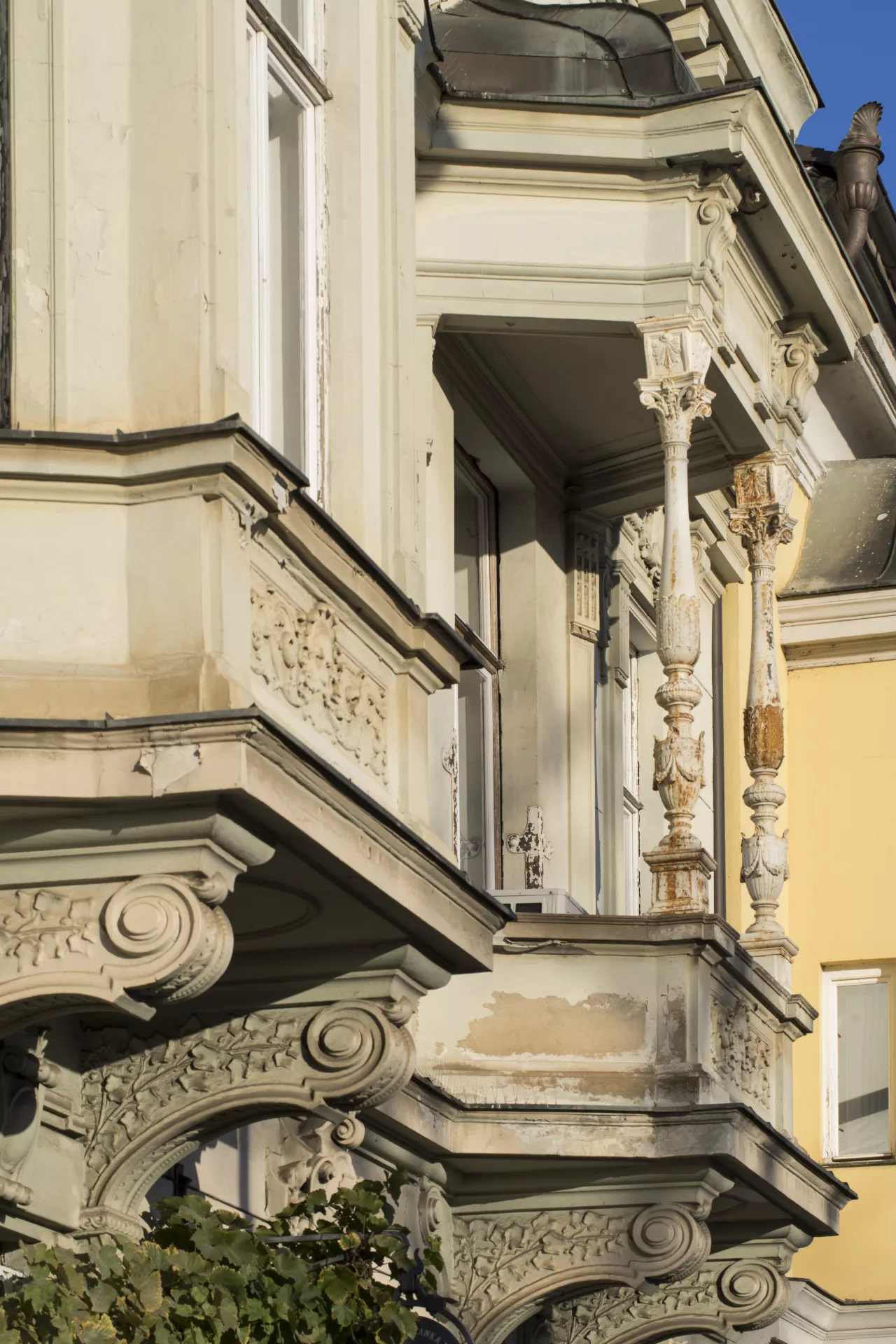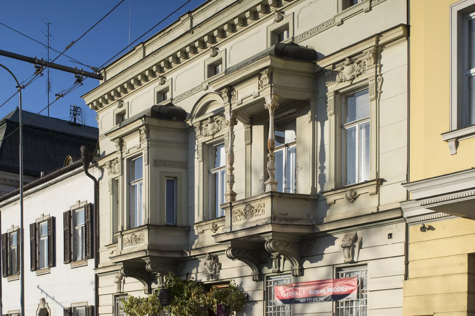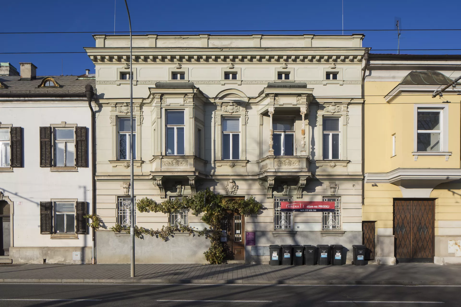 At the turn of the 20th century, the trend of healthy living in new villa developments was popular with the members of the Brünner Beamtenheim, an association of local civil servants seeking to establish a villa quarter on Žlutý kopec (Yellow Hill). One of the association’s founders was the Viennese architect Ferdinand Hrach, who had moved to Brno in 1893 to work as a professor at the German Technical University. Hrach considered the family house to be the healthiest kind of dwelling, insofar as it had a cultivating influence and strengthened people’s connection to the land and their home, and thus their homeland – a theory he set forth in his 1908 text Heimatkunst und moderner Städtebau. Hrach built his villa on Hlinky Street in today’s Pisárky neighbourhood, a residential area first developed in the 1870s. When Hrach and his wife Sophie bought the land in August 1900, they were living in an apartment on Kapitána Jaroše Avenue in the building of Sophie’s father, the master carpenter Karl Schipka. It took only a year to build the two-storey family house, which covered a land area of 159 m2 and contained three separate apartments. There were two two-room apartments on the ground floor, one of which was for servants while the other was rented out. The Hrachs’ apartment took up the first floor and the attic and had ten rooms: six rooms, an anteroom, a kitchen, a servant’s room and a bathroom. Subsequent modifications to the building’s interior have obscured the original layout. The main entrance probably led through a hall to the separate entrances of the ground floor apartments and to a staircase at the back of the building that led to the first floor and attic. On the first floor, the individual rooms were accessed via a central hallway illuminated from above by a decorative skylight. Of the four large rooms on this level, two had access to a balcony overlooking the main street, while one led onto a vegetable and ornamental garden with a small pool. Two more large rooms were located in the attic space. On the exterior, the five-bay facade is horizontally divided into three parts by prominent cordon ledges above and below the windows. The ground-floor bossage is interrupted by the centrally placed main entrance. Above this are the bel étage and an attic floor topped by a cornice and a roof parapet. The most prominent facade elements are the oriel and the covered balcony on the first floor. The facade is decorated with vegetal reliefs and mascarons. As with other buildings by Ferdinand Hrach, the olive branch is present as a symbol of the owner’s love of knowledge. We also find plant motifs in the building’s interior, and floral decoration is still preserved in the main entrance in the form of stucco reliefs. Hrach imbued his home, situated in a terraced development on a prestigious suburban street, with a palatial character while applying the formal vocabulary of ‘high’ architecture. Such a stylistic approach contrasts with his designs for three villas in the nearby civil servants’ quarter, which were built at the same time as his home. Here, in a new development of a more rural character, he drew on the tradition of vernacular architecture. (One well-preserved example is the villa of Josef Kosch at Všetičkova 7). The Hrachs lived in the house until 1922, when they sold it to Maria Samohrdová, the widow of a building official. They then moved with their young daughter Elizabeth Sophie into an apartment building that Sophie Hrach had purchased on Obilní trh (Corn Market). Šárka Svobodová