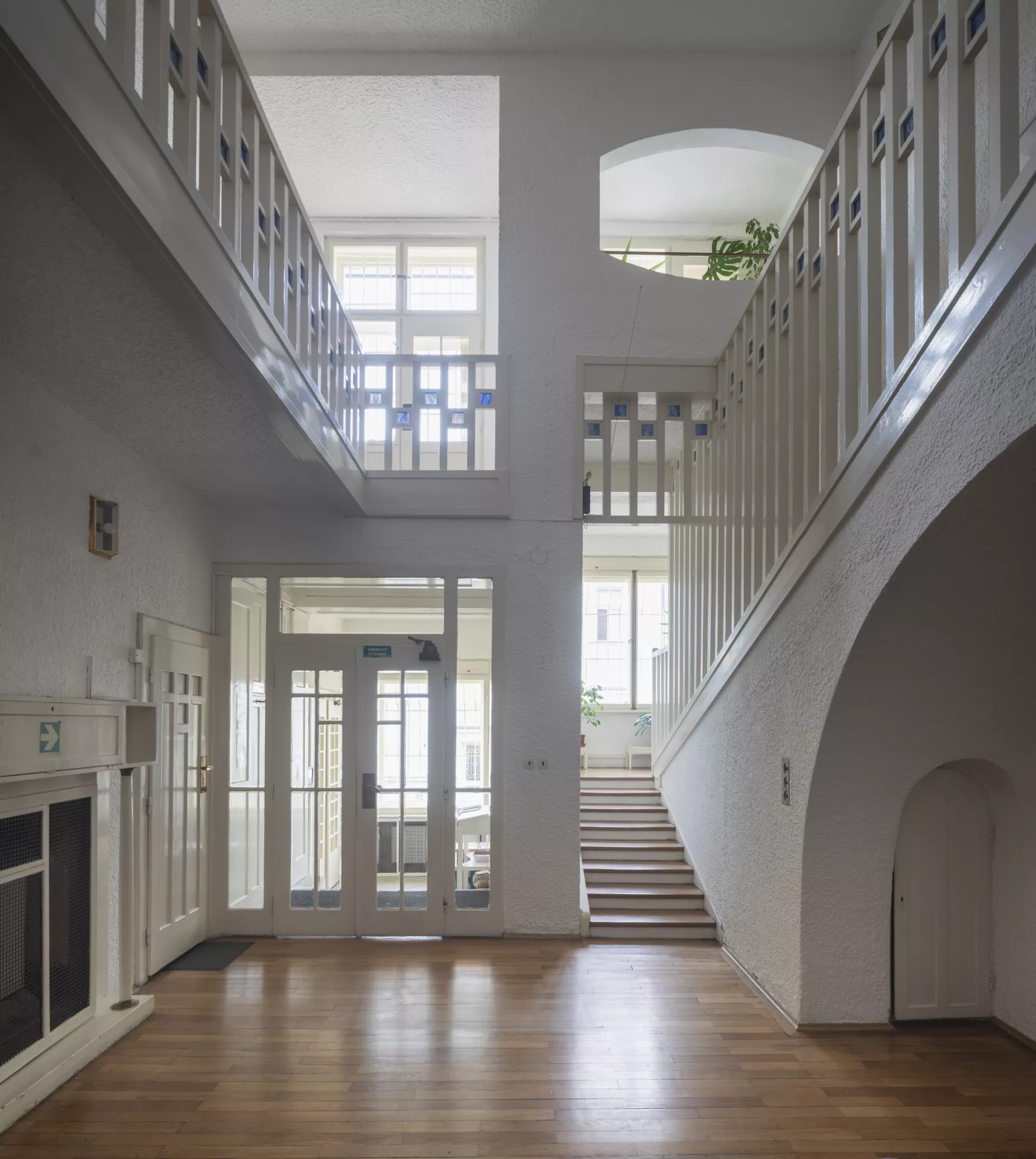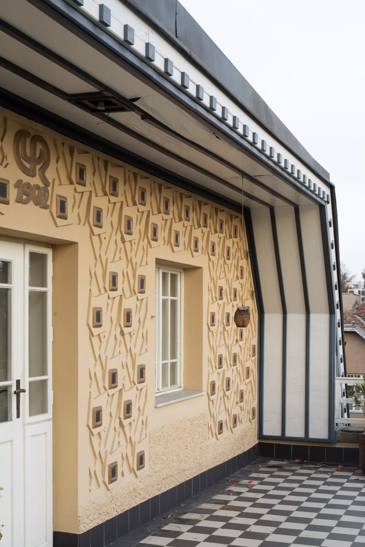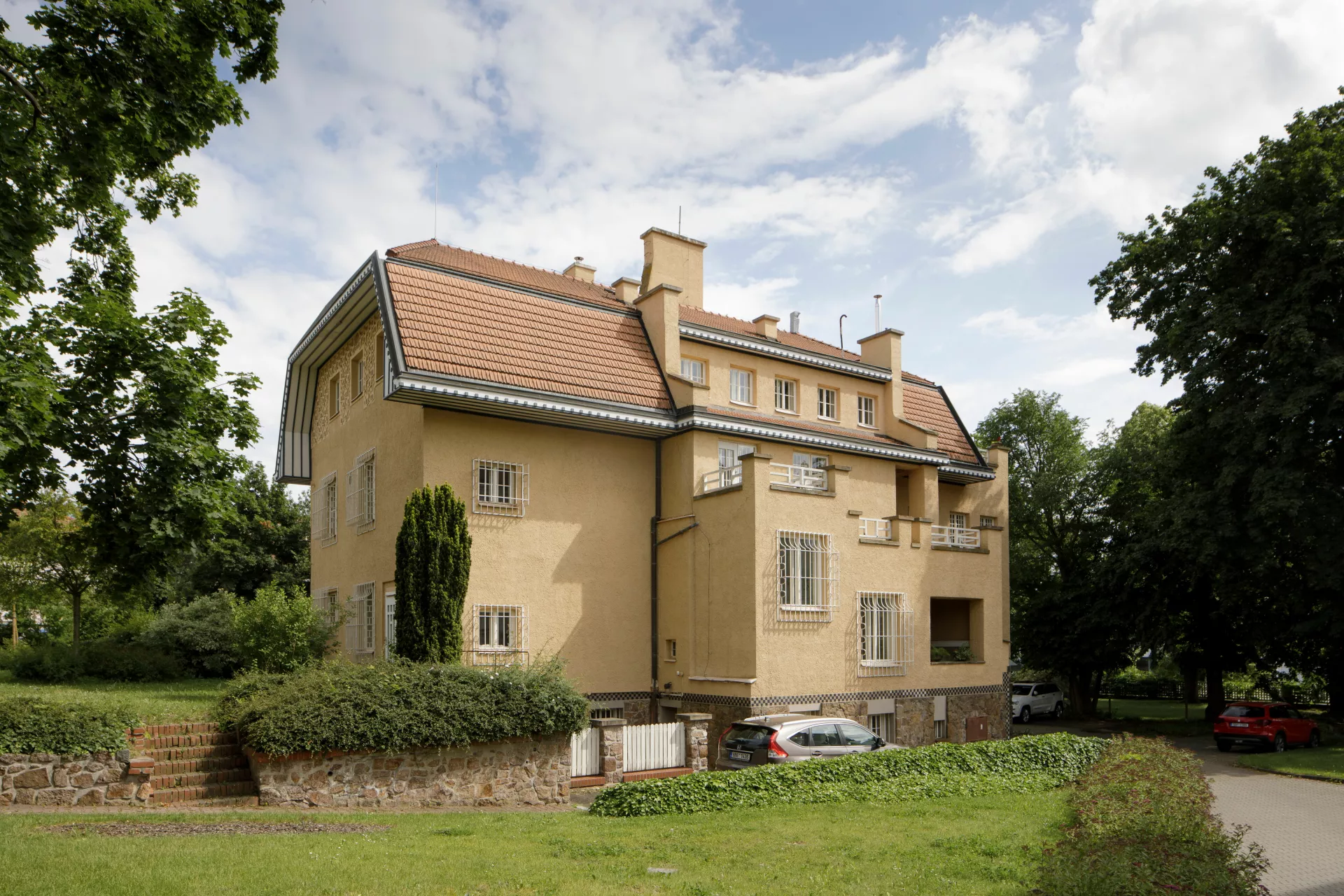 At the time of its completion in the summer of 1902, architectural journals called this family villa on the western stretch of Hlinka Street (then Schreibwaldstrasse) in the Pisárky villa district (German: Schreibwald) the most modern house in the monarchy. It was built for the well-known Brno lawyer Karl Reissig Jr. (1863–1948), the scion of a prominent middle-class family with a history in the legal profession. His father, the attorney Karl Reissig Sr. (1832–1908), was the director of the Moravian Mortgage Bank and a founding member of the German House who, as an enthusiastic sport shooter, served on the board of the Brno Burghers’ Shooting Club. In 1861, he married Gabriela von Ott, the daughter of Brno’s mayor. Karl Reissig Jr., the eldest of their three children, excelled in commercial law and represented a number of industrialists and their companies and estates. In 1889, he married Karoline Krackhardt (1868–1939), whose father owned a machine factory in Brno. One of Karl Reissig Jr.’s clients was Viktor Bauer Sr. (1847–1911), owner of the Old Brno sugar refinery, from whom Reissig purchased a building plot (part of what was known as ‘Bauer’s Ramp’) for almost 19,000 crowns. The Reissig Villa was designed by the architect Leopold Bauer and, according to surviving correspondence, built by the Brno builder Adolf Bacher. Construction took one-and-a-half years. The Municipal Bulletin of the Provincial Capital of Brno for 1902 described the house as a two-storey new build with three units (11 rooms, 2 hallways, 2 kitchens, 2 bathrooms, 2 pantries and 4 toilets). It is in fact a large single-family villa, designed in the spirit of the English family home, except that the picturesque ‘cottage’ style with tall half-timbered gables was replaced by mansard roofs and abstract geometric ornamentation. From the two-storey hall with open gallery on the raised ground floor, one could access a dining room with an open terrace (later walled off) and a library with a reading corner located in a small nook four steps higher than the library. From the gallery on the upper floor one could enter the main bedroom with adjoining dressing room and bathroom and also an anteroom leading to the children’s room, a small room for a governess, the children’s bathroom and a long room designed among other things for children’s games. Additional living quarters, including a bathroom, a home gym (children’s playroom) and a terrace, were located in the attic. The basement spaces housed service rooms, a large kitchen and the building caretaker’s quarters. The building was characterized by high standards in terms of both technology (iron and concrete elements used in construction, iron winding service staircase, central heating, electric lighting) and hygiene. Leopold Bauer’s interior design was dominated by the use of geometric forms and square motifs. The main material was white wood (the furniture was produced by Brno’s Deutsch company), enlivened by the use of coloured glass from the Spaun glassworks in Klášterský Mlýn on the staircase, the gallery railings and the cabinets in the upstairs game room. The walls and ceiling of the raised nook in the library were covered with textile wallpaper decorated with a burgundy floral motif. Bauer also designed the interior light fittings, door and window fittings and gold-coloured brass light switches. A distinctive quality of the Reissig Villa are its facades. The predominantly square windows of various sizes, designed without framing elements, respect the building’s interior layout and lighting needs. The basement socle is made of rough stone (the property wall with wooden gates and square-patterned fencing sits atop a similar socle), while the area above the socle and by the entrance staircase is clad in ceramic tiles. The roughcast facades are topped by decorative gables with black ceramic squares with gold trim set into the stucco in diagonal sculptural lines. An important element framing the building was its garden. Bauer arranged the paths and lawns into right-angled forms into which he inserted a ‘rondel’ with a circular table and a bench placed atop a polygonal plinth. There also were a tennis court (used as an ice-skating rink in winter), a small swimming pool with an adjoining sun terrace, a Russian skittles game and a small garden house (no longer existent). White garden furniture was arranged around the outside of the house and on the terraces. In this way, the building’s owner proclaimed his focus on a healthy body, complemented by the cultivation of the spirit as symbolized by the owl statue on the roof of the villa. Brno’s Reissig Villa is Leopold Bauer’s first-ever realized project. To some extent, it is based on the design he submitted to the famous architecture competition for a ‘House for an Art Lover’, announced in the autumn of 1900 by Alexander Koch’s Darmstadt-based magazine Innen-Dekoration. The jury did not award a first prize, second prize went to the famous British architect Baillie Scott, and the first of the three third prizes went to Leopold Bauer. Similarities to other works by Bauer may be found in his designs for a villa for the art historian Gustav Glück and a villa with a ‘tall gable’ (1901, unrealized). Karl Reissig Jr., who throughout his life was convinced that ‘all human relations must be founded on the principles of decency and mutual trust’, was later forced to leave his home and was expelled to Austria in the summer of 1945. The villa was placed under national administration and later became the property of the Czechoslovak state. It is currently the longtime seat of the Central Institute for Supervising and Testing in Agriculture, which endeavours to preserve the building and many of its surviving features in their original form. Dagmar Černoušková