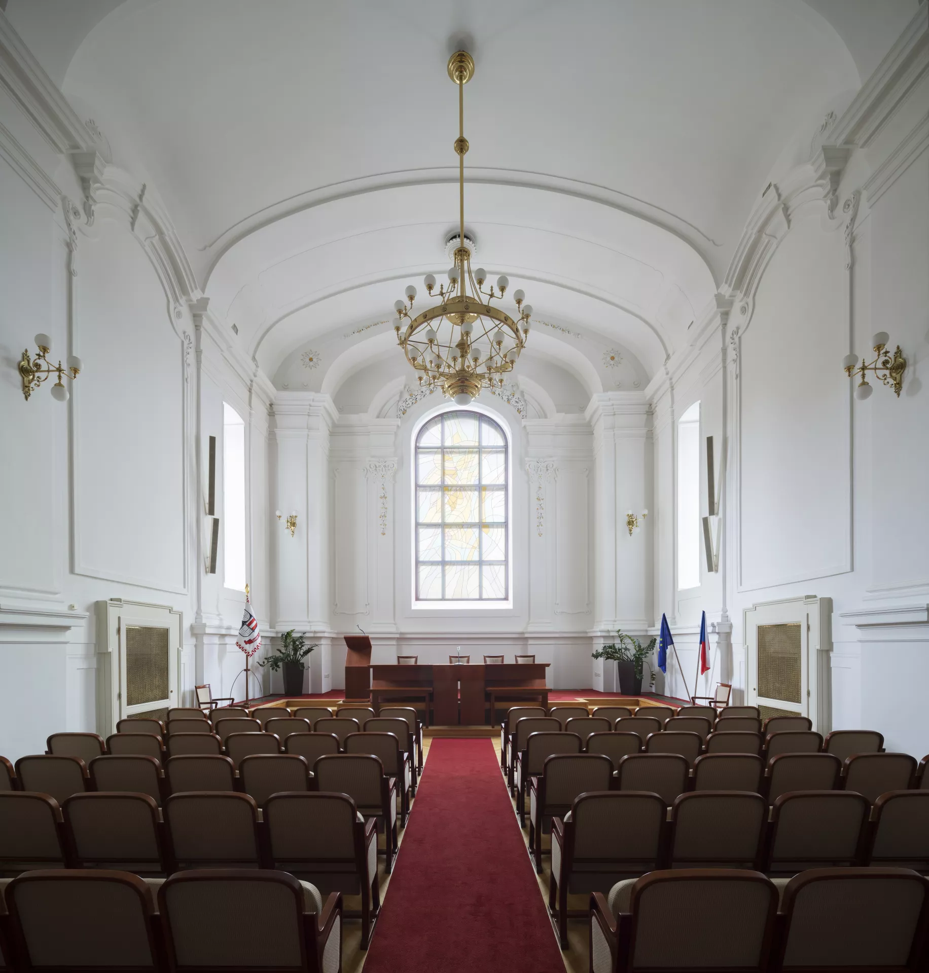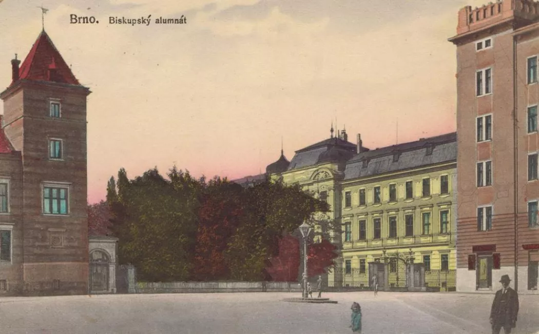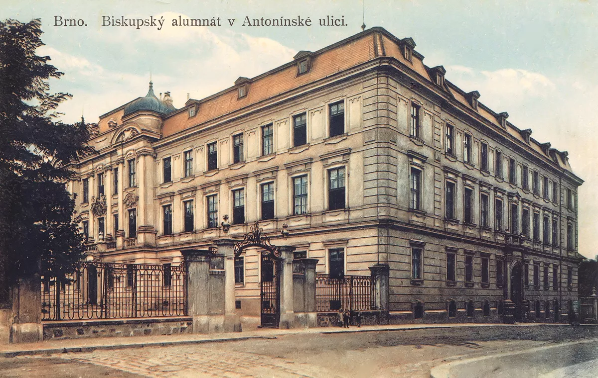 The bishop’s seminary (alumneum) for the education and spiritual formation of future priests was founded in Brno in 1807 by the third Bishop of Brno, Vinzenz Joseph von Schrattenbach. To this end, he acquired the building of the former Dominican monastery by St. Michael’s Church. Over time, this building proved unsuitable on account of its size, and so in 1901–1903, at the initiative of the seminary’s regent, professor Josef Pospíšil, and under the auspices of the eighth Bishop of Brno, František Saleský Bauer, a new seminary was built on land acquired from the city of Brno. First proposed in 1889, the construction project was supported not only by the municipal and provincial administrations but also by the central authorities in Vienna: the Ministry of Culture and Education provided a subsidy, and the Ministry of the Interior, specifically its Department of Civil Engineering under the leadership of architect Emil von Förster, supplied the plans for the building. An important source for determining the plans’ authorship is an article in a 1905 issue of Allgemeine Bauzeitung, in which Förster states that, after an architectural brief had been elaborated, a draft plan was drawn up by the technical office of the Moravian governorship. When his department’s staff received it for assessment, they reworked it ‘in simple Baroque forms’. The engineer Rudolf Bauer then put it into project form under Förster’s guidance. As there was a financial limit of 600,000 crowns for construction costs, the project had to be scaled back before it was eventually accepted by the Ministry of Culture and Education. Bauer was not able to supervise construction, for he died shortly before it began on 15 August 1901. The engineer Josef Matzenauer from the technical department of the Moravian governorship took charge of the construction, and as he had not designed the project himself, all the detailed plans were supplied by Förster’s department. The construction contract was won by the Brno builder Antonín Tebich, who, despite earlier information to this effect, did not have a hand in its design. The seminary’s plans were presented at the 1900 Paris Exposition, though in its more elaborate form before it was scaled back for financial reasons. The building served as a school and residence for 100 seminarians, which was the maximum capacity (numerus fixus) laid down in 1908. The four-wing, three-storey building with mansard roofs is situated on the edge of a former city cemetery, from which several gravestones were left in the seminary garden as contemplation aids (not preserved). The building has a large park enclosed by a wall, with a fountain in the middle (and, today, an underground car park). The property comprises an entire block bounded by Antonínská, Botanická, Smetanová and Kounicová Streets. The Neo-Baroque forms promoted by Emil von Förster were intended as references to the prosperous era of the Catholic Austrian Empire in the 18th century. The rectangular building’s facade, with restrained decoration in the tradition of the classicist Theresian Baroque, is accentuated by a central avant-corps with two tower-like protrusions flanking a portal with a balcony and a cartouche with the coat of arms of Bishop Bauer. Another prominent feature is the arched side portal on Antonínská Street, inspiration for which can be found in the radical Roman Baroque or, more specifically, in architects who drew on this style. Projecting from the garden wing, the second floor of which was built in 1935–1936, is a two-storey central avant-corps with the chapel of Sts. Cyril and Methodius (who were depicted in the stained glass above the altar). In 1911–1913, a new altar was built, murals were painted according to a design by Karel Ludvík Klusáček, and four paintings by Klusáček were hung in Neo-Baroque frames. Since being converted into an auditorium, the only reminders of the chapel’s original purpose are the organ loft and stucco decoration. During both World Wars, the seminary was used as a military hospital and barracks. In 1919–1932, a part of the building was occupied by Masaryk University’s Faculty of Law. The communists closed the seminary in 1950, and the building was later taken over by Brno University of Technology. Since its renovation in 1998–1999, when the courtyard was covered in a glass roof and two toilet shafts were added, the building has housed the university’s rectorate. Aleš Filip