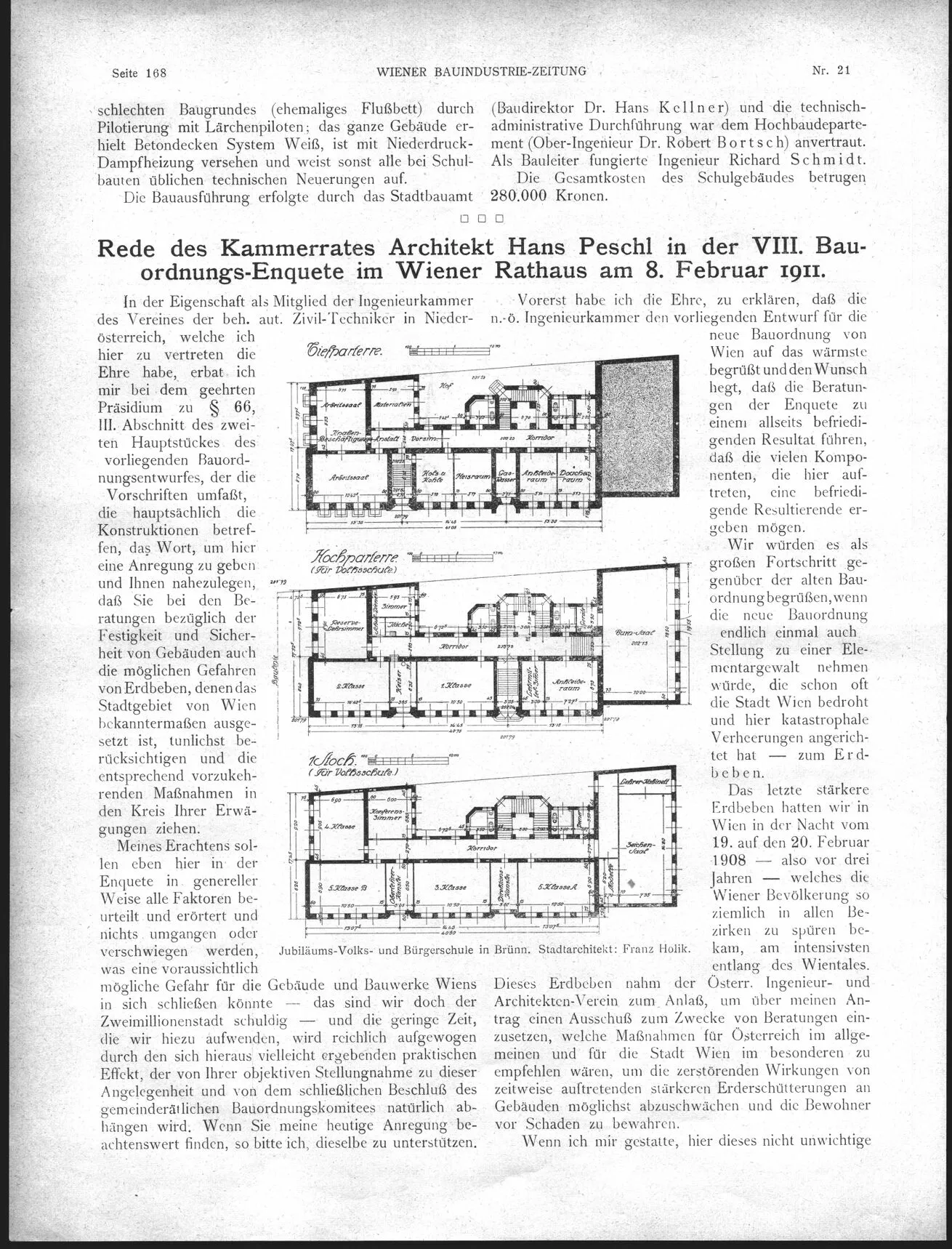 Wiener Bauindustrie-Zeitung č. 21, roč. 28, Vídeň 1911, s. 167–168.