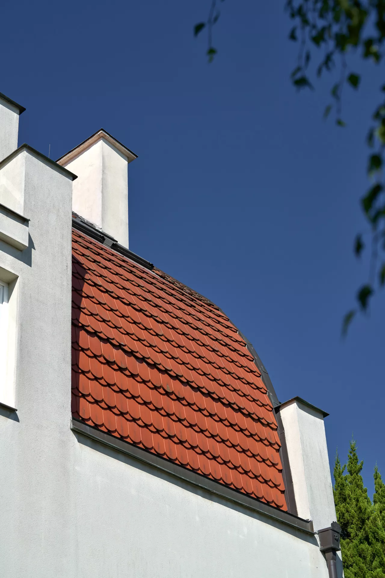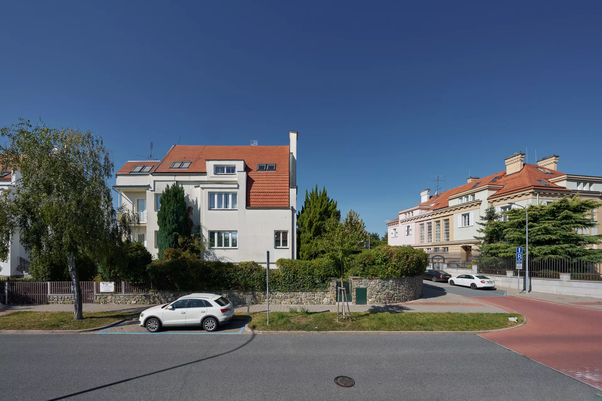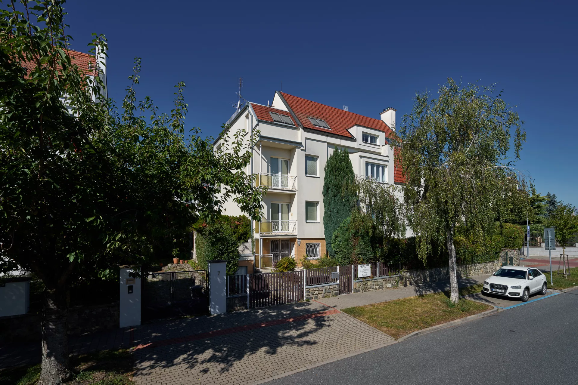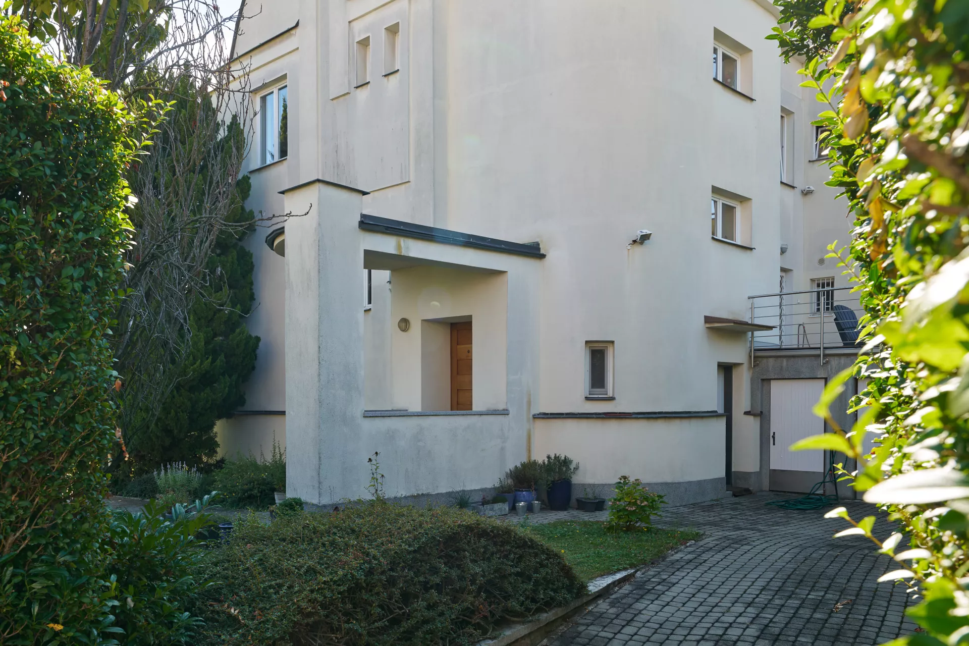 In the early 1920s the Rodina (Family) housing cooperative purchased plots on Žlutý kopec in Brno with the intention of building a small-scale villa colony. The designs of houses in Barvičova, Mahenova and Lerchova streets were assigned to Bohuslav Fuchs. The architect presented several designs of different types of houses, one of which was selected and in various modifications employed in 1923–24. The house at Lerchova 9 intended for Domin Pavlíček, a Brno based editor and writer, is by far the best preserved. Fuch's design of this villa (as well as its modifications in the neighborhood) reveal the influence of late Prague Cubism in architecture, apparent in the geometric composition of the relief facade elements and its segmentation. At the same time, the design uses the traditional keel-shaped roof, which may refer to the influence of Adolf Loos, who used this element as well as the reverse T motive in his design of Steiner Villa in Vienna as early as 1910