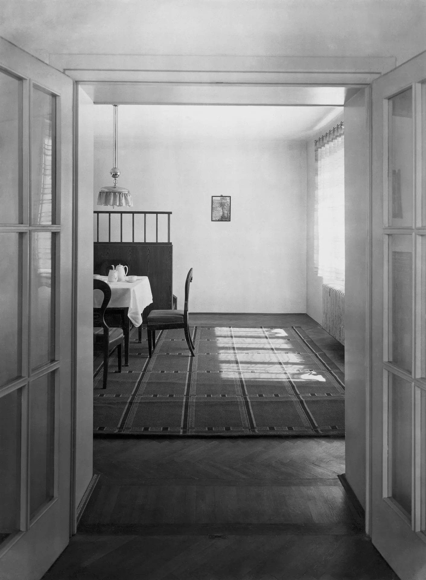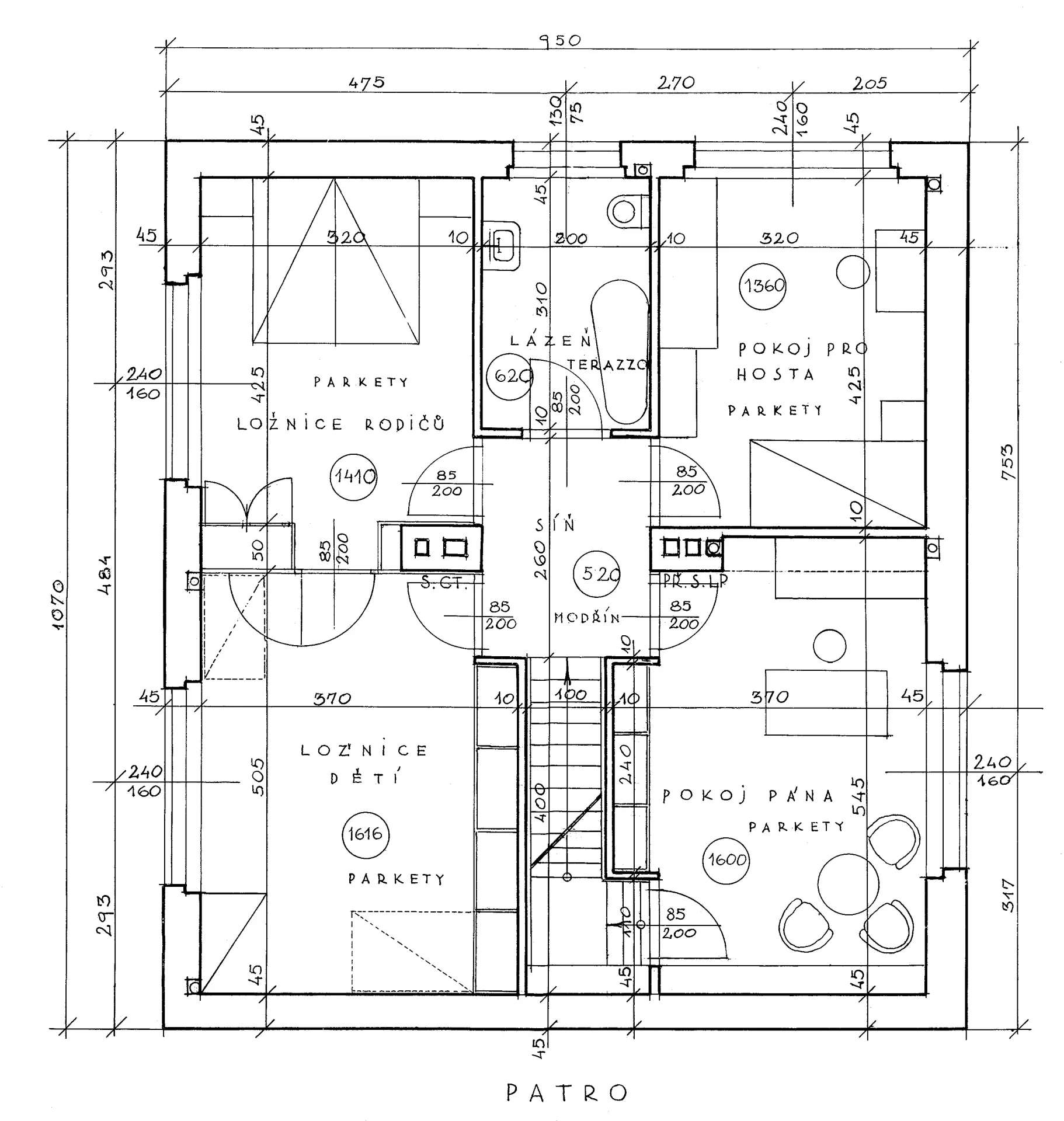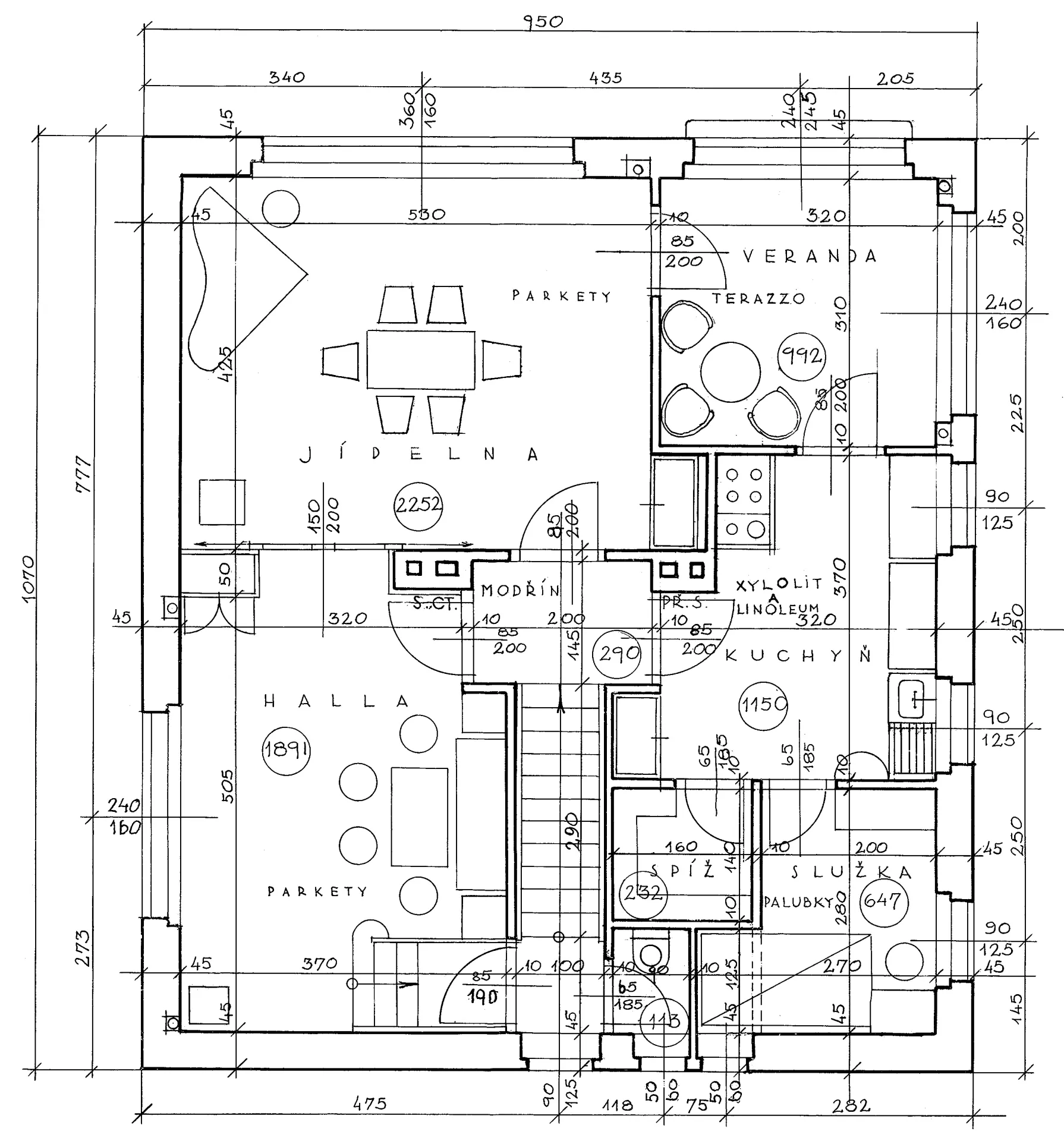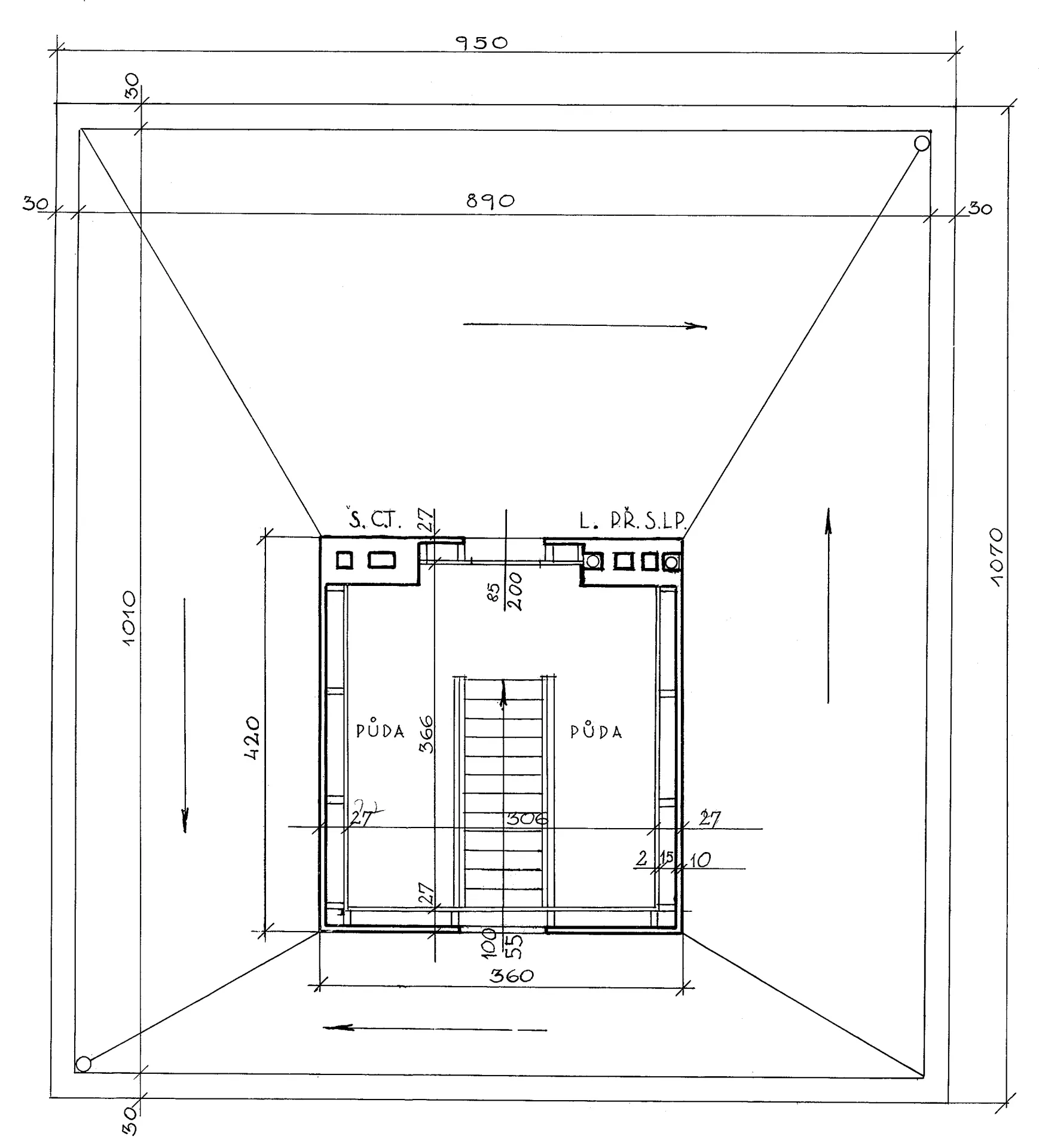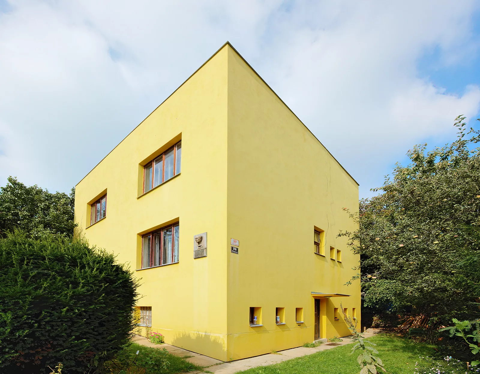 The plain cube of Kudela villa is situated on the corner of Klácelova and Havlíčkova streets and was built according to a design by Jan Víšek in 1927. The villa was ordered by secondary school teacher and later principal of the First Slavonic Grammar School Josef Kudela, who, as a Russian legionary, participated in the battles of World War I and died in a concentration camp where he was sent by the Nazis as punishment for his engagement with the resistance movement. Jan Víšek is one of the representatives of the strictly rational branch of Brno functionalism seen in the austere facades and the compact mass of this three-level villa. The inconspicuous main entrance is situated on the north-east garden facade, which is only segmented by the small windows of service rooms in the basement and the ground floor. A staircase connects the small entrance hall with the main residential area with the kitchen, spacious hall and dining room, facing south-west and looking out on Havlíčkova Street. The landscaping of this part of the sloping garden has the nature of a raised terrace joined by a glass door to the veranda adjacent to the dining room and kitchen. The symmetrically situated staircase divides the area of the first floor housing four bedrooms and the bathroom. The extensive roof terrace accessible from a cubic roof extension was originally conceived as a residential area, too. The minimalism of the facades on the Kudela Villa is close to the thinking of Adolf Loos, who shifted his attention completely to the interiors of his buildings. This is clearly seen in the Müller Villa in Prague, the facade of which received minimal attention and the individual irregularly arranged openings merely reveal the layout of the rooms in the interior. Víšek's purism is also rooted in the functionalist effort to attain the radical purity and functionality of the forms used. PH