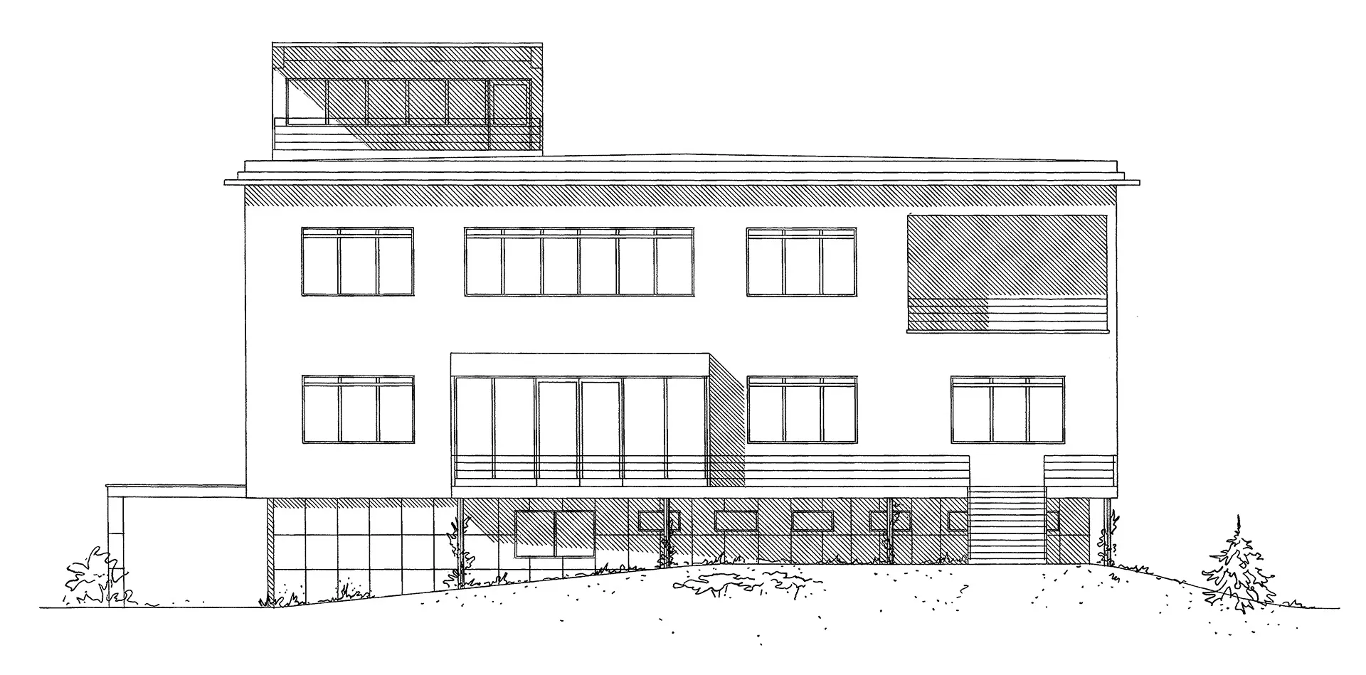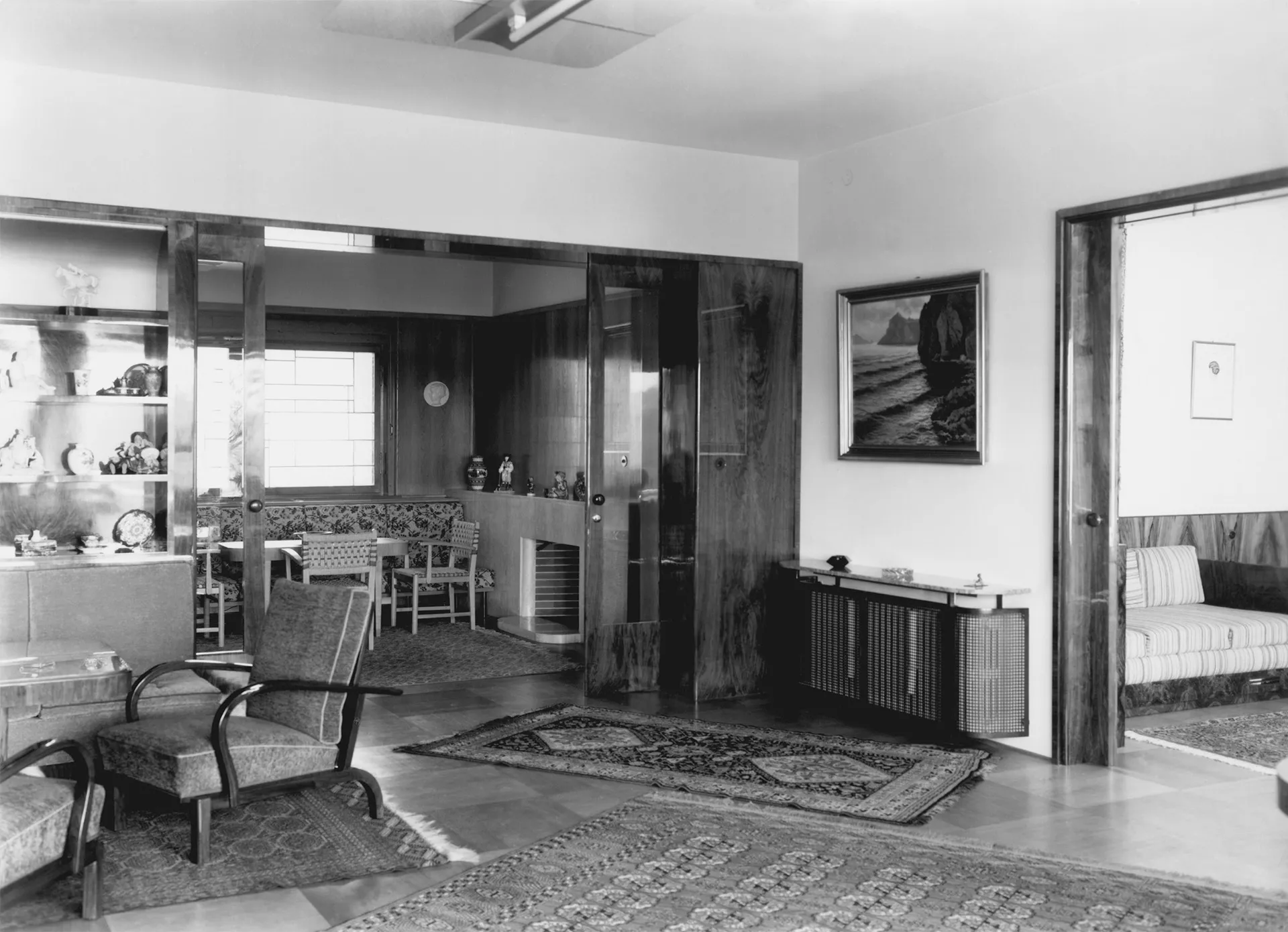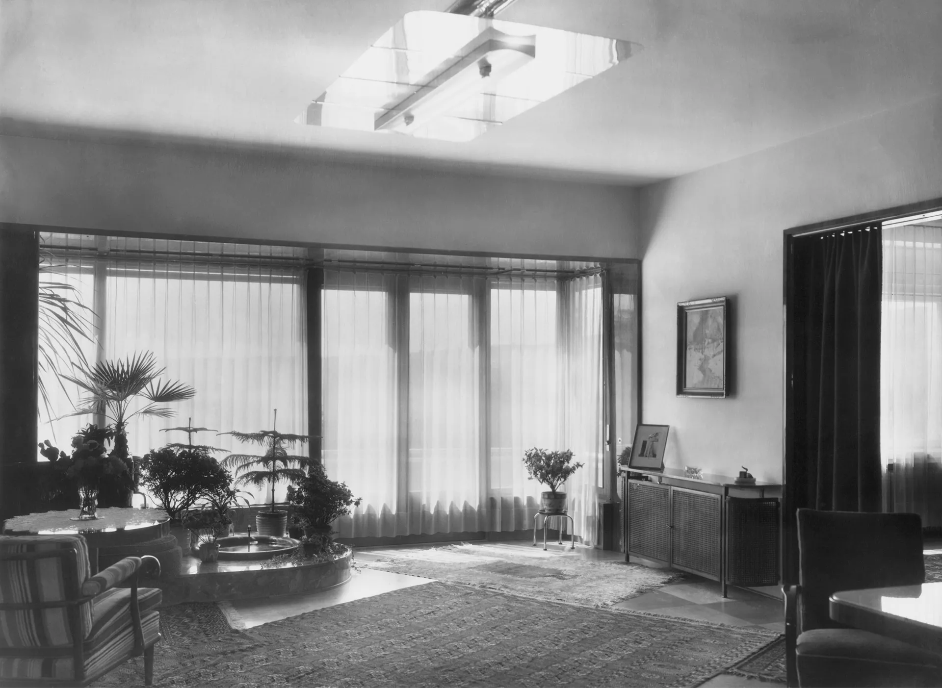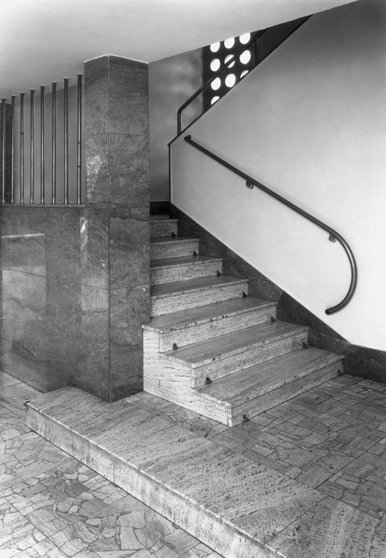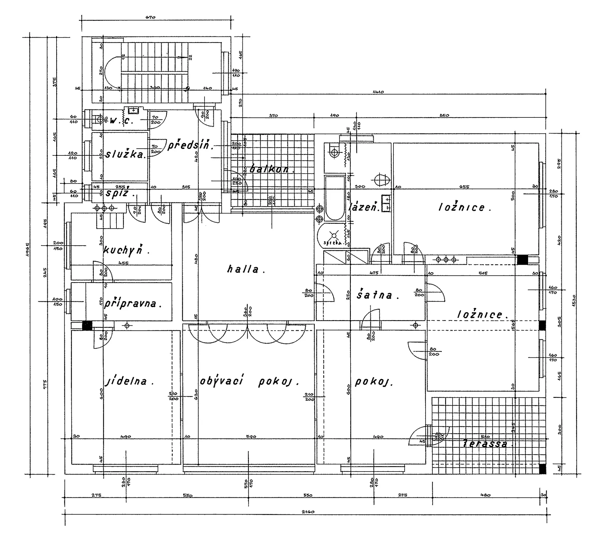 The Láska Villa was built at the end of the 1930s near the Neumark Villa designed by Ernest Wiesner. Working for an attorney and the Dutch consul's daughter, the architect Evžen Škarda designed an impressive and spacious residence whose red facade was probably inspired by the neighboring house built a decade earlier. The architectural expression of the house with a wealth of subtle detail is, however, much closer to the minimalist esthetics of functionalism. The three-level building resting upon the travertine base of the service basement is situated deep in the garden; its main residential areas face south towards the street. The main motif of the street facade is the conical protruding terrace borne by slim pillars that contrast with the otherwise strictly rectangular layout. The terrace is also accessible through the glazed risalit of the living room; the motif of a glassed terrace is repeated in the south-east corner of the second floor. Its railings are perforated by rows of circular glass blocks which also bring light to the staircase risalit on the rear facade. The interior is divided into two nearly identical apartments, each of which occupies one floor. One of these flats was offered for rent. The core of the disposition is a square hall dividing the apartment into the residential south-east part and the service north-west part. Many rooms are separated only by curtains or sliding walls, which creates the impression of open and flowing space. The present condition of the villa serves as an exemplary case of landmark building restoration. The villa was reconstructed by the PAW studio (architects Ludvík Grym and Jindřich Škrabal), which, in addition to original designs, focuses on the restoration of interwar landmark buildings. PH