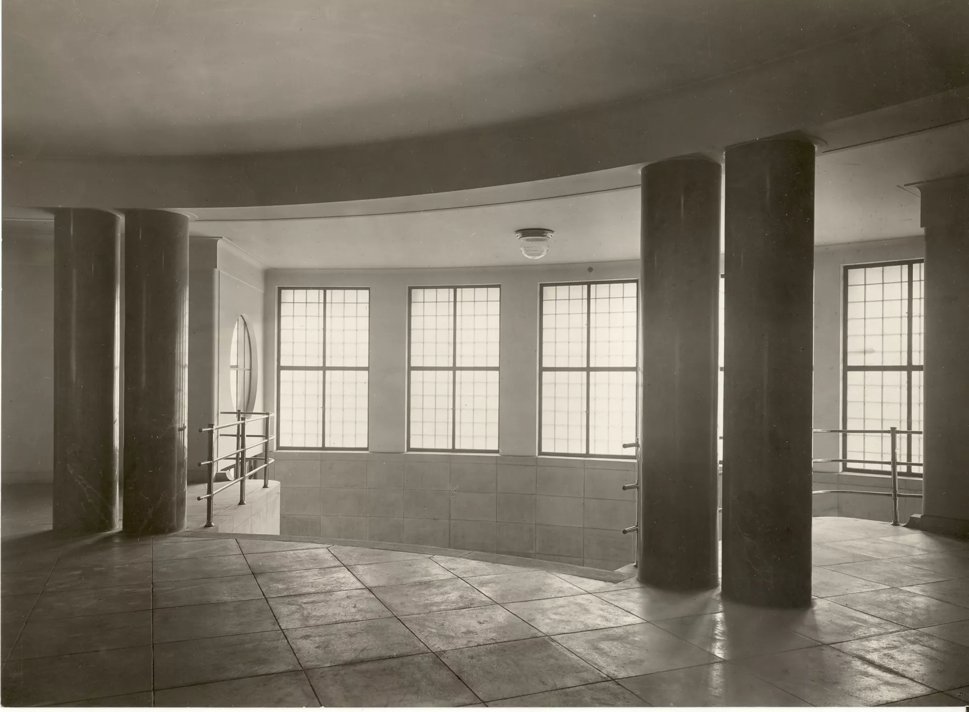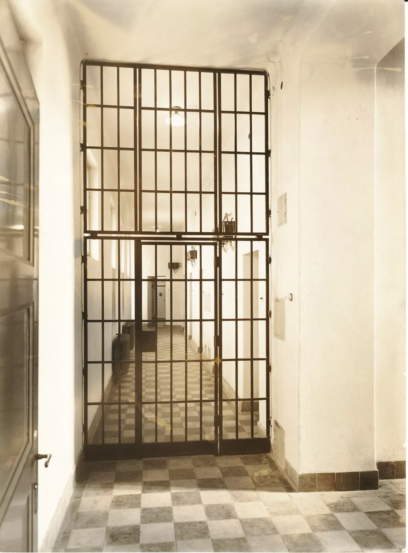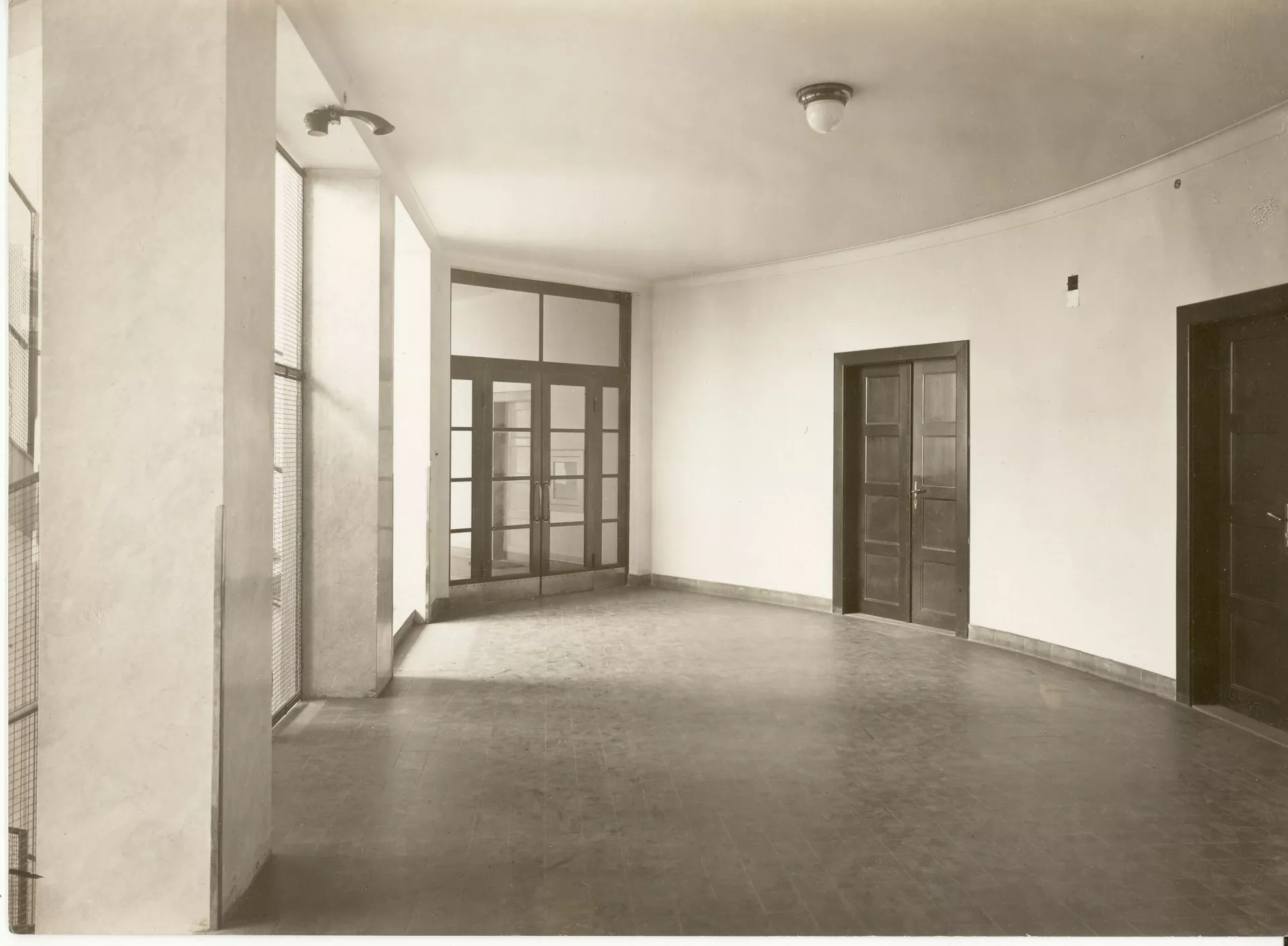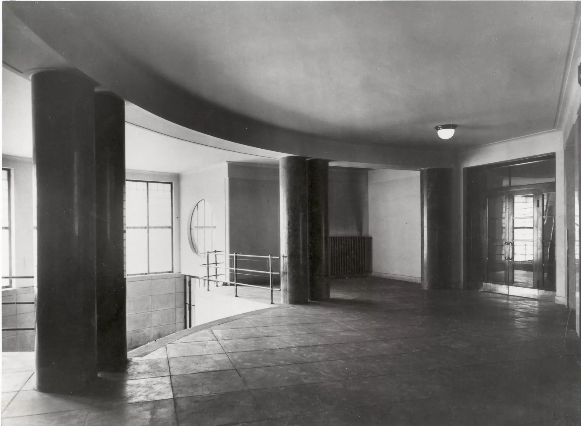It was necessary to find or build the seats of many newly formed or modernized institutions in the young Czechoslovakia in the first half of the nineteen twenties. The construction and adaptation of buildings was arranged by the Regional Political Administration, which also oversaw the building of the new police headquarters in Orlí Street. The design of the building, whose facade conceals rather complicated operations, was produced by development office staff - architects Jaroslav Grunt and Josef Adolf álek - who were forced to deal with a difficult commission. Older buildings forming a block were demolished on the corner of the present-day Orlí and Bene ova streets; only the Ripka department store by architects Prokop and Augener from 1887 looking out on Bene ova street was preserved. The new six-level police headquarters were linked to the older building, closing the entire block facing Novobranská Street with a curved facade. The smooth, already purist facade conceals three two-tract wings on an A-shaped ground plan with two inner courts. The two main entrances situated symmetrically in the corner lead to a foyer with a staircase and pillars faced with marble; the foyer provides access to the adjoining wings. The wings contained police offices, the passport department, temporary detention cells, the public relations department, document archives, clerk offices, barracks, the deputy's offices and other police offices. The facade of the building is traditionally divided by the tall stone base whose corner pillars balance the horizontal rows of windows. The only relief element in the facade involved two lengthwise Czechoslovak coats of arms by sculptor Josef Kubíček installed at the entrances; unfortunately, these have not been preserved.