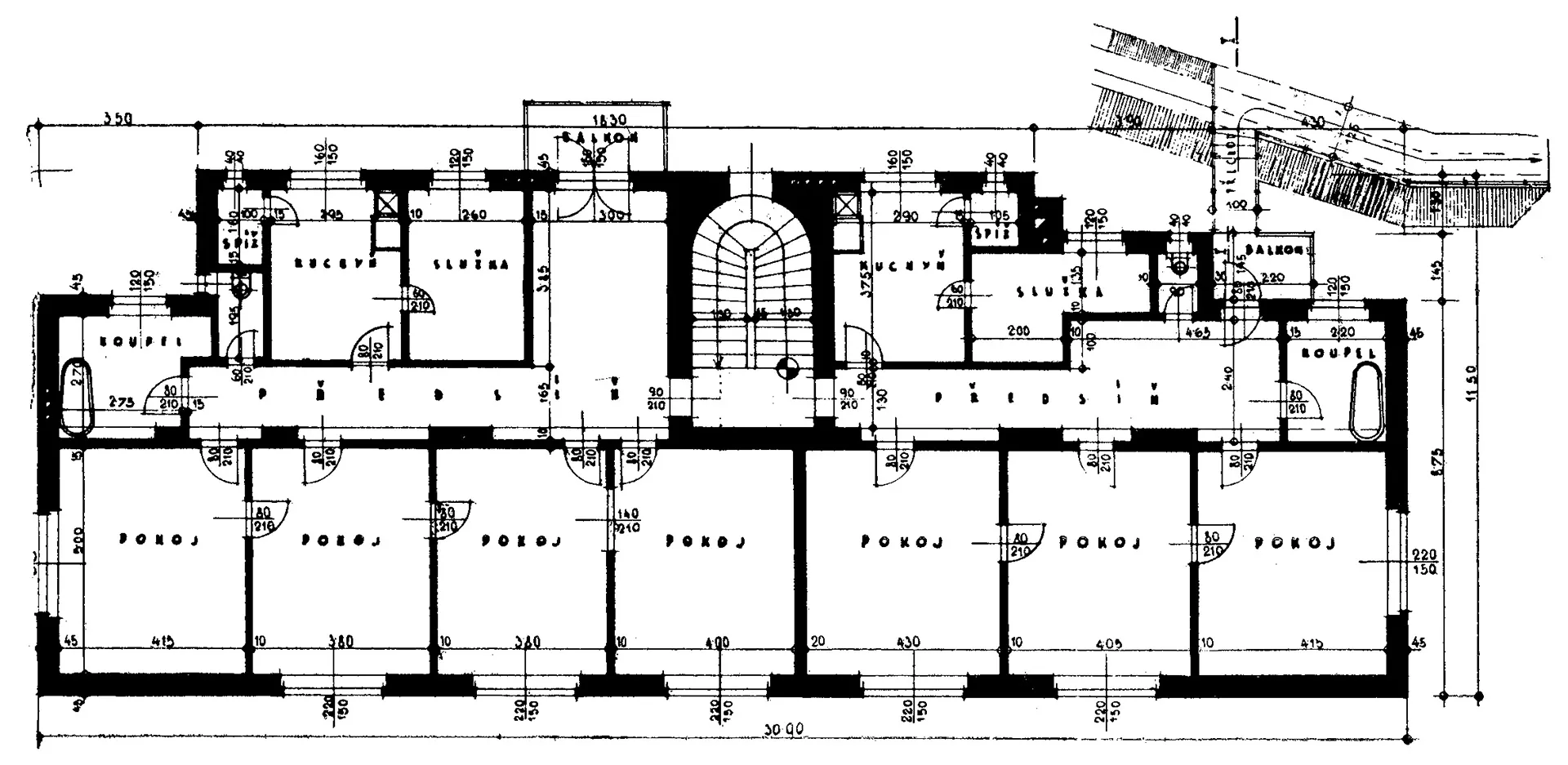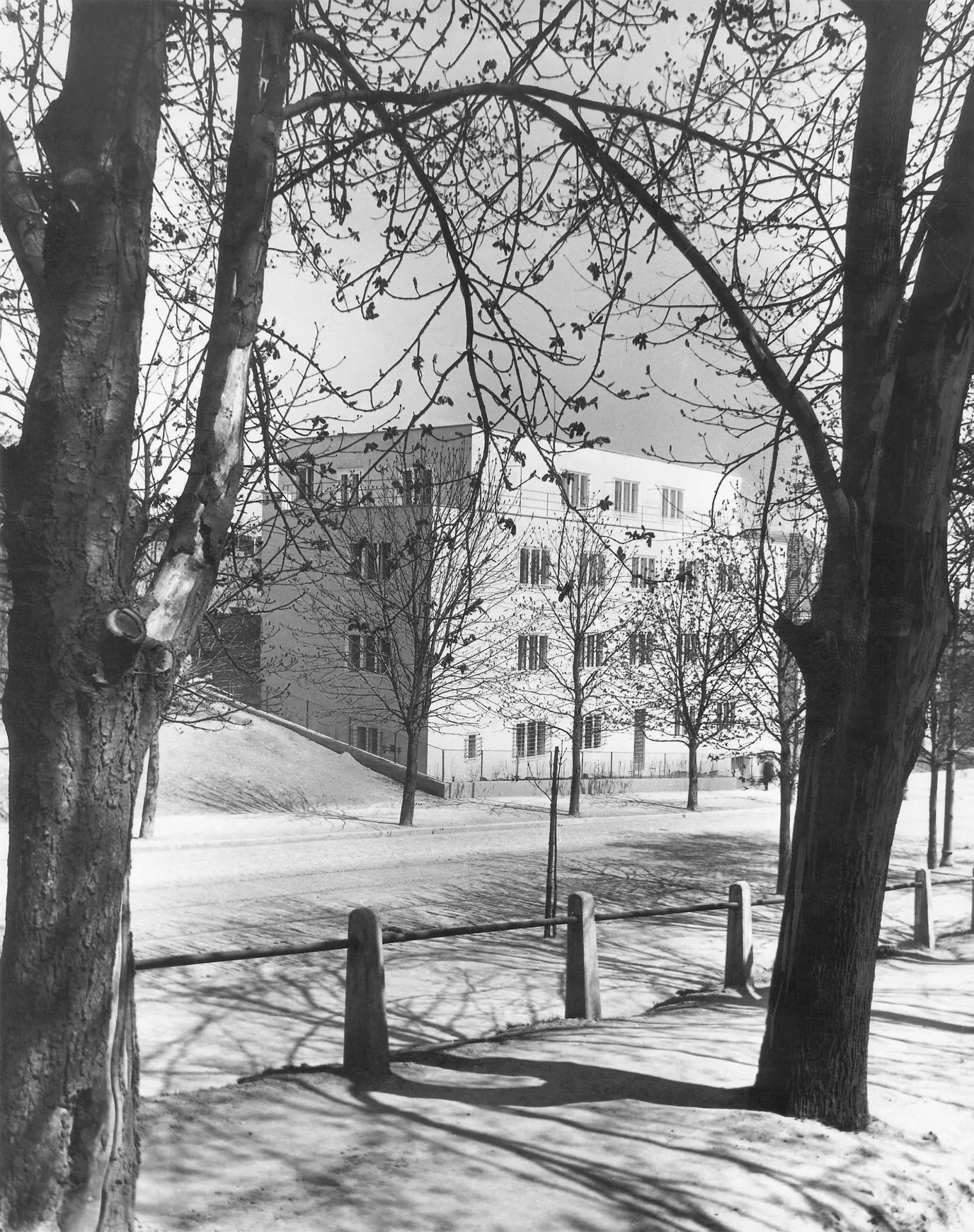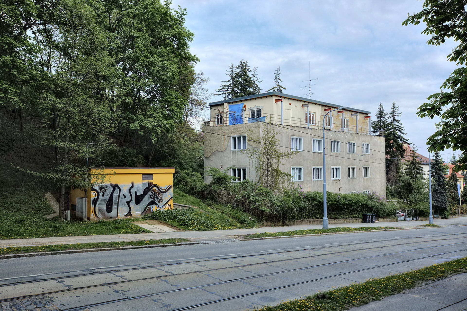 A residential house designed by Otto Eisler representing another building meeting the requirements for the new "international style", was built in Údolní Street ascending the slope of Kraví hora in 1932. The new style is best manifested in the reduction of the role played by the facade down to a mere element encircling an area and providing protection against adverse weather, as well as by the horizontal layout of the mass of the house without seeking esthetic symmetry. The only decoration is found in functional elements and details like railings, window frames, entrances, doors or handles, the quality design and manufacture of which is closely observed. The four-story building on an oblong ground plan was built near the new park. It features three- and four-room apartments; the top story originally housed a single large six-room apartment with a rectangular terrace. In order to connect the interior to the surrounding landscape, Eisler designed subtle footbridges (still existing today) situated on the garden facade and connecting the individual apartments to the adjacent slope. Plans to plant an orchard in the garden were never fully completed. Recently the roof, whose structure was made of bauxite cement, has suffered serious damage. Although this material makes it possible to accelerate construction even in the winter months, its strength degrades in the course of time, which is why some functionalist structures have had to be demolished for stability reasons. In this case, instead of receiving a desirable overall reconstruction, the top floor of the house has undergone some insensitive structural adjustments, mainly due to a lack of cultural heritage protection.