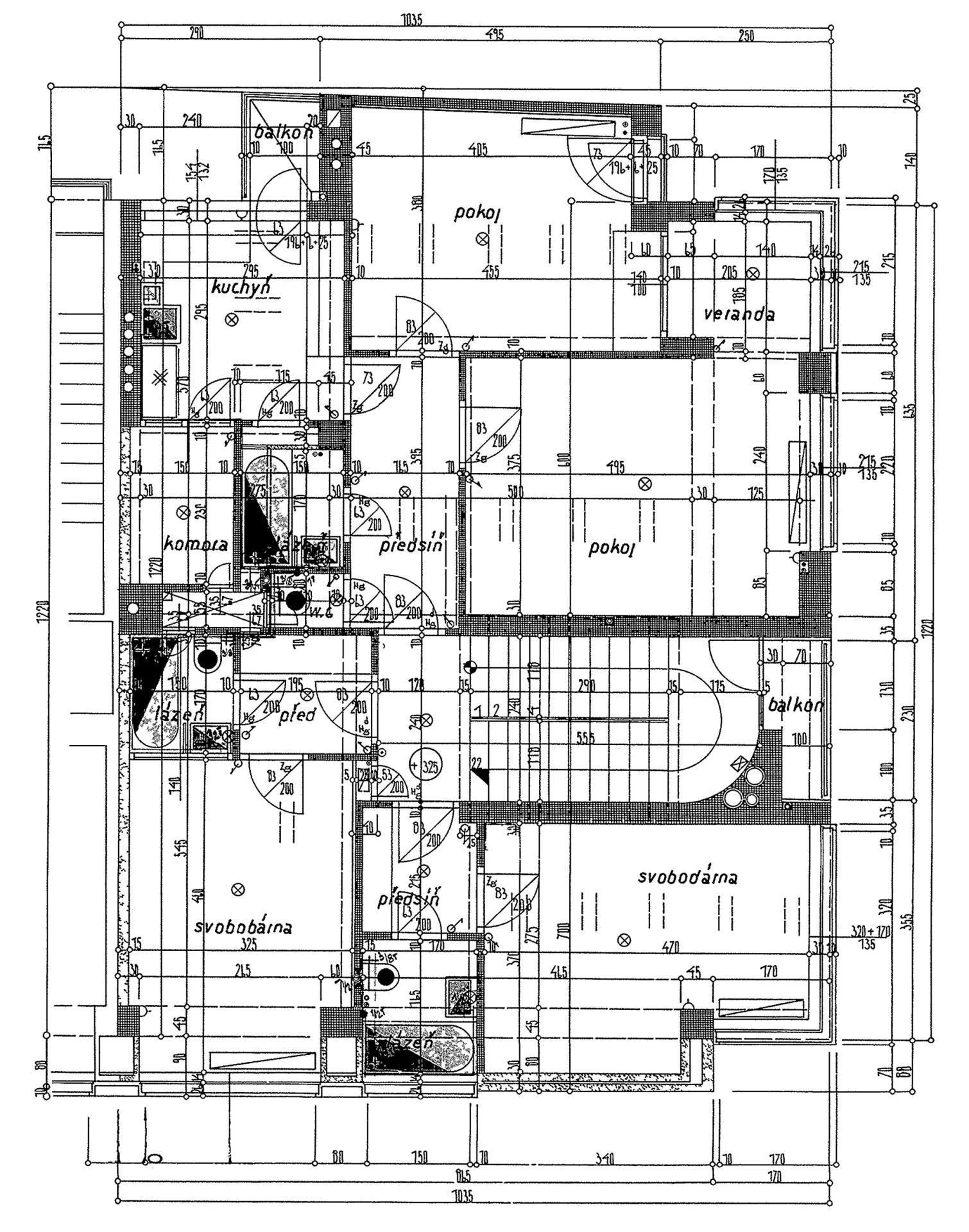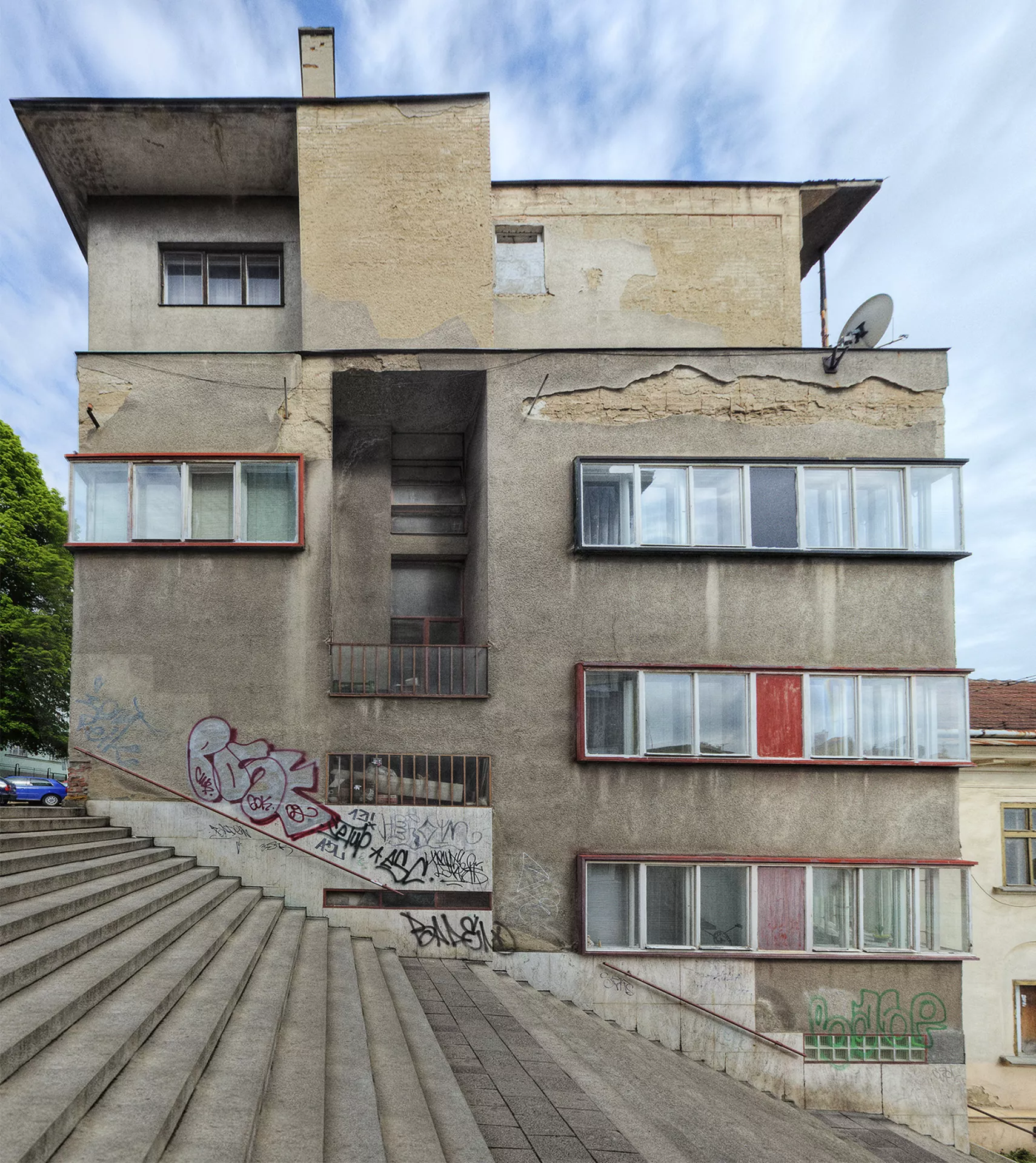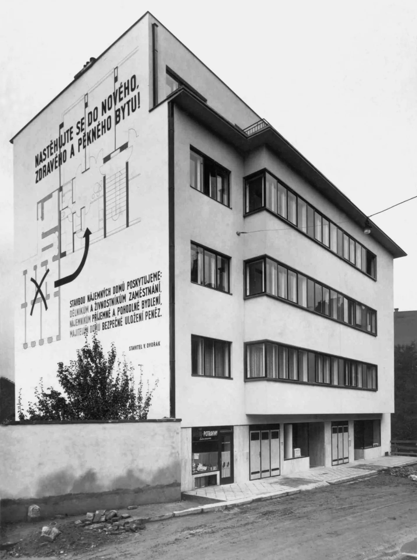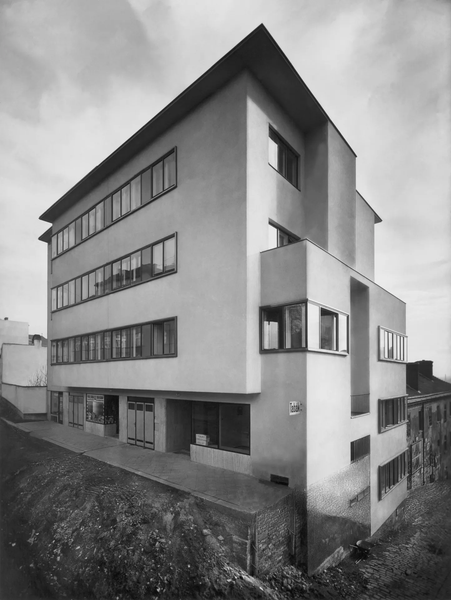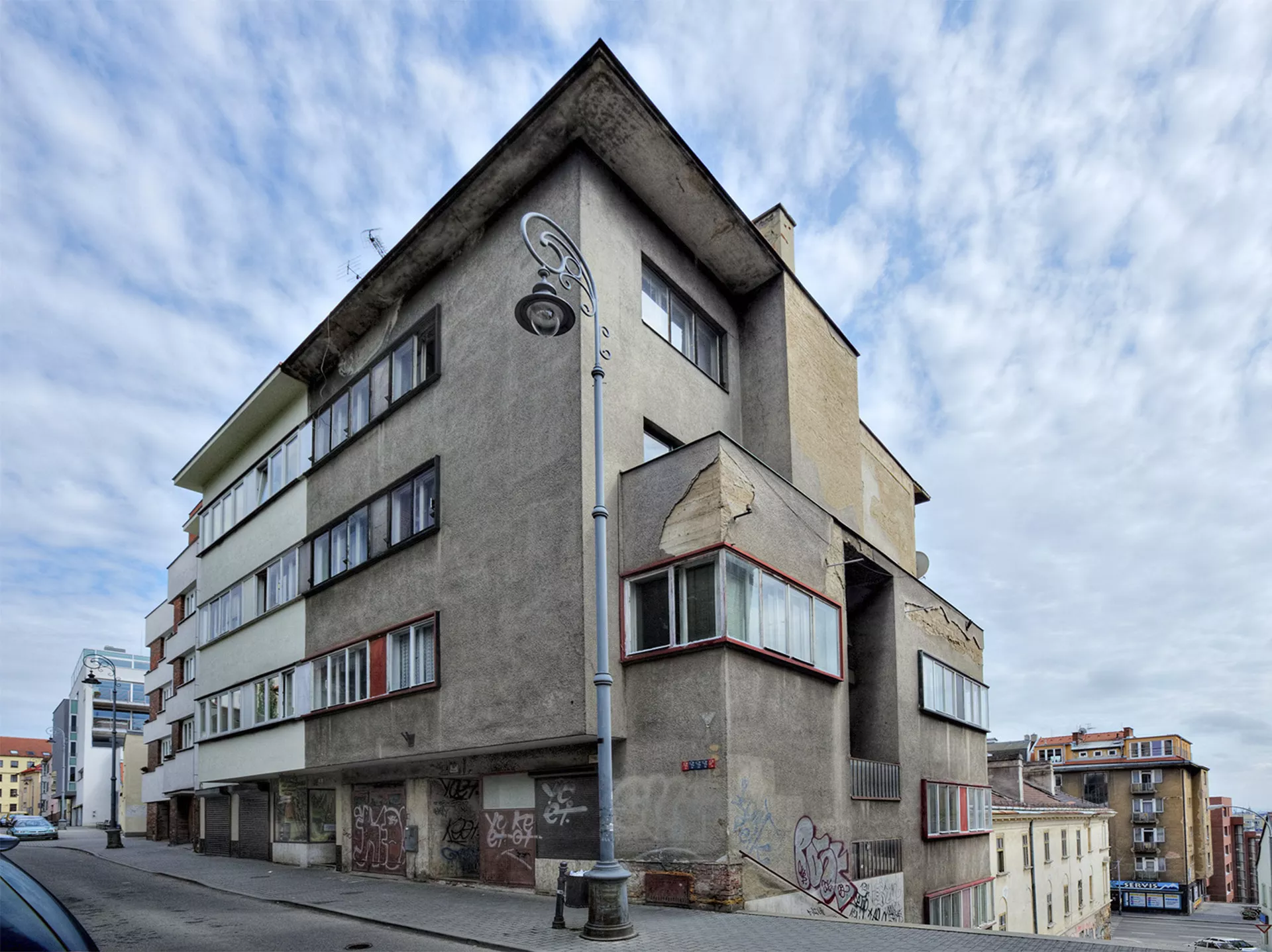 The houses at 5 and 5a in Pellicova Street were designed by Jaroslav Brázda and boast a magnificent urban conception. Their masses skirting the staircase ascending from Pekařská Street accent the perpendicular link between both streets and form a monumental gateway to the Czechoslovak Evangelical Church.