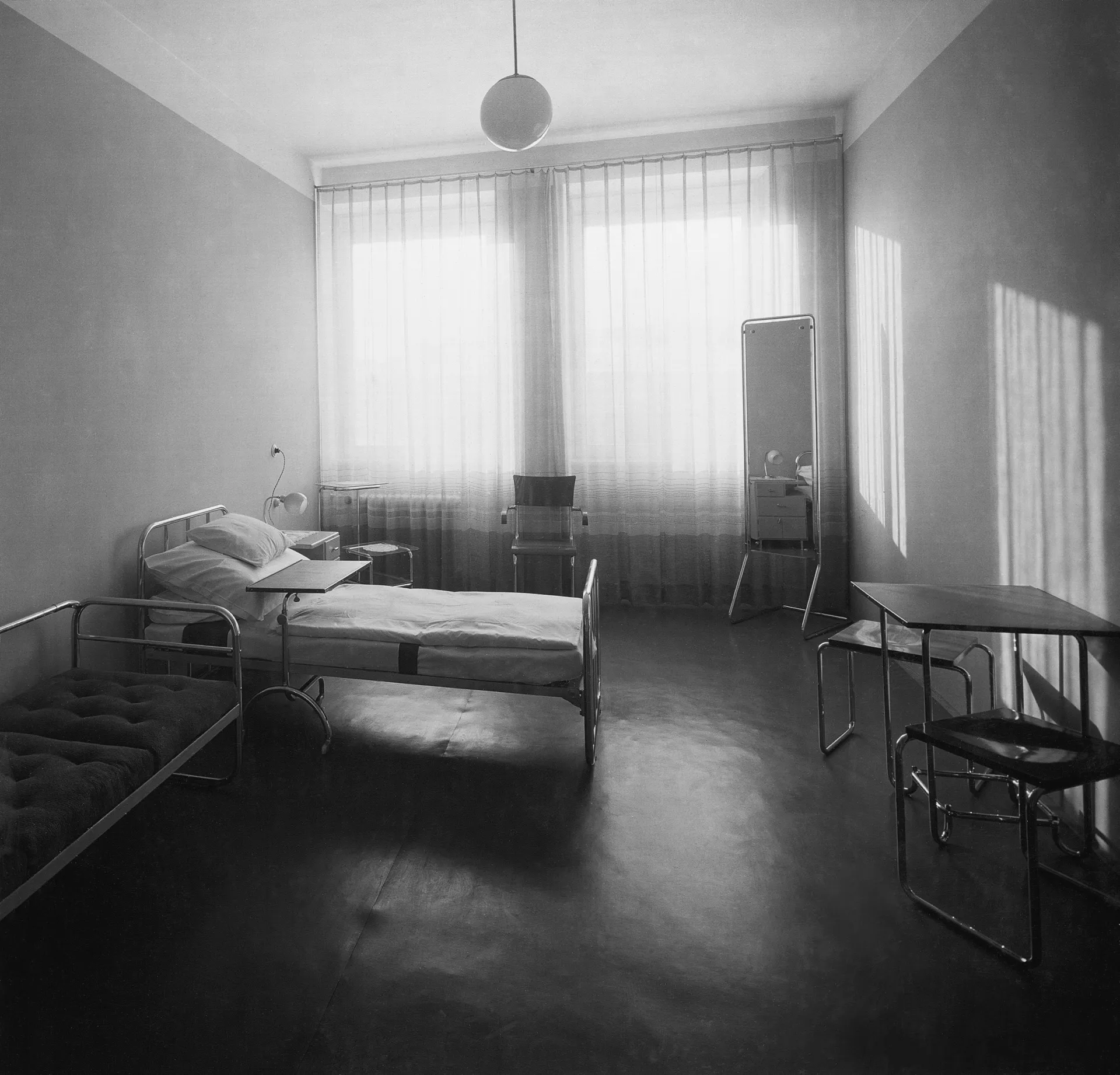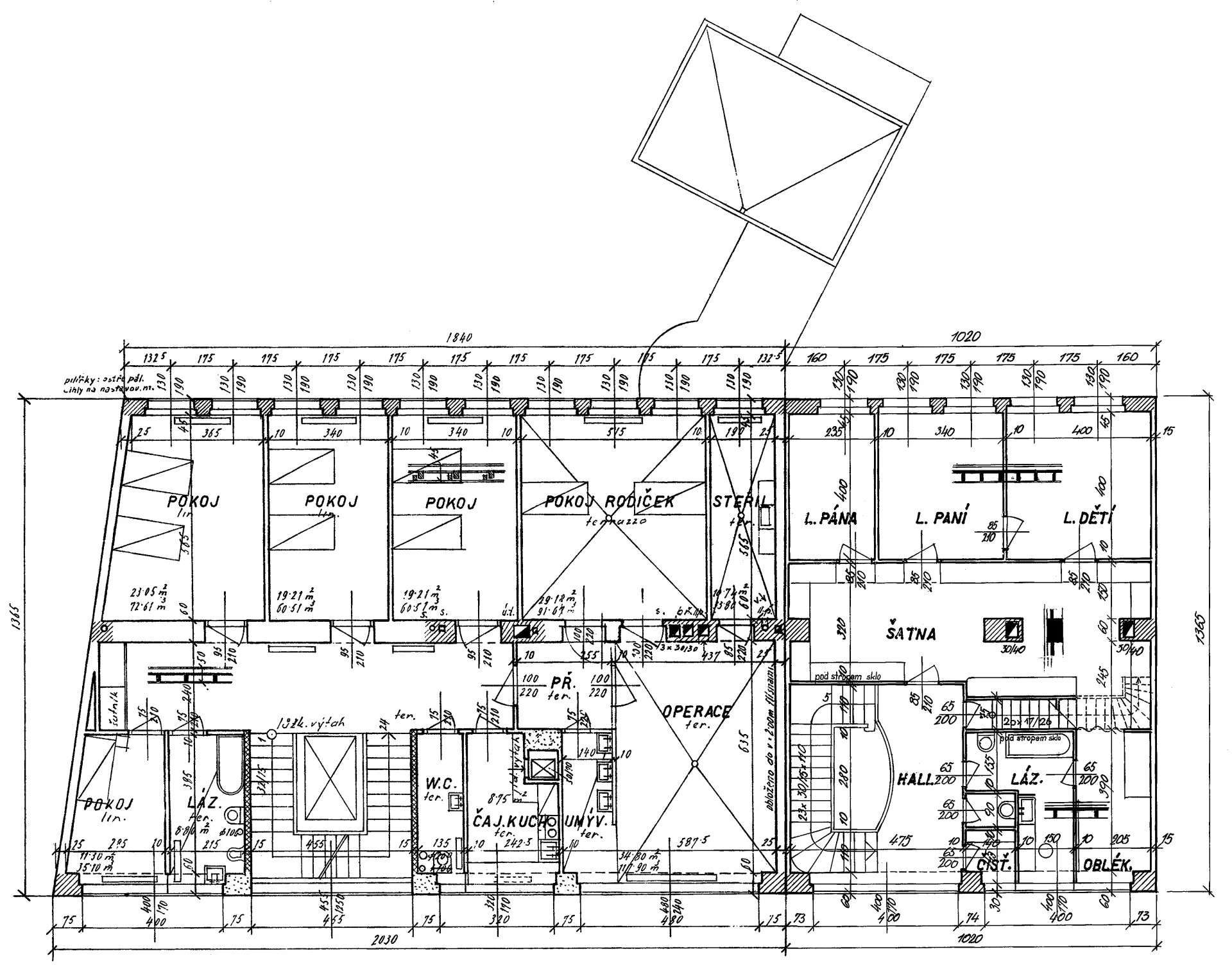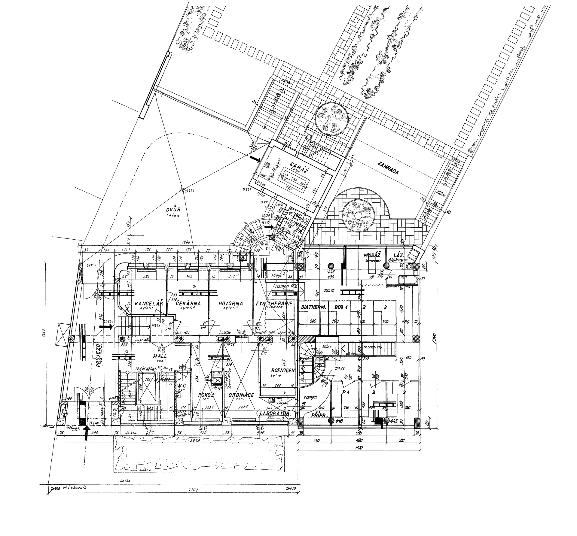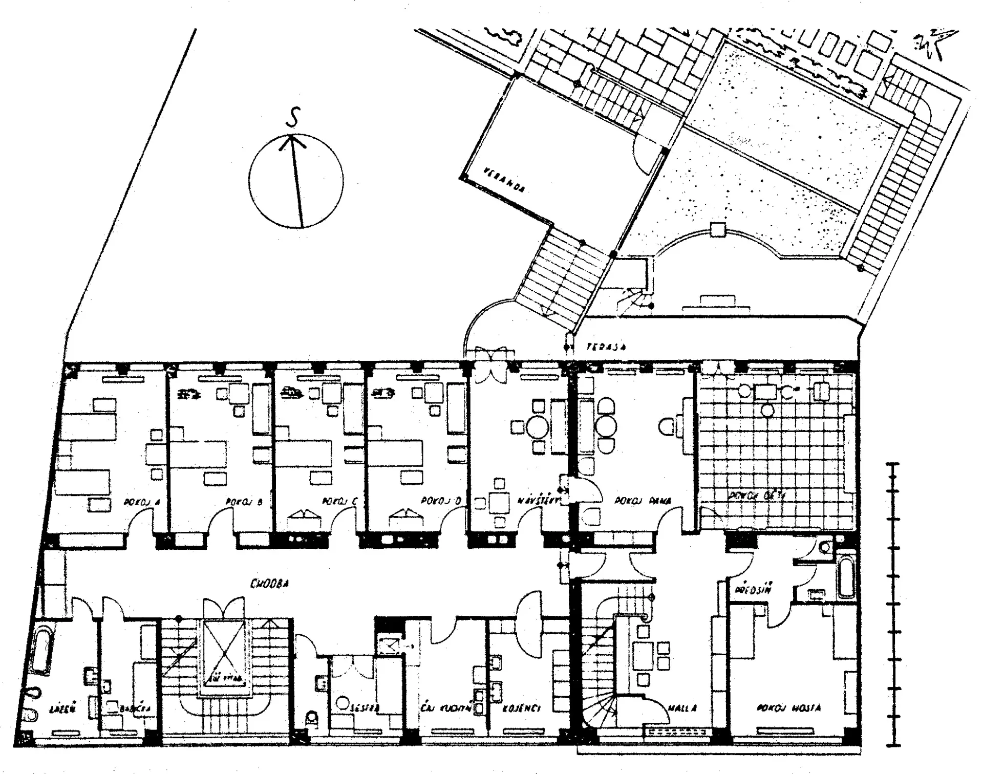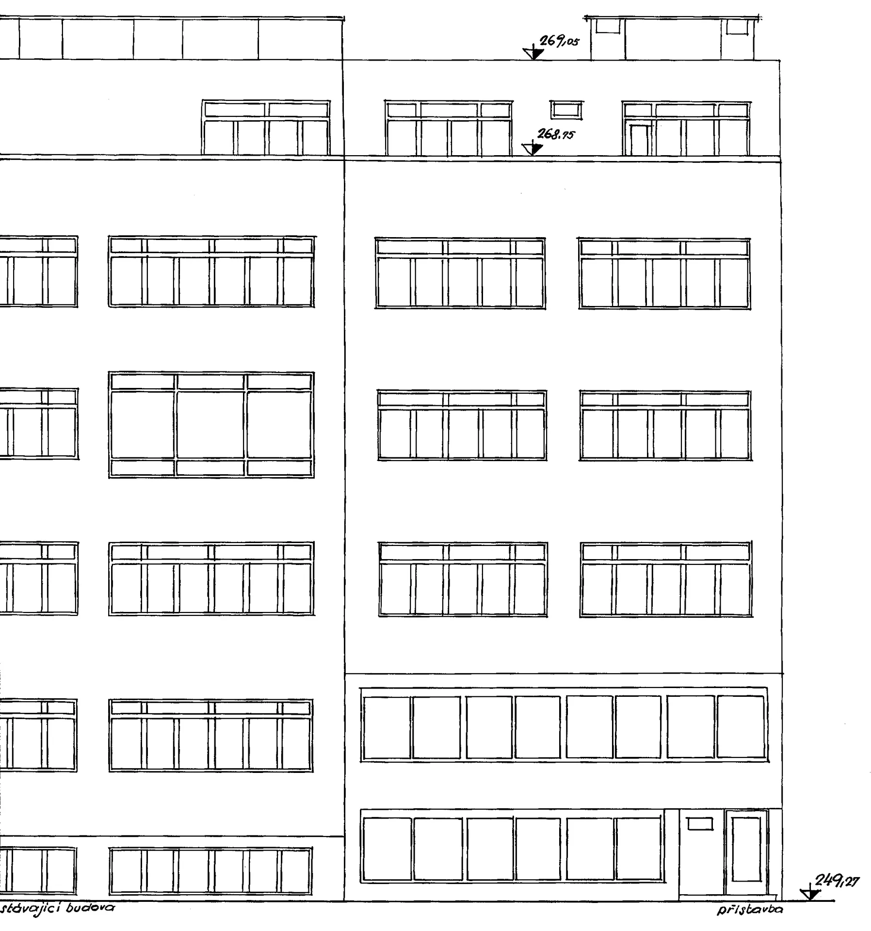 In the early 1930s, MUDr. Václav Šilhan, who had worked at the Clinic of Gynecology and Obstetrics since 1924, decided to open his own gynecological sanatorium. The task to design the clinic in Veveří Street was assigned to Jan Víšek, who managed to create a modern building whose minimalistic esthetics corresponded to the clinic's cutting-edge technological furnishings. The architect also cooperated with his customer at stage two of the development, which involved the adjoining house owned by the Šilhan family on the neghboring plot. The layout of the six-storey sanatorium building was ingeniously arranged so that the individual areas were functionally linked and offered maximum comfort to the patients. The entrance was situated in the gateway on the left, which led to the check-in hall and waiting room. The patients were admitted to the consulting room and then to the surgery adjoined by an X-ray room and laboratory. After the examination, the patients could rest in the day room with sanitary facilities, which led back to the entrance hall. The first floor housed single and double bedrooms, a kitchen and a consulting room leading to the garden veranda; the second floor also featured a spacious operating theater. Rooms, together with service rooms and a terrace, were also located on the third and fourth floors. The plain street front segmented by rectangular windows is accentuated by the vertical glass wall of the staircase. The gateway entrance on the left-hand side is balanced by the large window of the operating theater on the second floor. Shortly after the completion of the sanatorium, Václav Šilhan decided to build his own house on the neighboring plot. Its facade is formally linked to the older building; only the basement and ground floor are emphasized by light ceramic cladding. The basement housed a large hall with a piano, open toward the garden, and the dining room facing the street. The dining room was adjoined by the preparation room and kitchen situated in the basement of the sanatorium together with the larder, cellars and the caretaker's apartment. A staircase ascended from the common room to the ground floor, which was interconnected with the neighboring building and housed laboratories and rehabilitation rooms. The first floor with the raised hall was occupied by the children's rooms as well as the owner's room connected to the admission room of the sanatorium. The second floor featured the family's bedrooms, the third floor was an extension of the inpatient ward of the sanatorium and the fourth housed staff rooms and a terrace. The interiors of both buildings with bathrooms paneled with opaxite, inpatient and common areas equipped with modern furniture made of bent steel and the marble paneling of the common entrance hall were also exquisite. During World War II Václav Šilhan joined the Protection of the Nation resistance movement and donated 100,000 Czechoslovak crowns for the procurement of medical materials. He was arrested by the Gestapo in 1942 and transported to the Mauthausen concentration camp, where he presumably died. In 1954 his private sanatorium became part of the Gynecology and Obstetrics Clinic of Brno Faculty Hospital and continued to serve its original purpose. However, the conditions considerably deteriorated during the period of Communist rule. After the Velvet Revolution the clinic was restituted and its private owner reconstructed the building completely after a vast fire in 2003.