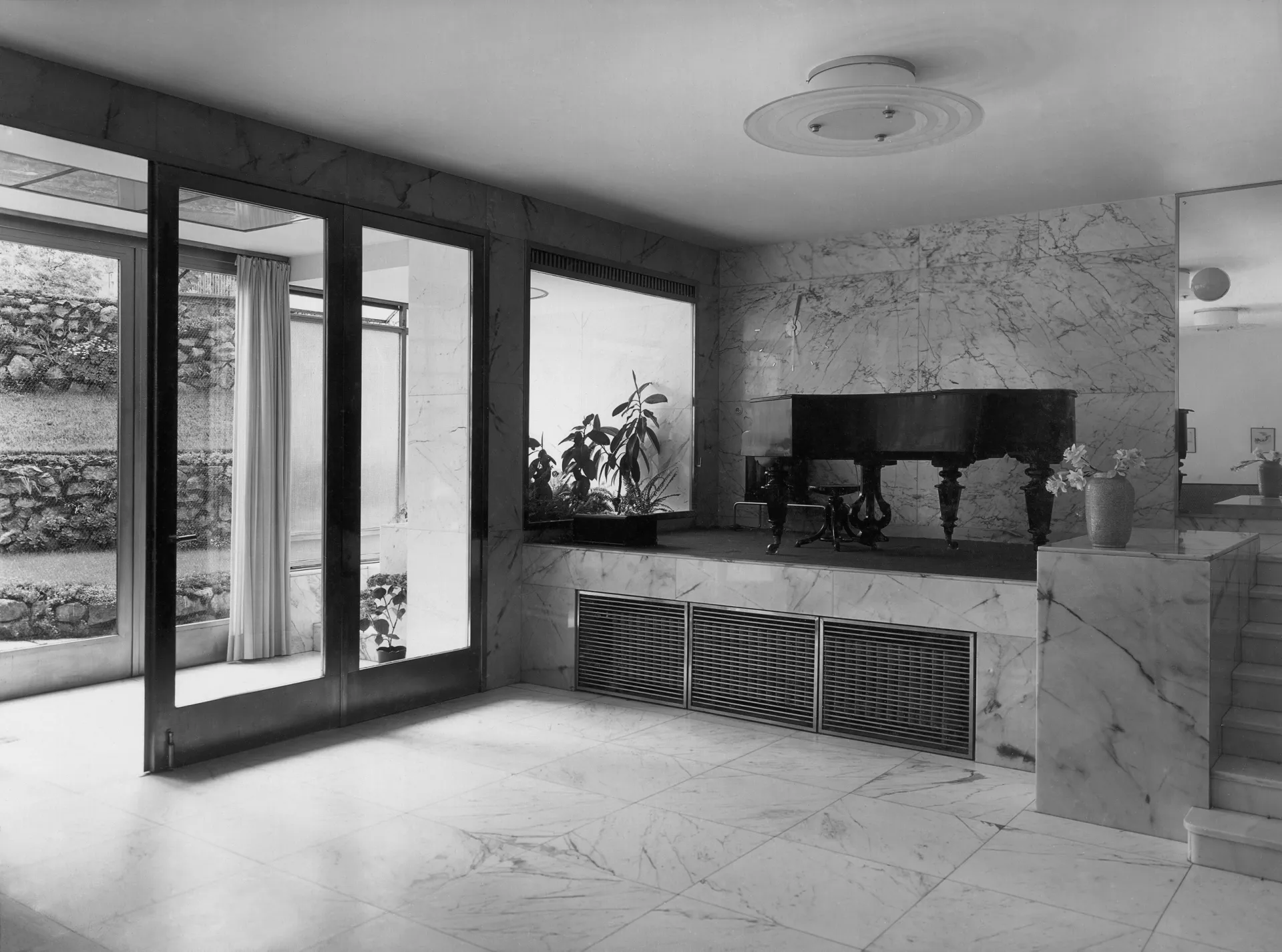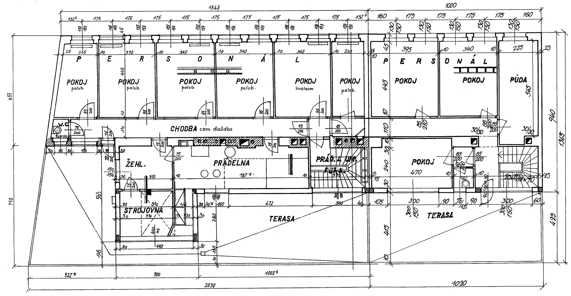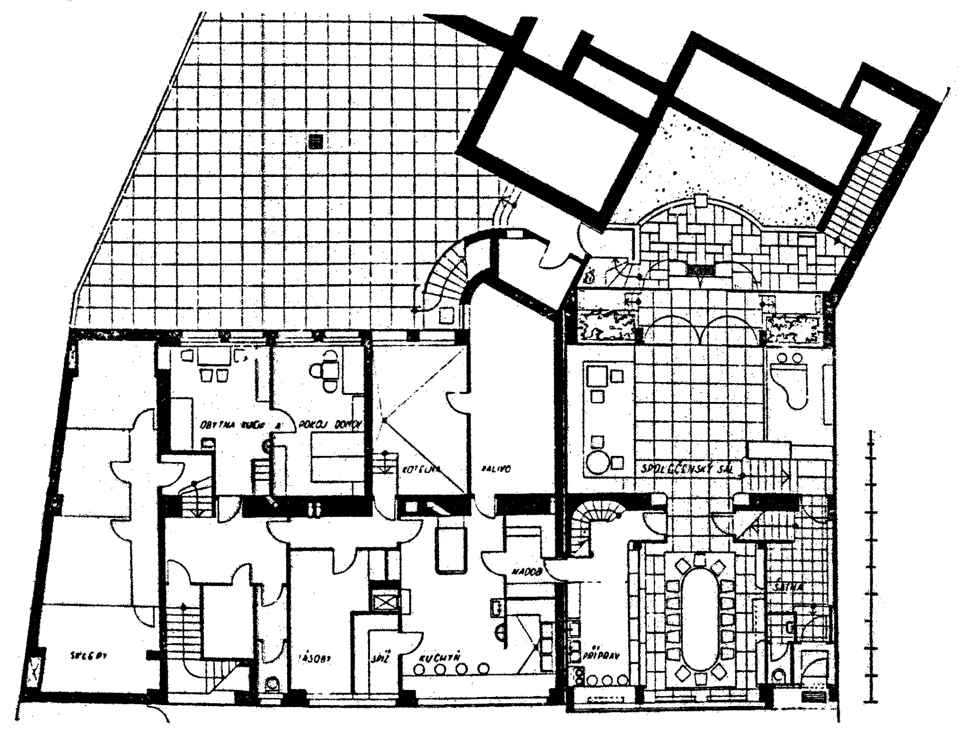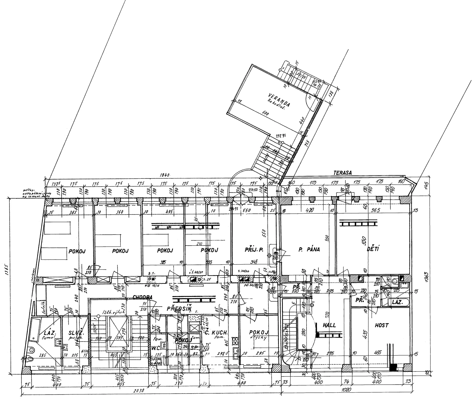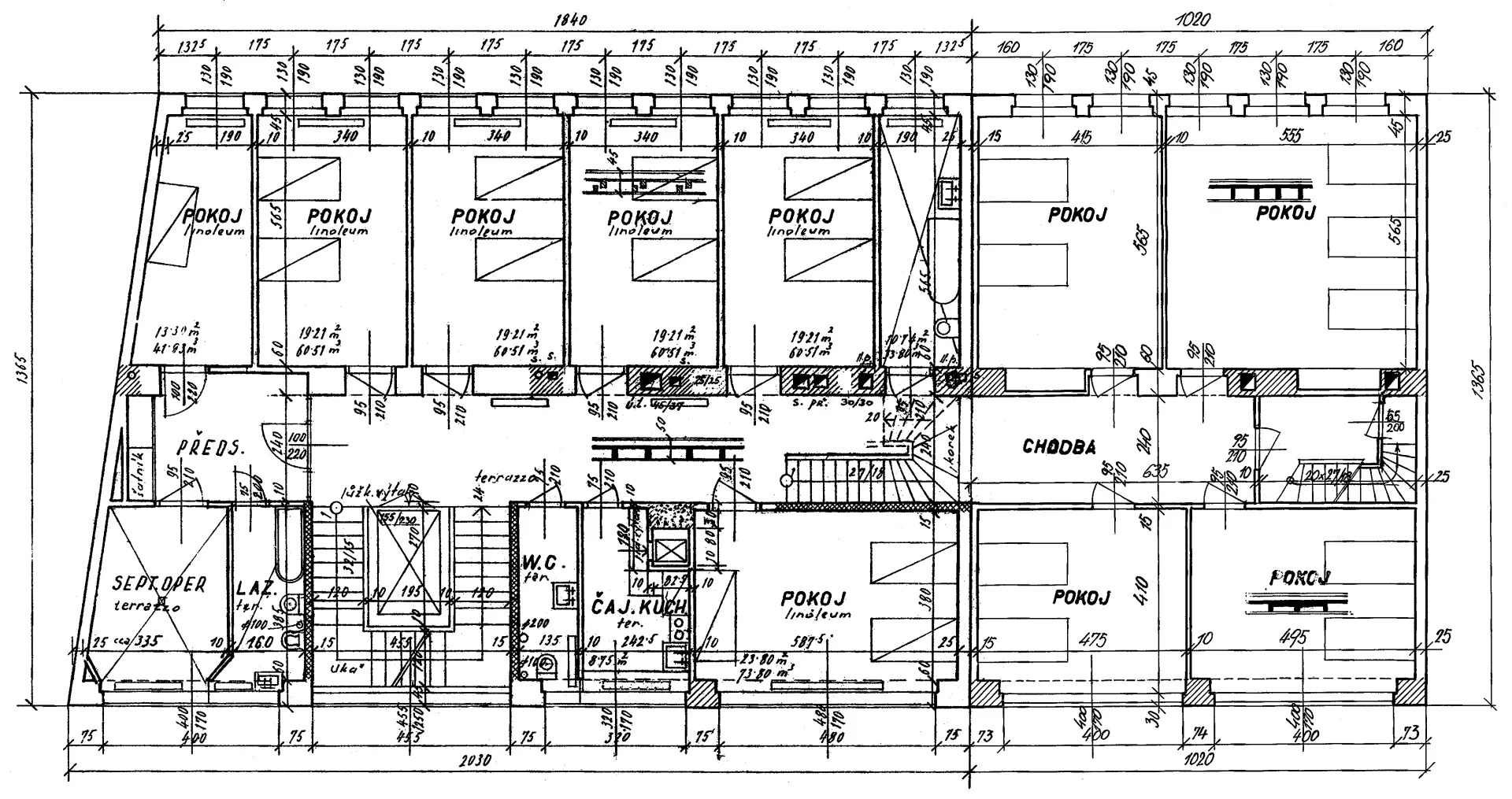 In the early 1930s, MUDr. Václav Šilhan, who had worked at the Clinic of Gynecology and Obstetrics since 1924, decided to open his own gynecological sanatorium. The task to design the clinic in Veveří Street was assigned to Jan Víšek, who managed to create a modern building whose minimalistic esthetics corresponded to the clinic's cutting-edge technological furnishings. The architect also cooperated with his customer at stage two of the development, which involved the adjoining house owned by the Šilhan family on the neghboring plot. The layout of the six-storey sanatorium building was ingeniously arranged so that the individual areas were functionally linked and offered maximum comfort to the patients. The entrance was situated in the gateway on the left, which led to the check-in hall and waiting room. The patients were admitted to the consulting room and then to the surgery adjoined by an X-ray room and laboratory. After the examination, the patients could rest in the day room with sanitary facilities, which led back to the entrance hall. The first floor housed single and double bedrooms, a kitchen and a consulting room leading to the garden veranda; the second floor also featured a spacious operating theater. Rooms, together with service rooms and a terrace, were also located on the third and fourth floors. The plain street front segmented by rectangular windows is accentuated by the vertical glass wall of the staircase. The gateway entrance on the left-hand side is balanced by the large window of the operating theater on the second floor. Shortly after the completion of the sanatorium, Václav Šilhan decided to build his own house on the neighboring plot. Its facade is formally linked to the older building; only the basement and ground floor are emphasized by light ceramic cladding. The basement housed a large hall with a piano, open toward the garden, and the dining room facing the street. The dining room was adjoined by the preparation room and kitchen situated in the basement of the sanatorium together with the larder, cellars and the caretaker's apartment. A staircase ascended from the common room to the ground floor, which was interconnected with the neighboring building and housed laboratories and rehabilitation rooms. The first floor with the raised hall was occupied by the children's rooms as well as the owner's room connected to the admission room of the sanatorium. The second floor featured the family's bedrooms, the third floor was an extension of the inpatient ward of the sanatorium and the fourth housed staff rooms and a terrace. The interiors of both buildings with bathrooms paneled with opaxite, inpatient and common areas equipped with modern furniture made of bent steel and the marble paneling of the common entrance hall were also exquisite. During World War II Václav Šilhan joined the Protection of the Nation resistance movement and donated 100,000 Czechoslovak crowns for the procurement of medical materials. He was arrested by the Gestapo in 1942 and transported to the Mauthausen concentration camp, where he presumably died. In 1954 his private sanatorium became part of the Gynecology and Obstetrics Clinic of Brno Faculty Hospital and continued to serve its original purpose. However, the conditions considerably deteriorated during the period of Communist rule. After the Velvet Revolution the clinic was restituted and its private owner reconstructed the building completely after a vast fire in 2003.