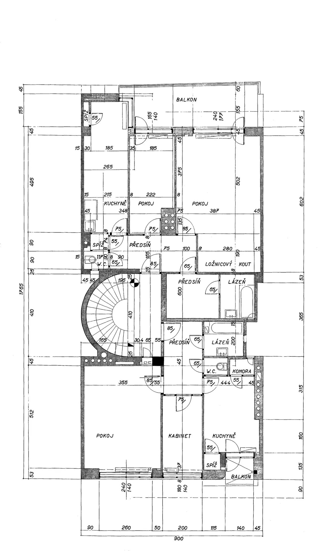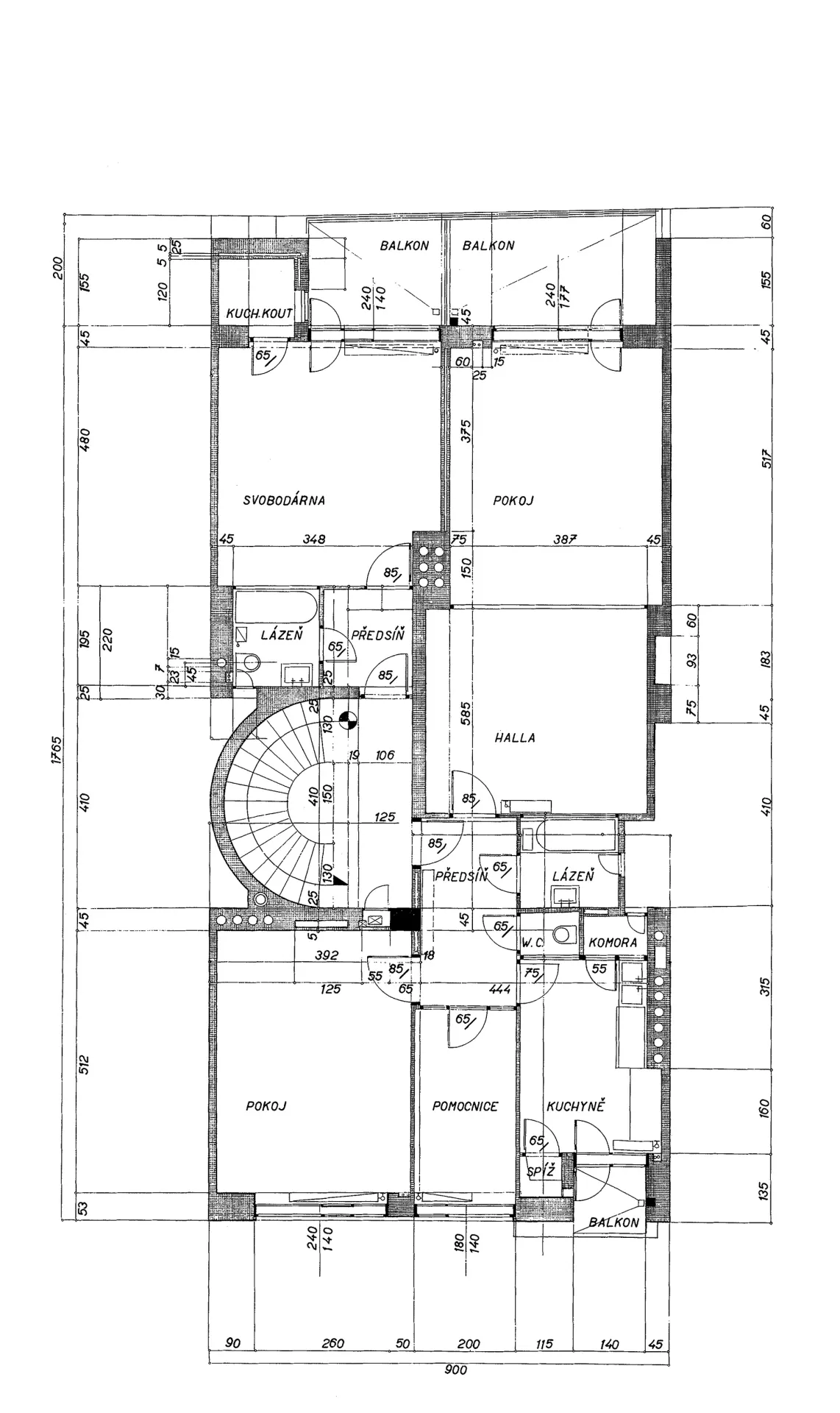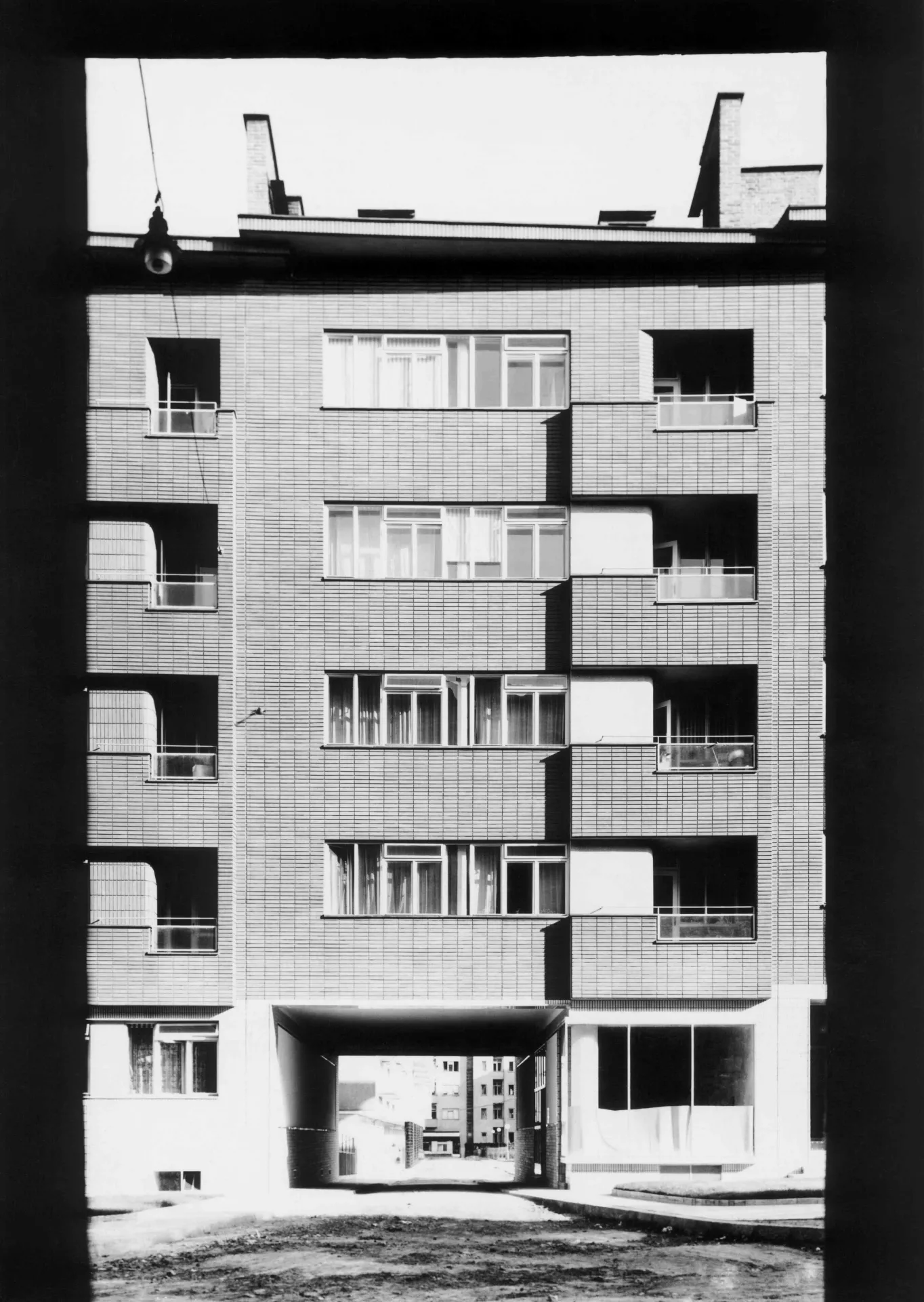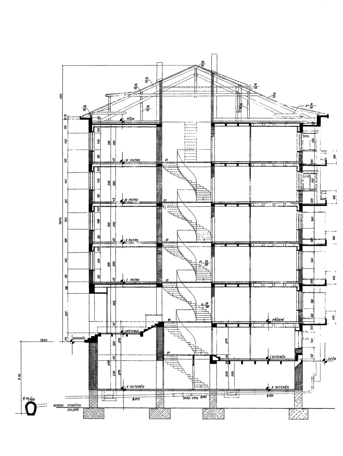 The site of the former Moravia Brewery between Kotlářská, Bayerova and Dřevařská streets was used to build a residential complex of apartment buildings in 1938-41. The buildings were designed by architect Jaroslav Brázda, who even utilized the former cellars of the brewery and, aware of the imminent danger of war, converted them into cubicles and air raid shelters. The urban complex consists of a half-open block with several passages and an inner green yard, where the row of buildings forming Hoppova Street is situated. This layout stems from Brázda's desire to open the traditional inner yard and turn it into a public park. In this way, his designs help usher in the concept of rows of buildings favoured by modernist architects, for it enabled better orientation of apartments, better use of sunlight, setting the residences in green areas and further away from busy streets. The facades of the buildings in Dřevařská Street are inspired by the opposite houses designed by the Kuba brothers; the brick cladding is evidence of the builders' effort to employ new means of expression and materials. Dvořák gave two of these buildings to his employees and used the rent paid for the individual apartments as a special fund to cover their unexpected needs. Dvořák always showed affection towards his employees and intended to build villas for them in Kuřim; this idea never realized due to the outbreak of war. PH