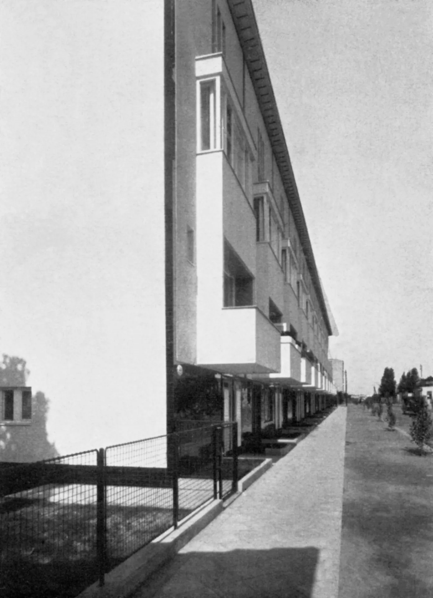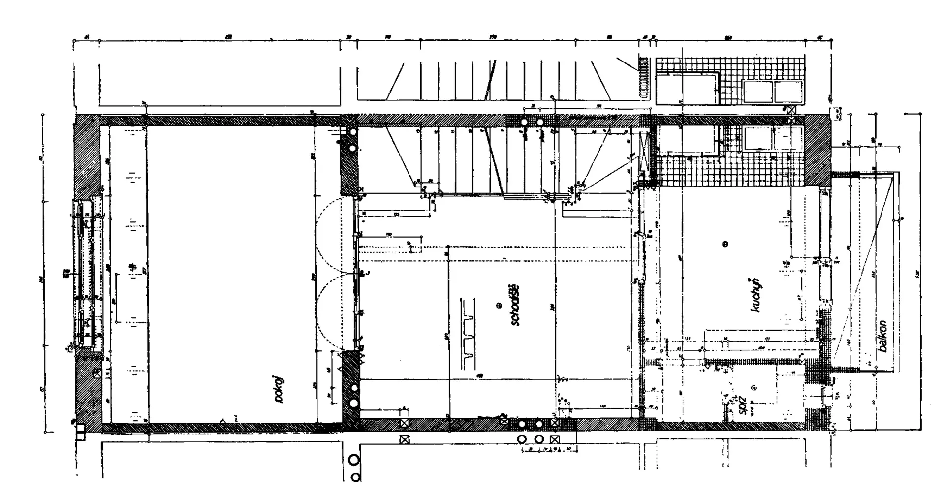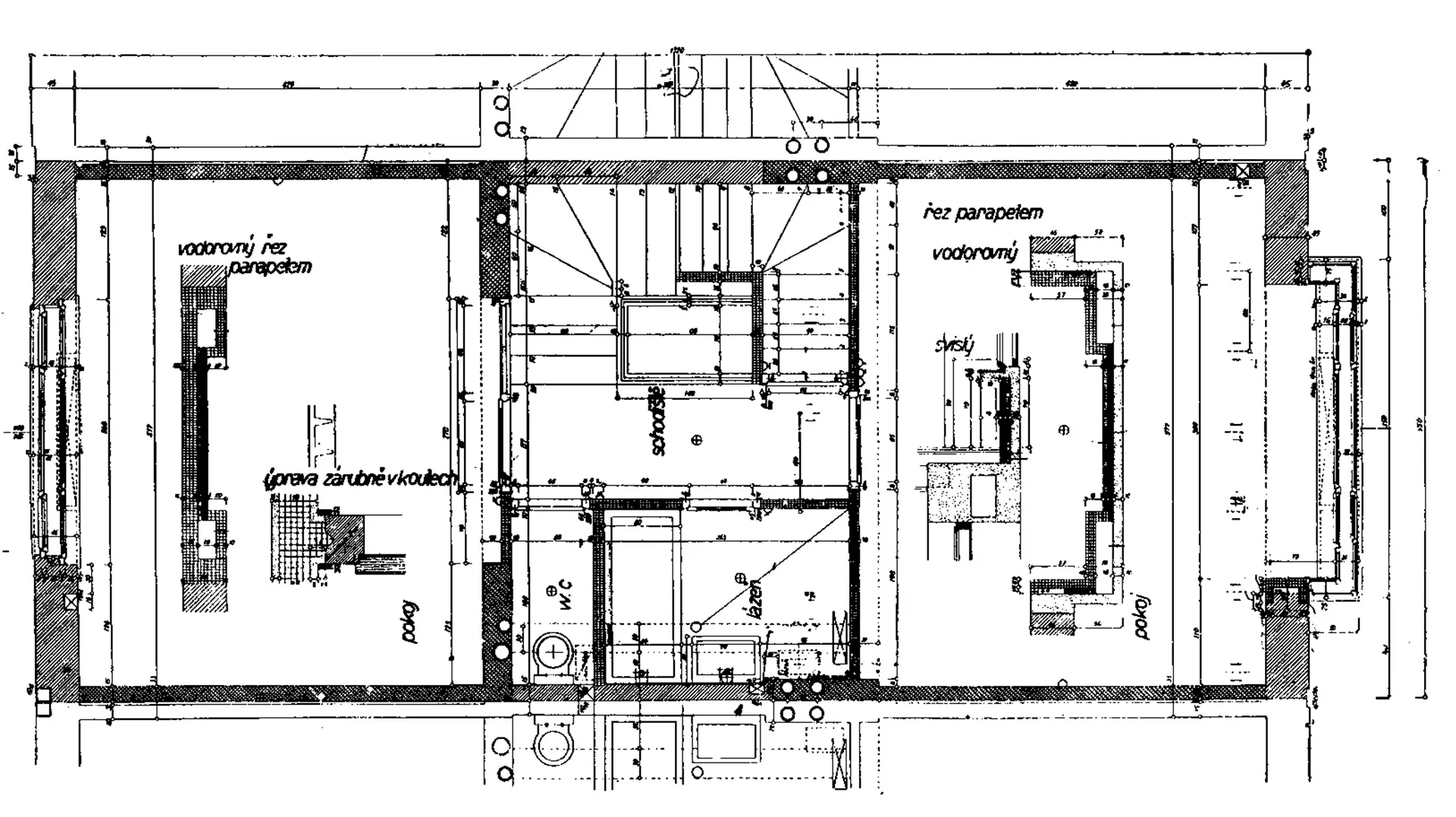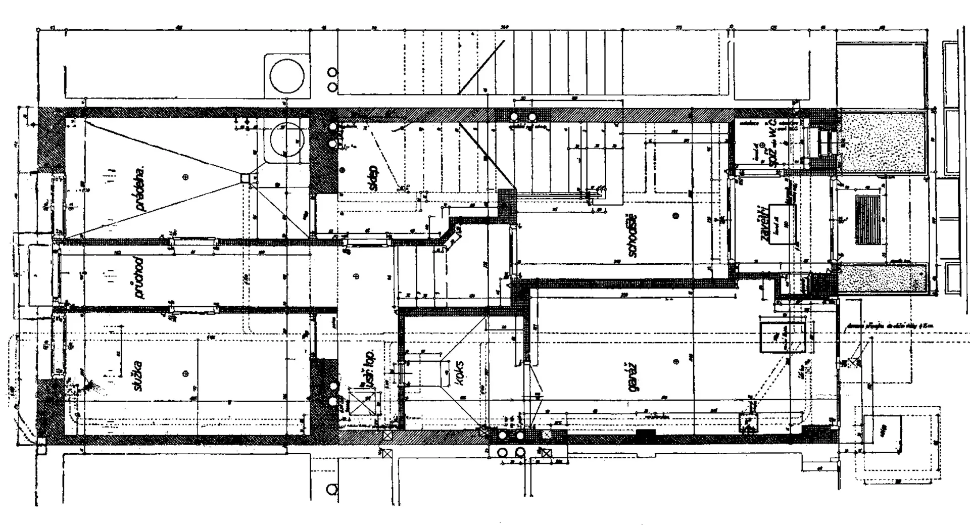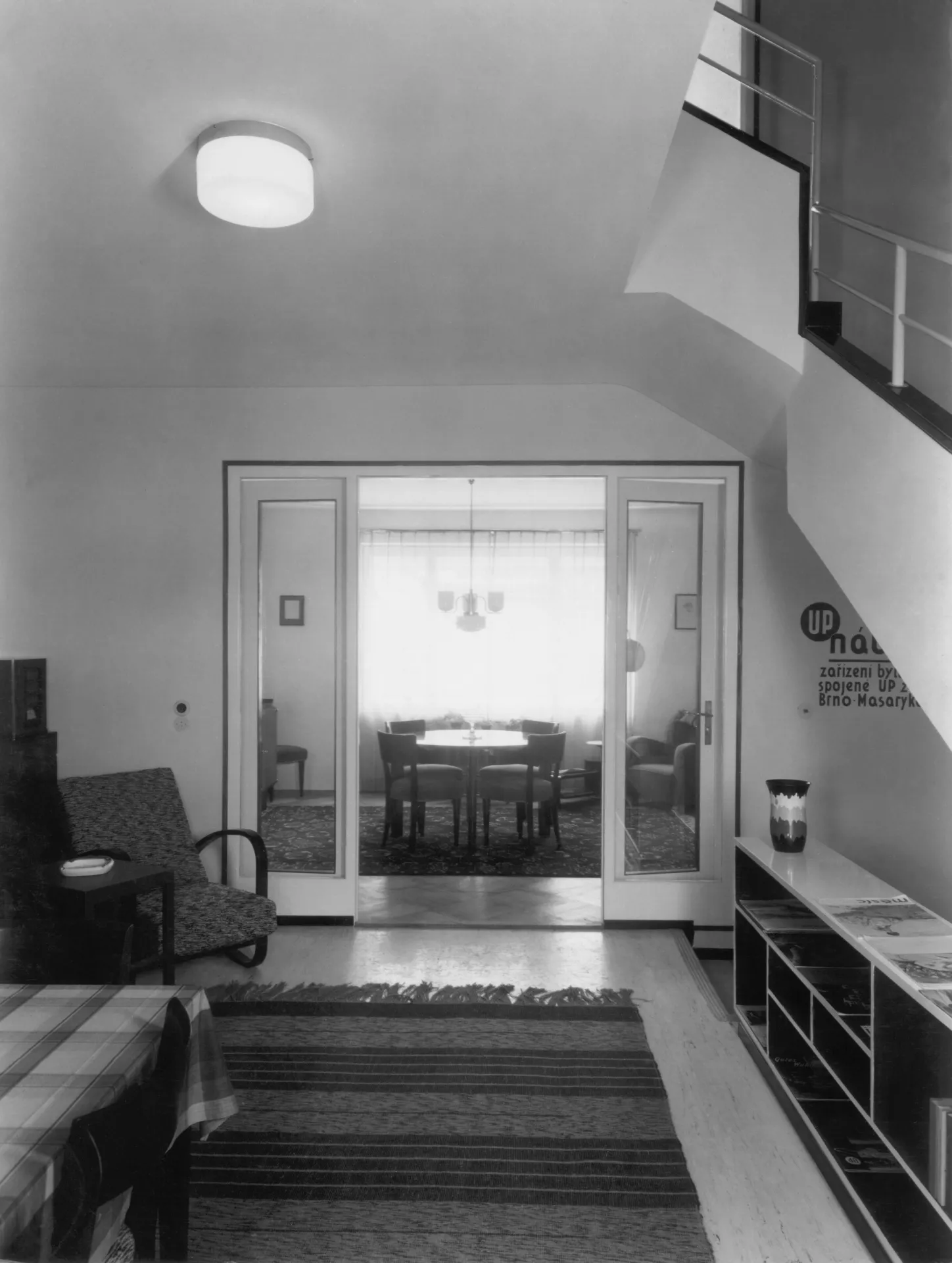 In 1933 the Kuba brothers participated in a nationwide competition to design a small apartment and finished in third place. They presented their concept of "vertical housing," which involved savings in the construction of a small terraced house and which they implemented in a number locations throughout Brno. The houses featured no cellars, as these would have increased the price; the service areas such as garages, boiler rooms, laundries and servant rooms were situated on the ground floor. The first floor housed the kitchen, the hall with a staircase and the living room; the second floor was occupied by bedrooms and sanitary facilities. The attic could be used as a utility area or a guest room leading to the roof terrace. The house featured a deep three-tract layout determined by the small width of the plot, which enabled further savings not only on the purchase of the building area, but also on the maintenance of the facades and sidewalks. In addition, the shared gable walls reduced the extent of building structures and provided for the thermal insulation of neighbouring houses. PH