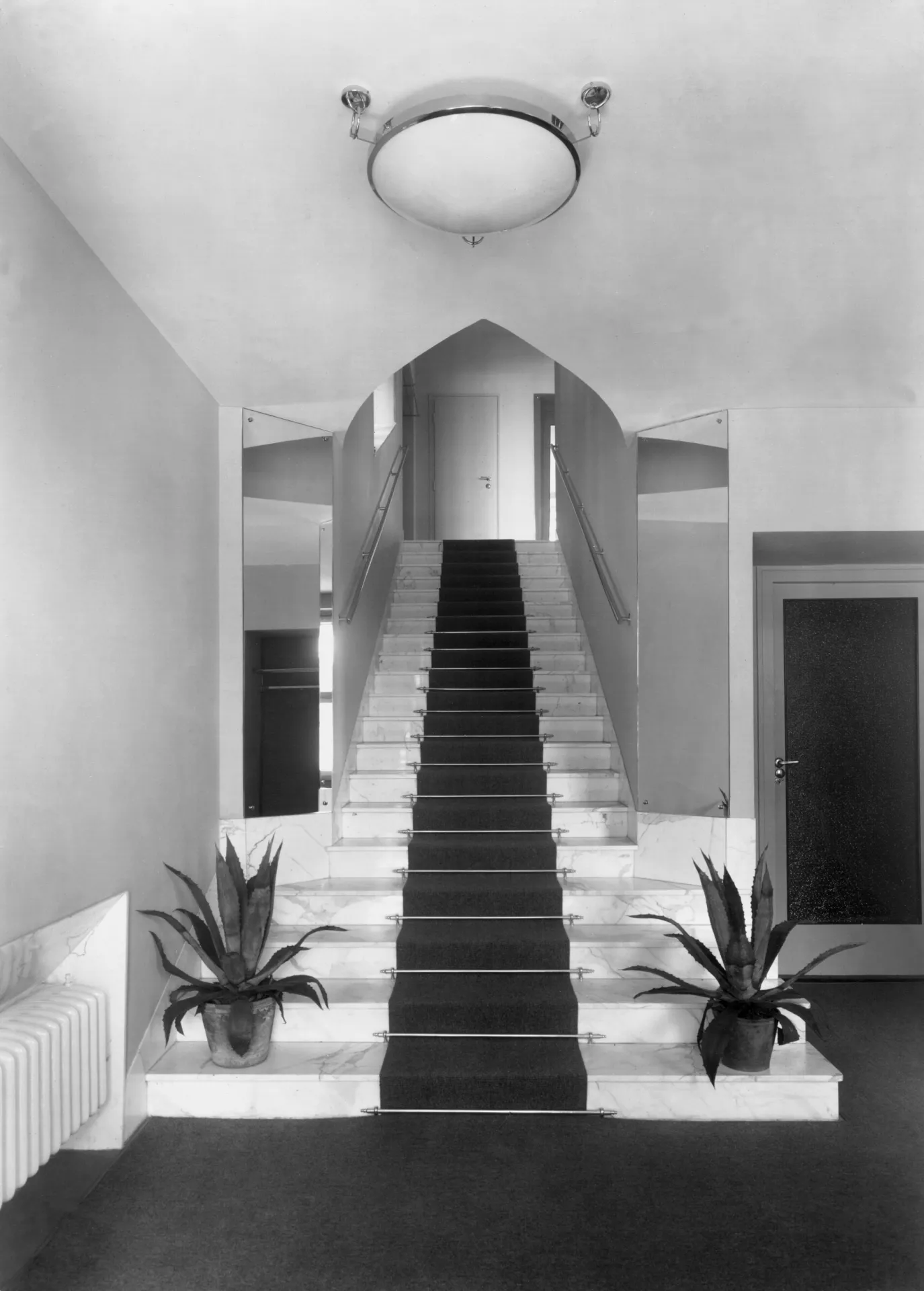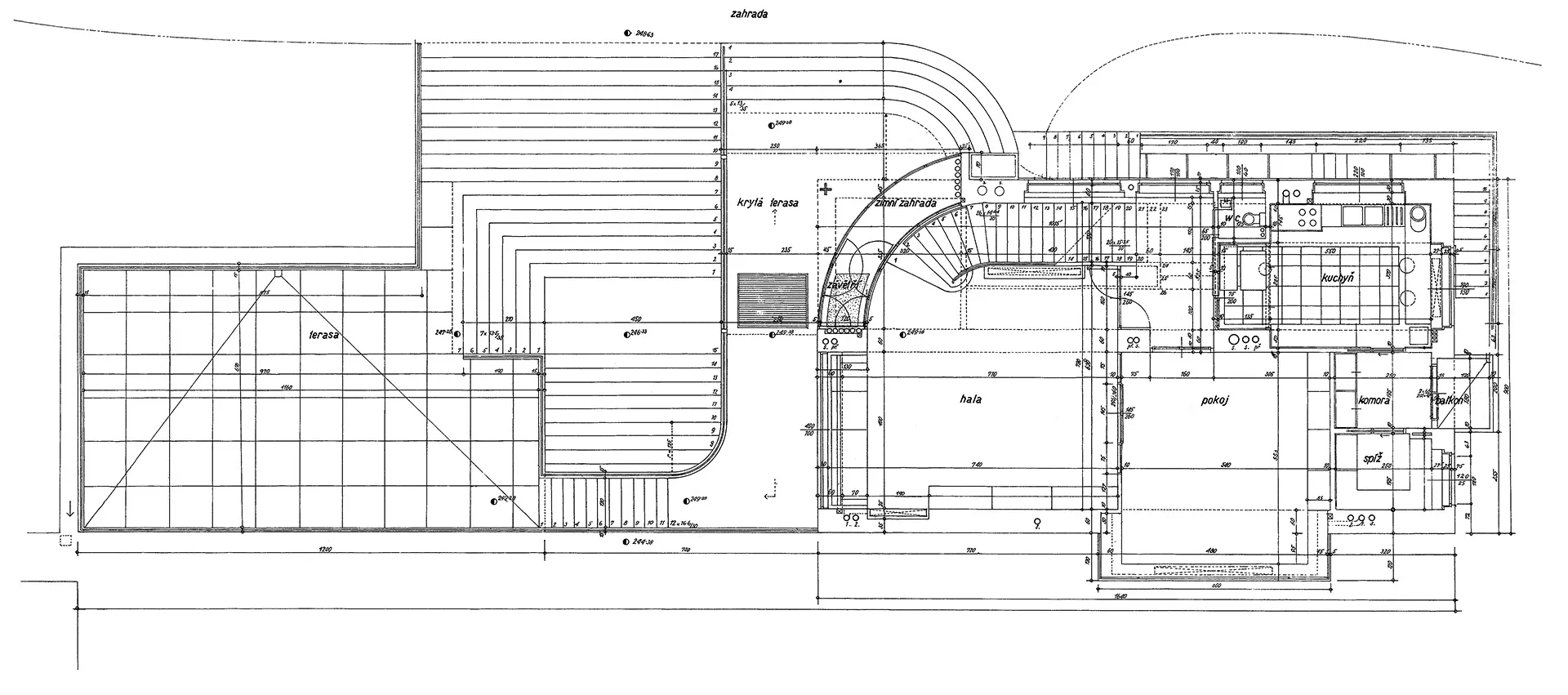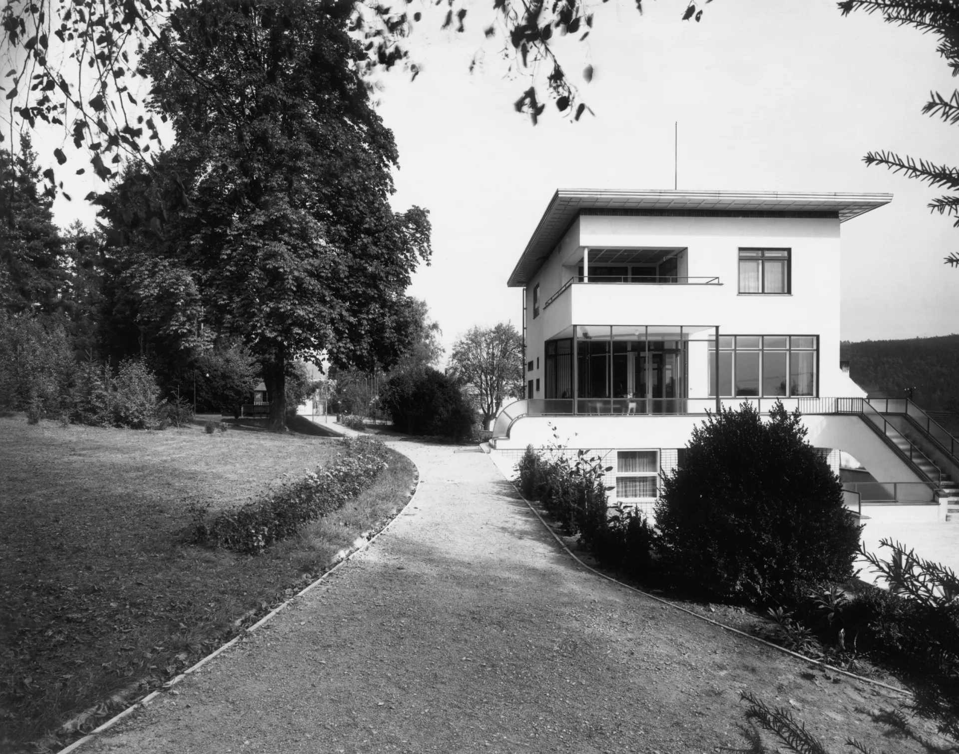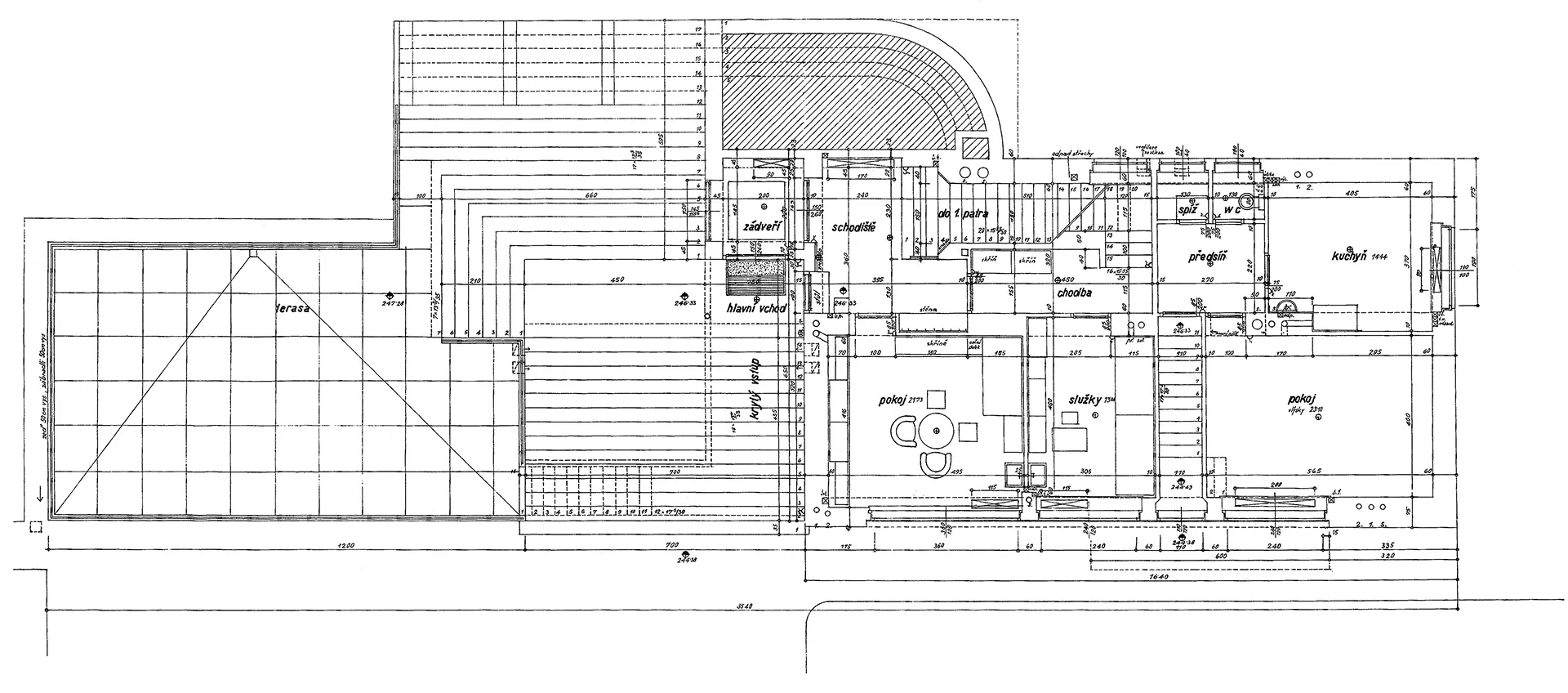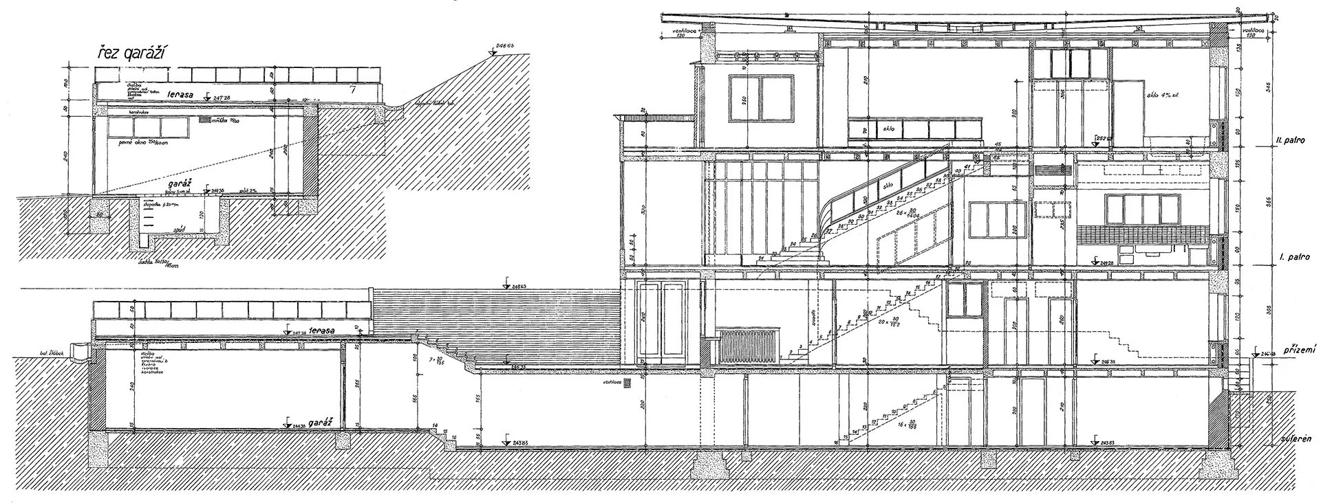 The Kuba brothers' building activities made an enormous contribution to the development of interwar Brno. Alois' entrepreneurial skills and Vilém's designs resulted in the building of several hundred terraced houses and apartment buildings boasting sophisticated architectural and economic concepts. Alois Kuba's villa enjoys a unique position in the context of Vilém's architectural works. This is not only for the villa's generous concept and the volume of financial resources invested, but also the architectural quality of the setting of the structure in the terrain of the garden as well as a number of original details. The two-storey villa is situated on a sloping plot, originally a large garden. The main entrance is sunk below the level of the ground and is accessible via a wide staircase. The prominent curve of another staircase spans this entrance yard and links the house with the terrace on the roof of the garage. The ground floor housed the janitor's apartment and servants' rooms. The staircase in the entrance lounge leads to the hall upstairs lit by the round glazed wall of the conservatory. This is where the living room and kitchen are situated. The bedroom, dressing room and bathroom are located on the top floor with another roofed terrace. The vast basement held service facilities including a central heating boiler room and an air raid shelter. One can marvel at both the technical equipment and some dynamic architectural features such as the ceiling hole for the portal of the staircase on the ground floor or the distinctively protruding cornice. The interior of the house was equipped with furniture designed by the Kuba brothers and manufactured by the UP company of Brno. Held for a short period of time by the Gestapo in 1943, builder Alois Kuba was forced to sell the villa to Edith Piesch, a Brno citizen of German origin, and move to his apartment in Kotlářská Street within one month. (He acquired another villa in Barvičova Street by Mojmír Kyselka shortly thereafter.) After the war the villa was confiscated and served as a healthcare facility. In 1957, a nursery school was set up in the villa; twenty years later it became the headquarters of the StB (State Security). After the revolution, the house was transferred to the City of Brno and its further use is the subject of negotiations. The seriously dilapidated villa was also damaged by the construction of a nearby road. Thanks to efforts in the profession, the villa was finally declared an object of cultural heritage in 2009. PH