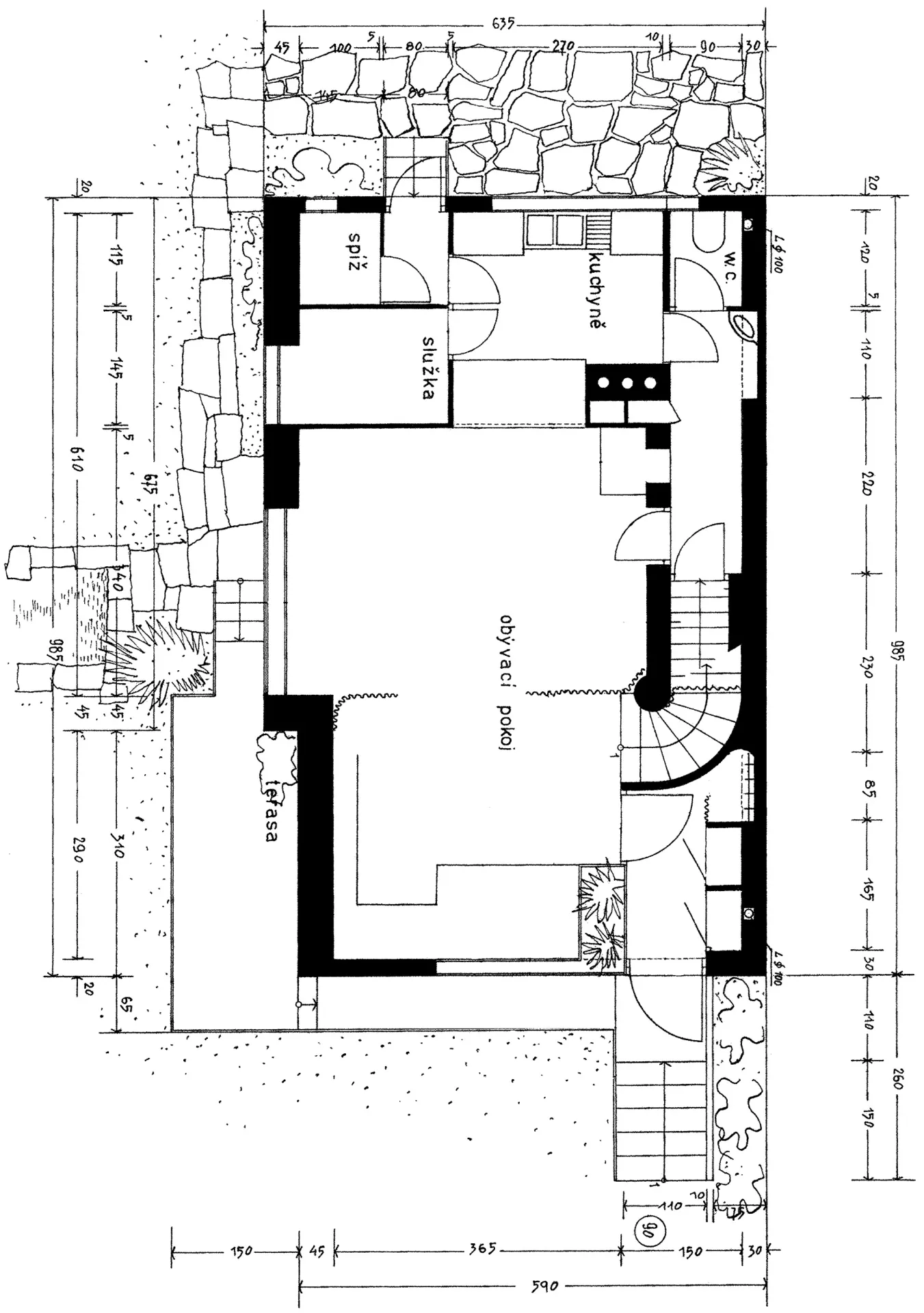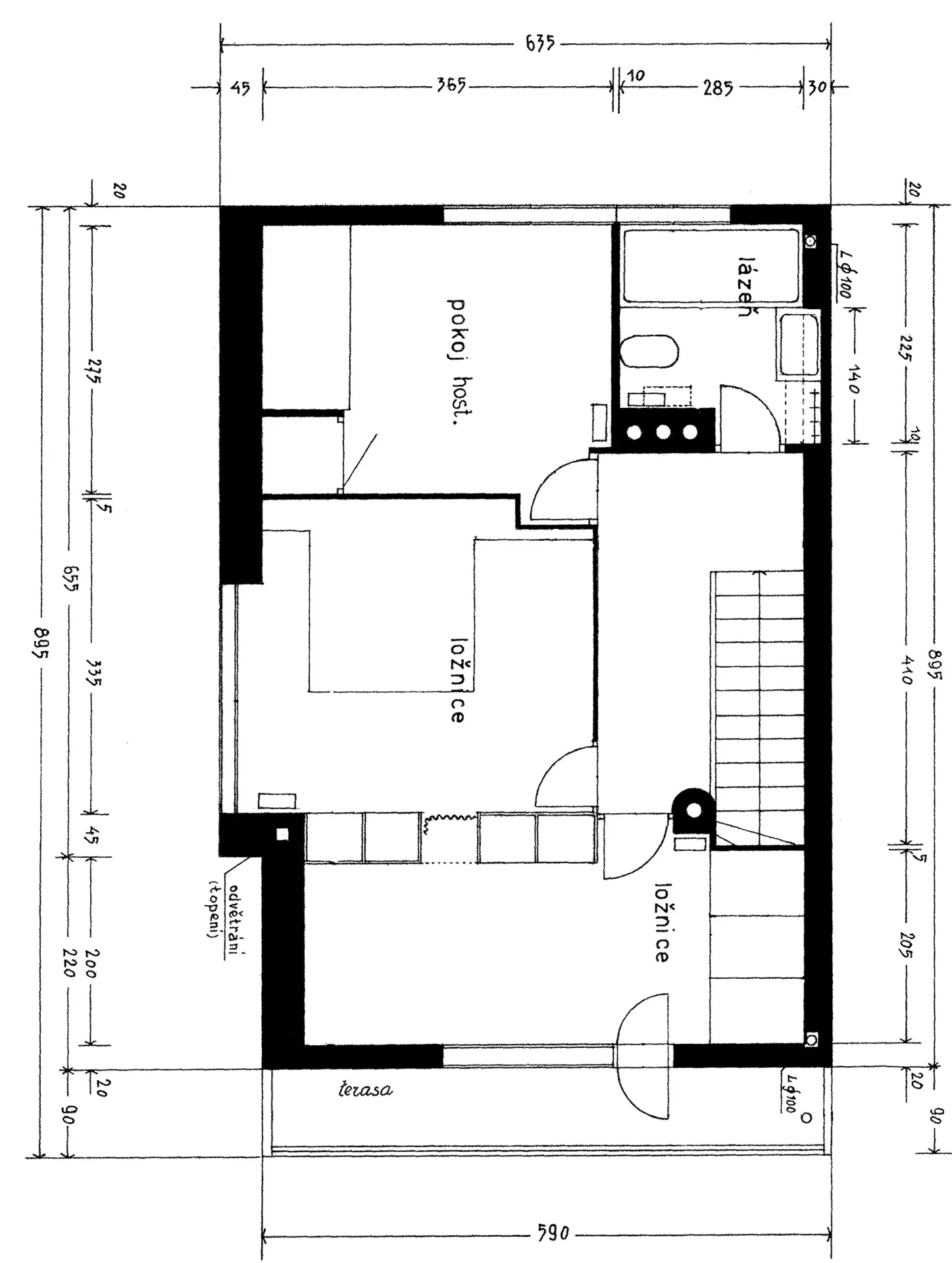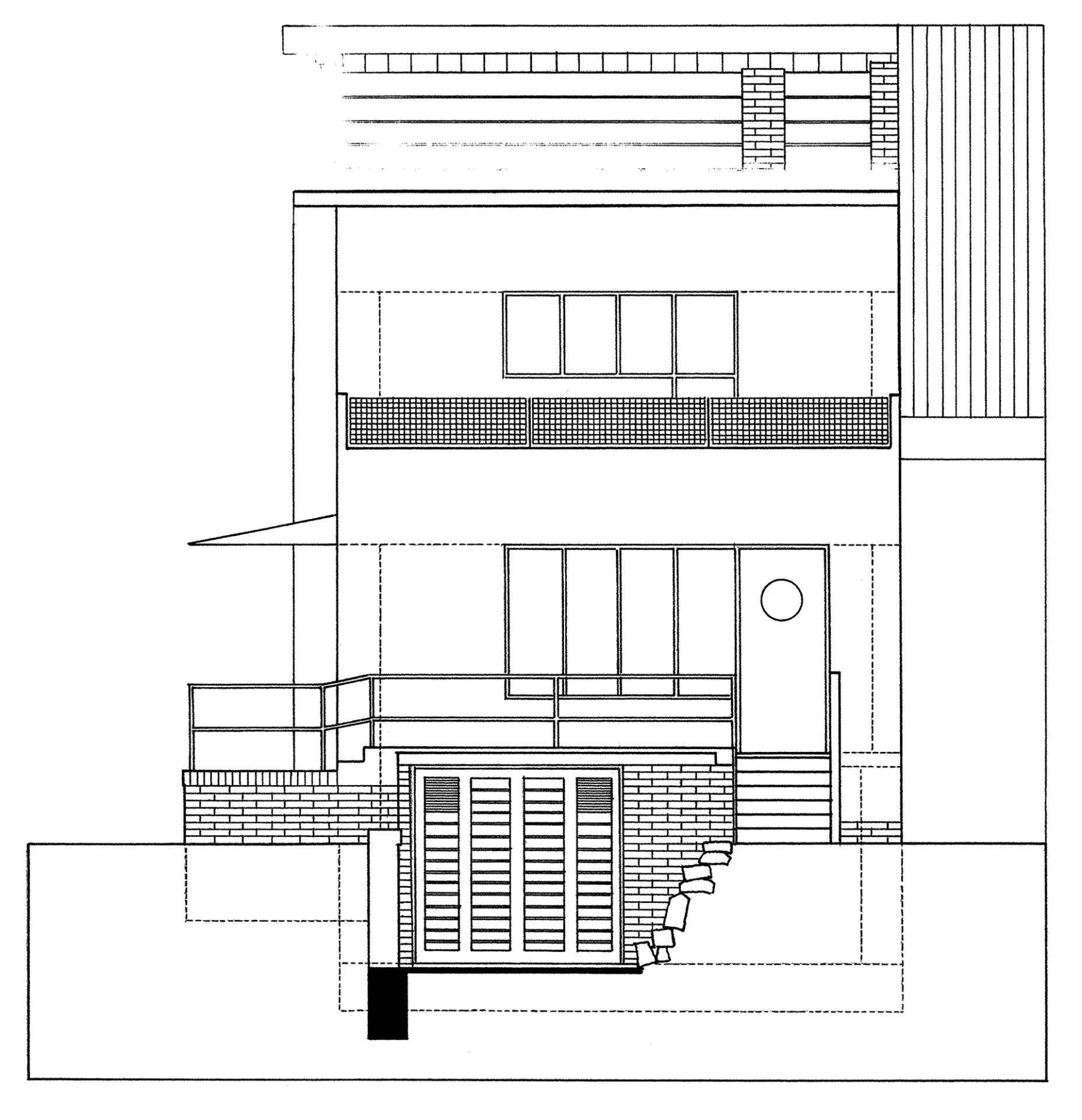 The house designed by Josef Kranz in Pflegrova Street for Ludmila Vařechová-Markesová was built at the same time as the neighbouring villa owned by Karla Ošťádalová, in fact, there originally was no fence separating the two plots. The main entrance to the house is again situated on the raised ground floor, as the basement was occupied by service areas, very much like in the neighbouring villa. The house is accessible via the terrace on the landing reaching as far as the side facade, where it could be shaded by awnings. The entrance leads to a residential hall that also served as a study, dining room as well as living room with large windows looking out on the garden. The first floor housed the guest room and bedroom with a terrace partially covered by the protruding cornice. The living room was decorated by an expressive wall painting by the architect himself; the furnishing also featured pronounced colours with light and dark cork panels, a yellow floor, light ash veneers of the built-in furniture as well as blue upholstery and curtains.
