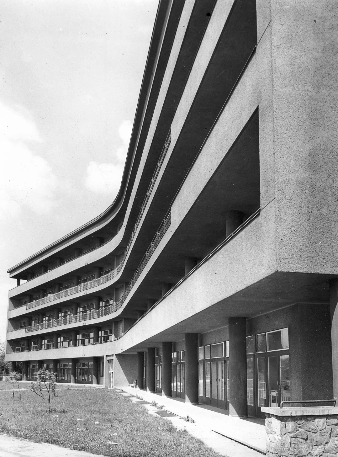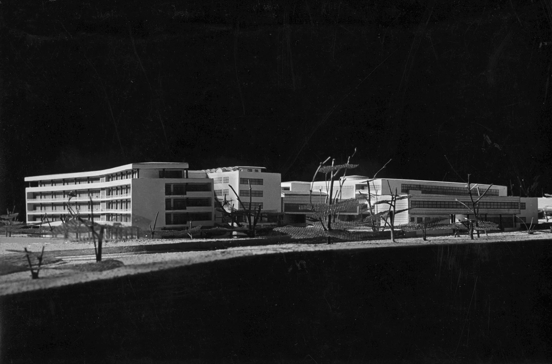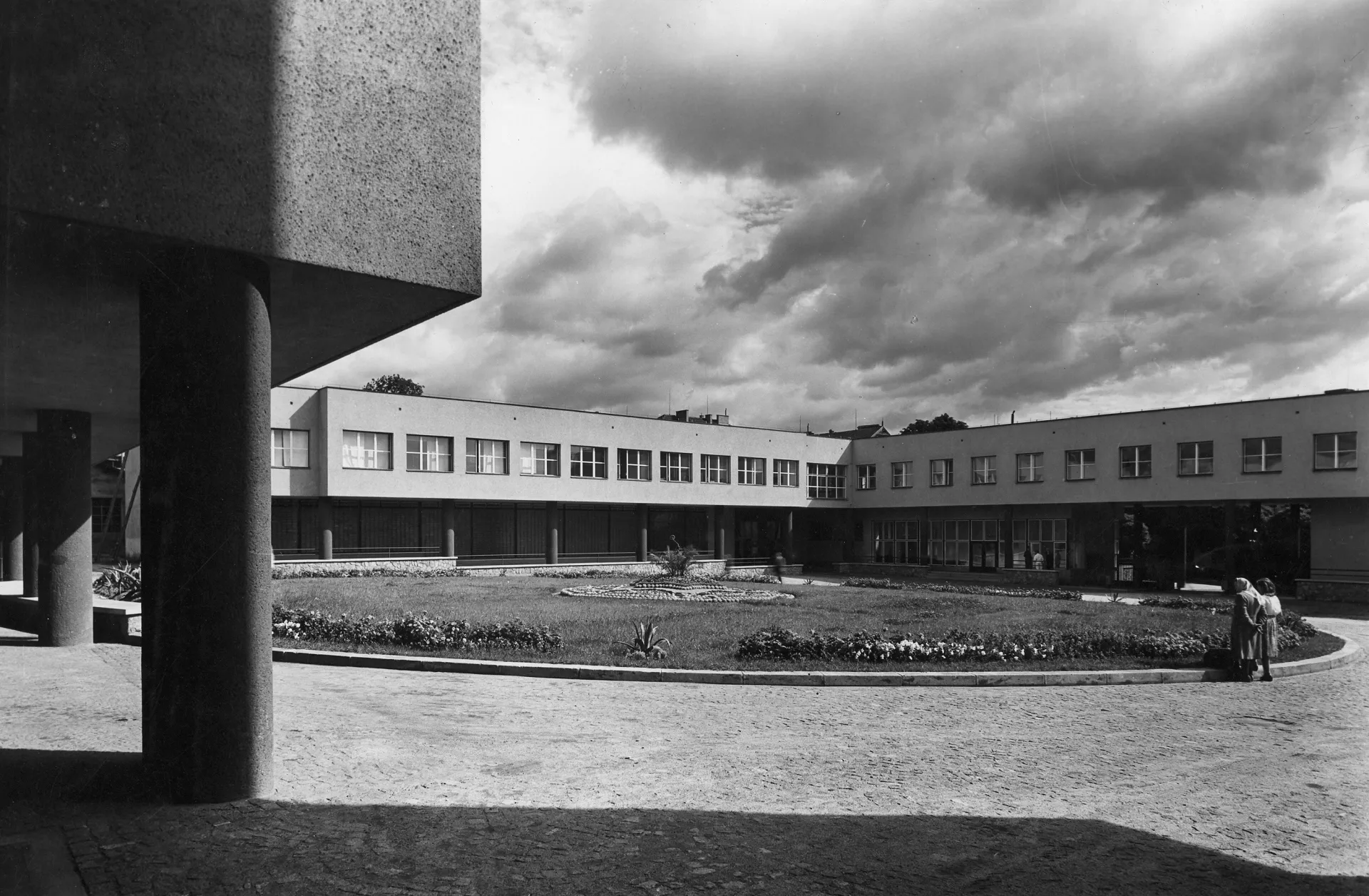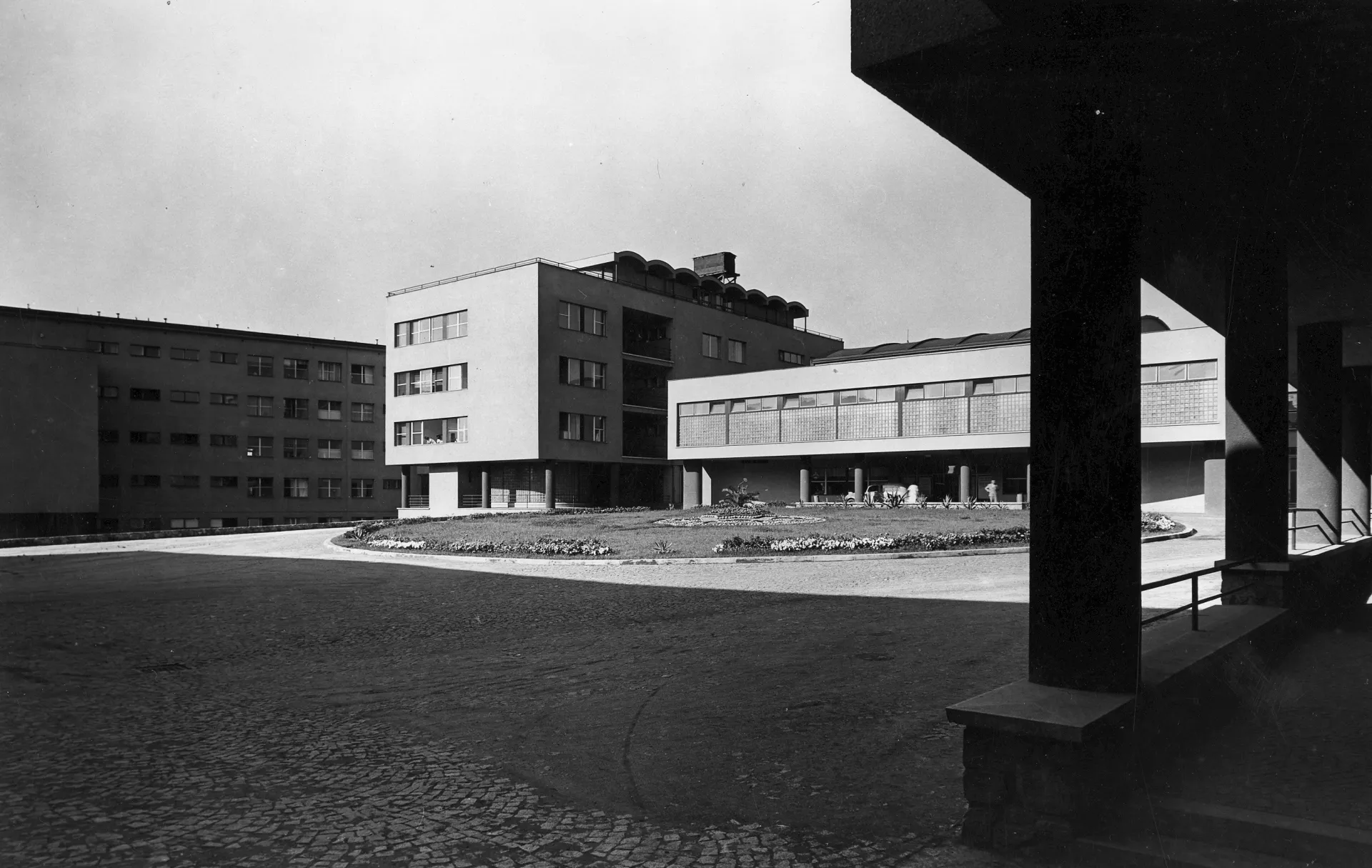 The first specialized hospital for the treatment of children was founded in Vienna in 1787 and inspired similar institutions in other European cities. From 1809, there was a short-lived specialized private clinic in Brno for the paediatric patients of the physician Ernest Karel Rincolini. In 1844, Ferdinand Dworzak appealed to the citizenry of Brno to contribute to the establishing of an association for the common good to create a foundation for a children’s hospital that would primarily treat children from poor families. As a result of his commitment, in 1846, a clinic with twenty-eight beds was established on what is now Kounicova street. Although it was gradually enlarged, its capacity continued to be insufficient, and, in the mid-1890s, a building fund was established for the construction of a new hospital, for which the city donated a large plot of land at the top of Černá Pole hill. Hugo Kranz, Moravia’s head of construction took on responsibility for the architectural design. His design for the children’s hospital was in the form of six specialized pavilions, which were fully electrified and supplied with water from the newly established water pipeline from Březová. The hospital was built in the years 1897–1898, Although the hospital complex served its purpose for sixty years, extensive damage to the buildings at the end of the Second World War and developments in the field of medicine led to the need to build a new hospital. The new concept for a specialised medical clinic for the treatment of children was entrusted to Prof. Otakar Teyschl, director of St. Anne’s University Hospital, Dr. Vladimír Mazal, newly appointed director of the Children’s Hospital, and the architect Bedřich Rozehnal. The architect had specialized in the construction of hospital facilities since the 1920s, and his buildings were to be found throughout Moravia. When designing hospitals, Rozehnal always considered the needs of doctors and consulted with them at length. This form of mutual cooperation led to the creation of top modern medical institutions. With possible future technological developments in mind, Rozehnal also designed buildings in such a way that they could be adapted over time to accommodate new medical equipment. The final concept of the Moravian Children’s Hospital in Brno was approved by the Congress of Paediatricians in 1948, initiating the first phase of construction on the new complex. The old hospital would continue function during this time. Rozehnal departed from the pavilion design that was usual for that time in favour of a more modern block design, which functionally connected the individual specialized departments. The first building to emerge was the economic and administrative wing. In the next phase, up to the year 1953, the central entrance hall with glass ceiling (now Teyschlova Hall), and wings for out-patients, operations and in-patient wards were built, which were interconnected. The dominant feature of the complex is the six-storey block with wards for in-patients with a Y-shaped floor plan and continuous terraces oriented towards south-western city skyline, which shows a marked influence of Le Corbusier. The terraces, with their procession of huge columns, were used for giving patients exposure to the sun and fresh air, which was supposedly beneficial for the mental well-being of the children. In this sense, Rozehnal’s intention was for the hospital and its architecture to motivate the patient to recover. Thus, in the early 1950s, the Children’s Hospital became the final functionalist building in Brno, when the official politically prescribed style was already socialist realism. Its aesthetic design and well-thought-out concept, which Bedřich Rozehnal elaborated in the book Cesta k řešení nemocniční otázky města Brna. Projekty zemské klinické nemocnice a státní oblastní dětské nemocnice v Brně [Solving Brno’s Hospital Problem. Designs for the Moravian Clinical Hospital and the State Regional Children's Hospital in Brno] (Brno 1949) was soon acknowledged by architectural professionals around the world, including Le Corbusier himself. Construction was supposed to follow in subsequent years with facilities for internal medicine and an infectious disease clinic, but Rozehnal’s project was not implemented. It was reworked in the early 1960s by Karel Volavý and Eduard Říha, when Rozehnal was politically persecuted and imprisoned. On the basis of Rozehnal’s overall plan, they designed the building for the 2nd Department of Pathological Anatomy. After the Velvet Revolution, with the further development of medical technology and methods, and thanks to support from Olga and Václav Havel, the Children’s Hospital complex was extended, partly realizing Rozehnal’s idea for ​​a comprehensive medical care centre. The design of the new Pavilion F was drawn up by the Tuffy architectural studio under the direction of Zdeněk Jánský and was built in two phases. In the years 1994–1996, building F was constructed for intensive care medicine, and in the period 1996–2001, building G was built for a paediatric internal medicine, oncology, radiology and other departments. During this period, the almost fifty-year-old buildings Rozehnal designed were also renovated. LV