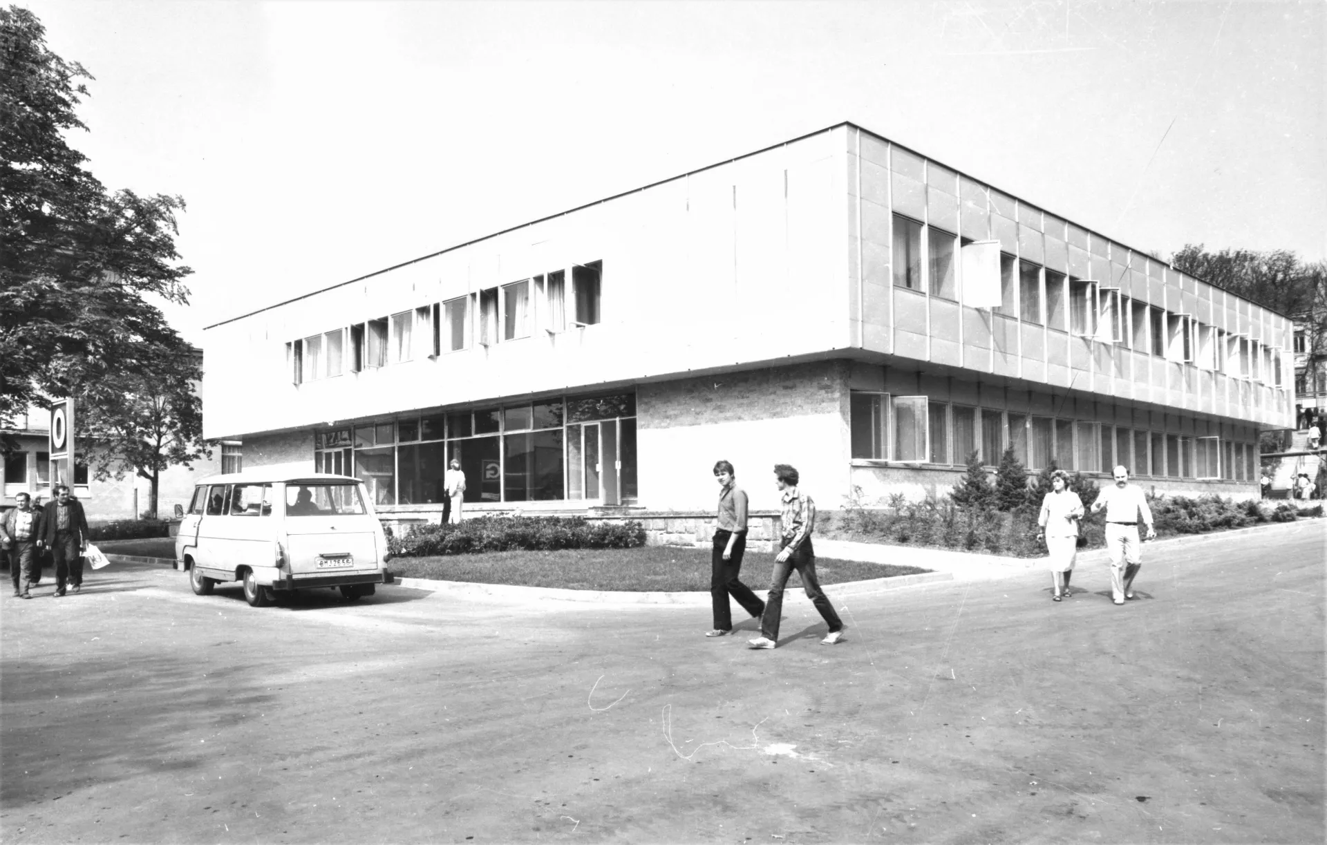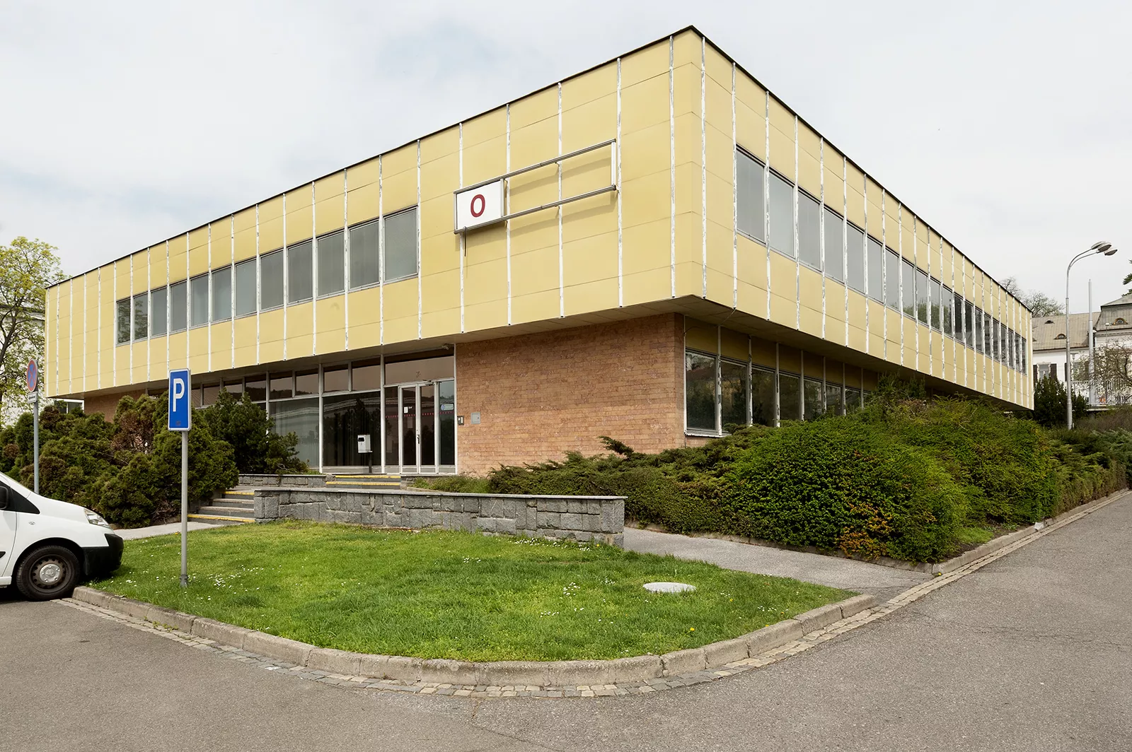 Pavilion O is more of an administrative building than an exhibition pavilion. It was built in the years 1981–1982 between pavilions G and H to a design by Jaroslav Hotárek and Jaroslav Šmerek. The new building was designed to be a press centre and serve the needs of radio, television and film. It replaced the original National Unity Pavilion by Bohuslav Fuchs from 1928. That building was demolished, as its architectural quality had been degraded by the insensitive addition of a wooden extension from a Czechoslovak exhibition in Jakarta. The construction of Pavilion O was carried out very quickly thanks to an extraordinary allocation of unused construction funds from the Ministry of Foreign Trade. The square two-storey building has a large entrance hall and a grand staircase that leads to the administrative areas. The spaces in the centre of the building do not have any natural light and are used for conferences and meetings. The frame and the outer shell are comprised of the KORD typological system manufactured by the company Rudé doly Jeseník. The building is now used by the IT department of Brno Exhibition Centre and several of its external collaborators. BB