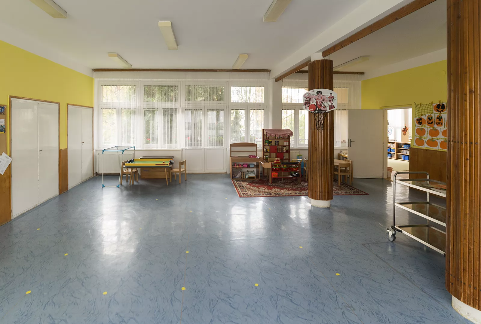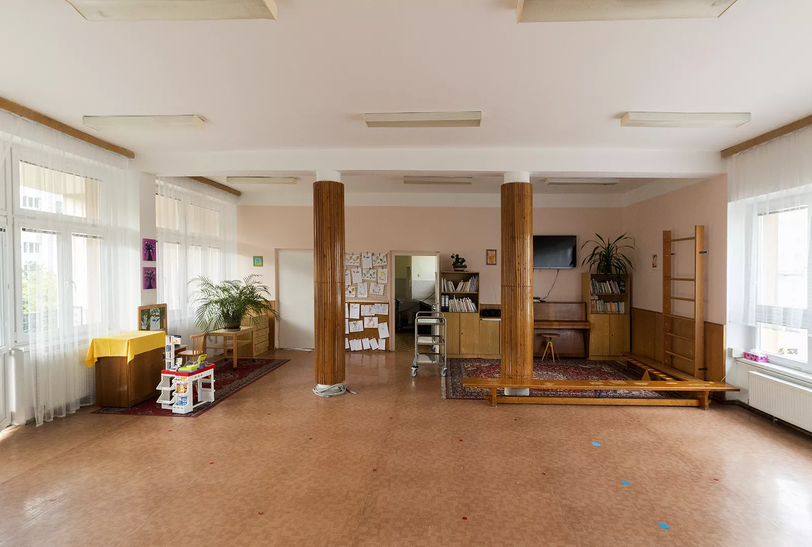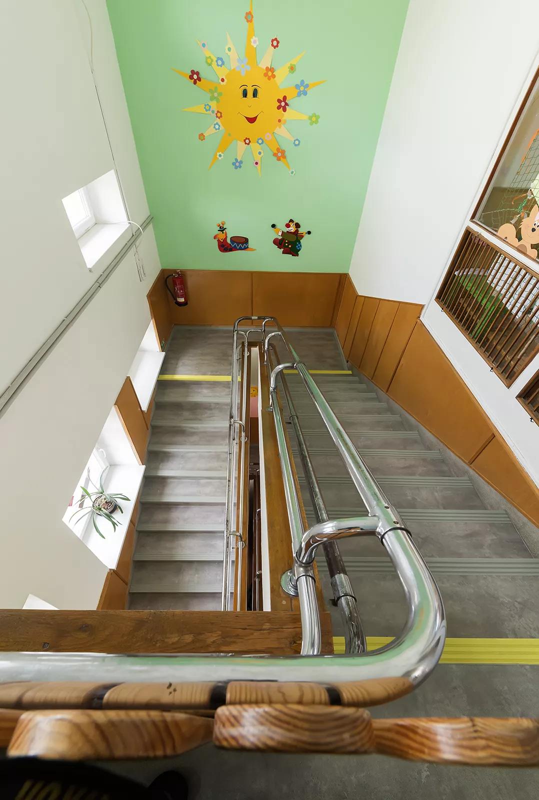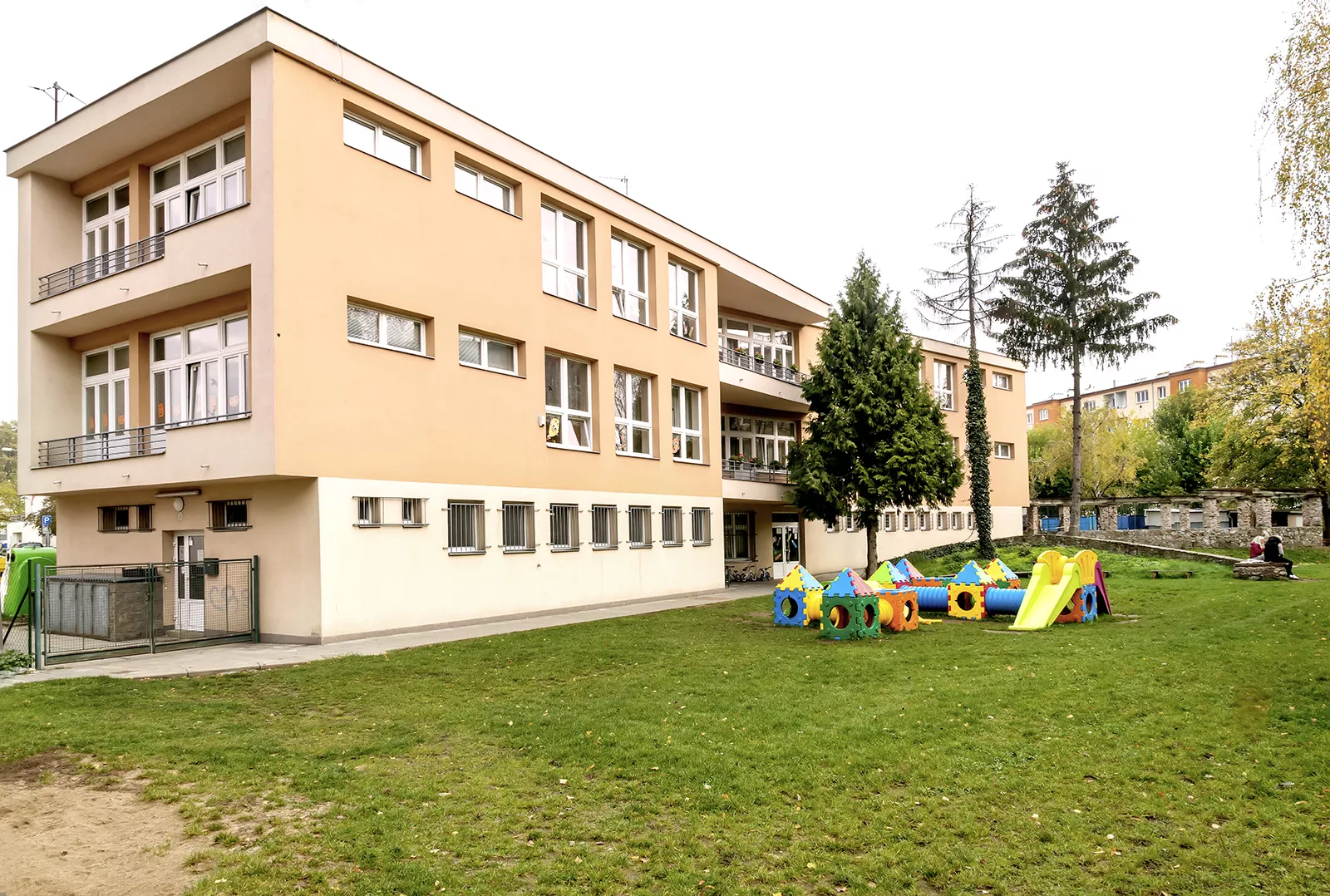 In the post-war period, Brno experienced a boom in the construction of school facilities, and this was closely associated with the city’s functionalist tradition and the theoretical ideas on which it was based. The building of new nursery and primary schools was largely driven by the construction of new housing estate complexes. Although there was a certain form of standardisation with regard to these buildings, many quality examples can be found among the designs of the 1960s. One of them is the Líza Čajkinová nursery school, which was designed by the architect Miroslav Dufek, who was a student of Bohuslav Fuchs and Bedřich Rozehnal. The two-storey building of the nursery school on Nádvorní street, designed to resemble a free-standing villa in a garden, was intended for 120 children and was divided into 4 four separate sections. The school was named in honour of the reknowned Soviet partisan and heroine Líza Čajkinová (Liza Chaikina). The entrance area includes a hall with changing rooms and administrative offices and overlooks the neighbouring Bohuslav Fuchs primary school building. In the central area, on both floors, there are common play areas which extend out onto covered terraces. These lie at the intersection of the two wings of the building, which meet and form an obtuse angle. The loggias on the side facades of the building illuminate the interior spaces of the children’s sleeping rooms in each section and create a pleasant mediating element between the interior and the exterior. The nursery school was able to offer pupils above-average facilities, which included a sauna and a puppet-theatre playroom. During outdoor activities, pupils were able to make use of the spacious garden and a paddling pool. Although the exterior of the building was recently clad with thermal insulation and its wooden windows exchanged for plastic replacements, the building still retains its original distinctive expression. LH