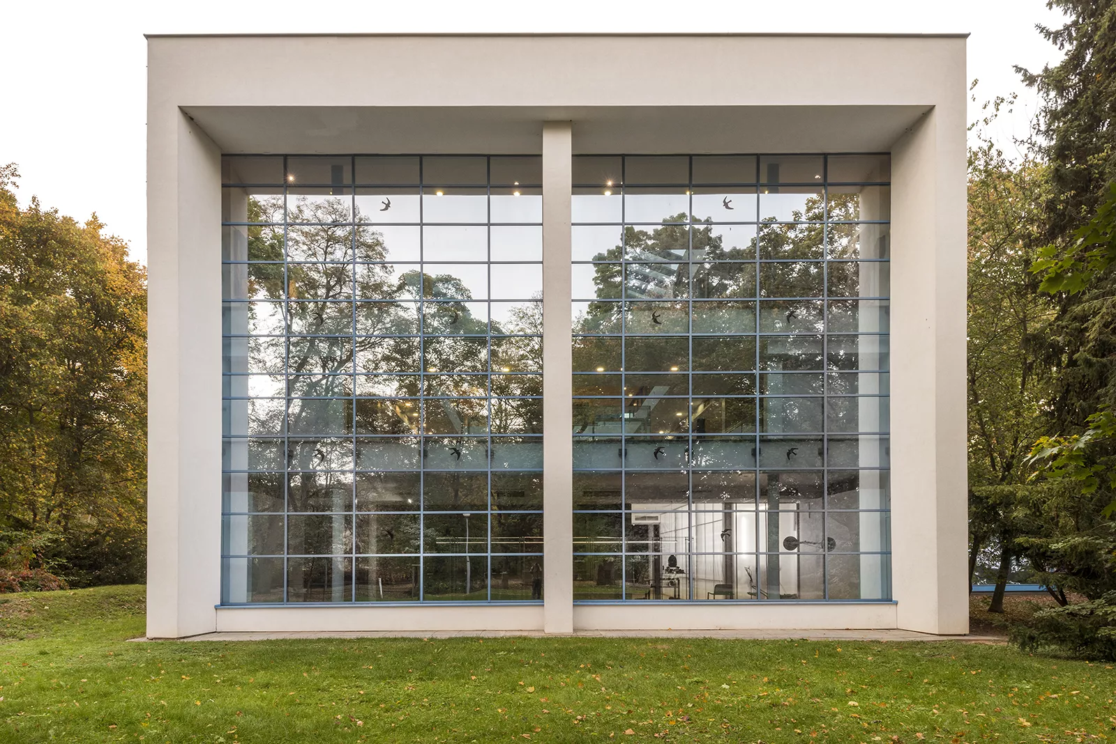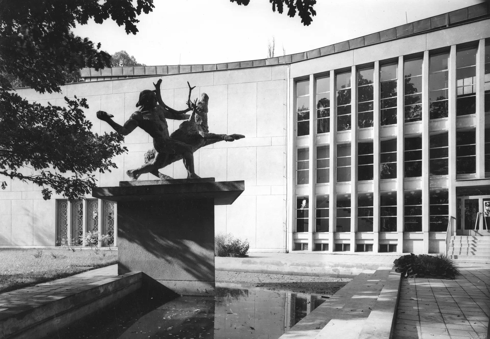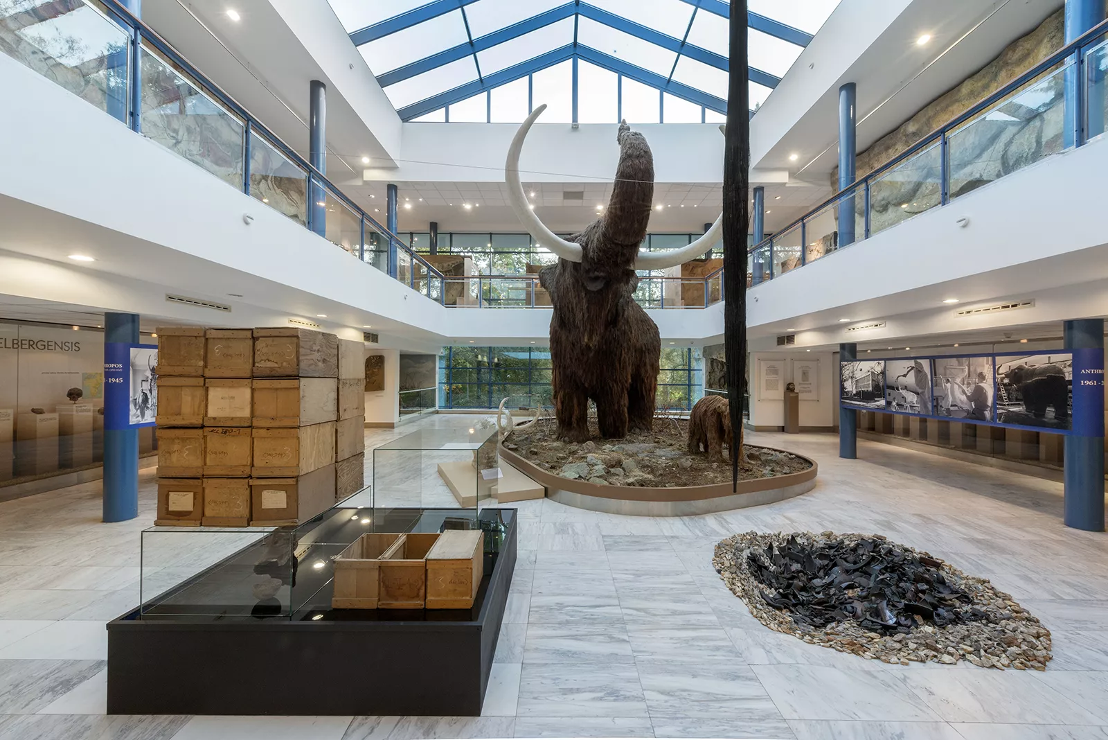 The main impetus behind the construction of the new Anthropos museum building was the prominent Czech anthropologist and museologist Jan Jelínek. At that time, he was director of the Moravian Museum and wanted to continue the First Republic research and collection of Karel Absolon and his Man and his Ancestry Pavilion, which was destroyed during the Second World War. The earlier pavilion opened in 1928 as part the Exhibition of Contemporary Culture at Brno Exhibition Centre and there it continued as the first Palaeolithic museum in Czechoslovakia up until 1945. Karel Absolon had managed to acquire an extraordinarily wide ranging and precious collection of artefacts and anthropological replicas, most probably the largest of its kind in Central Europe. The neo-functionalist Anthropos Pavilion in Pisárky Park was built between 1956 and 1958 to a design by the Brno architect Evžen Šteflíček (a pupil of Jiří Kroha, who along with Absolon designed the original pavilion at the exhibition centre). The pavilion was constructed as part of ‘Initiative Z’ and it was not fully completed until 1962. However, the first exhibition entitled The Rock Painting Art of Primitive Society opened to the public in 1961. It was followed by a series of exhibitions presenting the earliest history of settlement in Moravia and Europe. The basic structure of the pavilion was a reinforced concrete skeleton, consisting of thirty-eight pillars and sixty-eight iron columns within the building. The floor plan was sharp-angled with a round double-flight staircase in the middle. The original, almost fully glazed front and rear facades were divided by a regular vertical pattern of subtle pillars. The individual floors intertwined with the galleries, which made it possible to place the main exhibit, a life-size mammoth that was the work of Jan Jelínek and Brno sculptor Zdeněk Macháček, in the central glazed hall of the building. The mammoth was based on an older version from 1928, which was presented by Karel Absolon at the original pavilion in Brno Exhibition Centre and was destroyed by the Red Army at the end of the Second World War. In addition to exhibition spaces, the new Anthropos Pavilion had other museum facilities, such as storerooms, a depository, an archive and offices. Initially, Anthropos had limited year-round functionality because of its technical shortcomings, such as problems associated with heating the glazed building, and therefore had to undergo a series of repairs in the 1990s. In the years 2003–2006, it underwent a complete reconstruction based on a design elaborated by the architect Dagmar Kubeláčková. Her design, inspired by postmodernism, significantly changed the original character of the building, especially the front facade and the rear glazed facade. As a result of the reconstruction, the sculpture Lovec sobů [Reindeer Hunter] by Antonín Širůček from 1961, which had originally stood at the entrance to the pavilion, was moved further into Pisárky Park. This modernization led to the creation of new exhibition spaces with appropriate climatic conditions for the exhibits, a lecture hall in a 3rd floor extension, and a café and amenities for visitors. This modern institution with its collection and exhibition is part of the Moravian Museum and focuses not only on presenting archaeological finds from the Paleolithic period, but also on interdisciplinary projects in the field of cultural anthropology and ethnology.