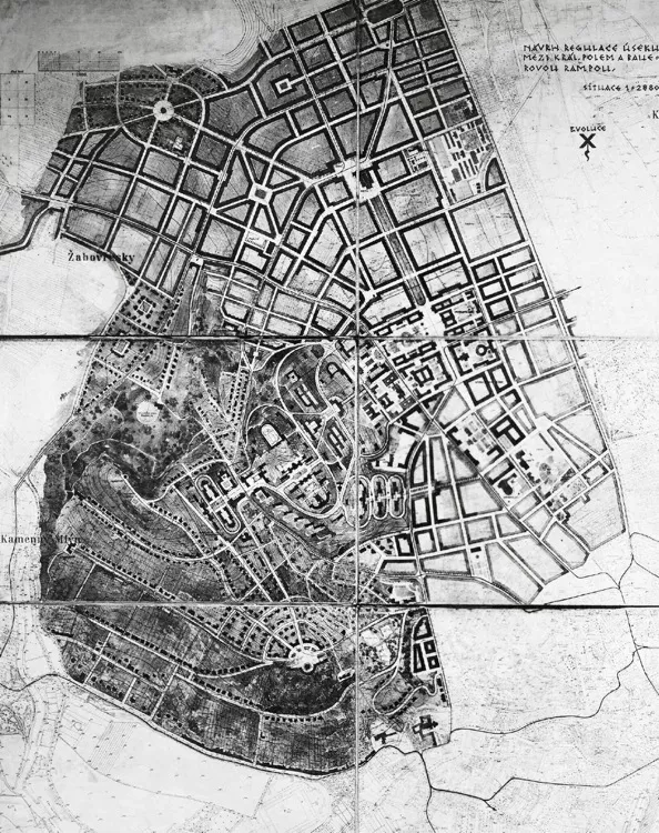 A continuous residential district formed in this area from the mid-19th century on. The prevailing apartment buildings and public buildings changed both high streets and their surroundings into respectable avenues. The stretch between present-day Moravské Square and Lužánky Park is where the housing development copied Lidická Street. The surroundings of Veveří Street then contain a network of streets spreading as far as the Tivoli apartment complex (present-day Jiráskova Street), which, together with the adjacent facilities of the Czech University of Technology, represented the very edge of the city.