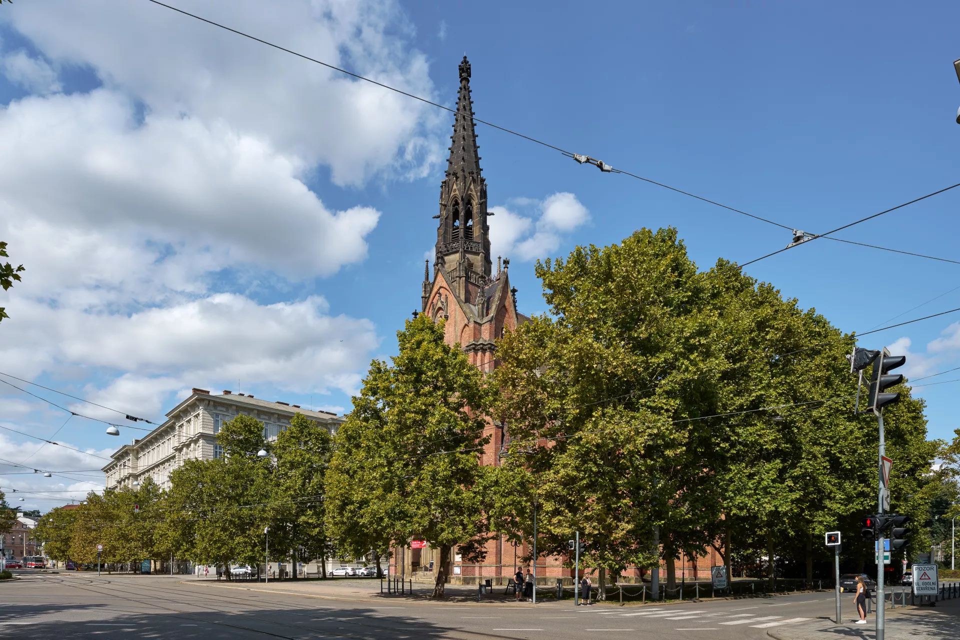 Českobratrský evangelický chrám Jana Amose Komenského, jeden nejstarších velkých evangelických chrámů vně protestantské Evropy byl postaven v letech 1863‒1867 podle návrhu vídeňského architekta Heinricha von Ferstla pro členy německého luterského sboru v Brně. Původně nesl název Christuskirche (Kristův kostel).