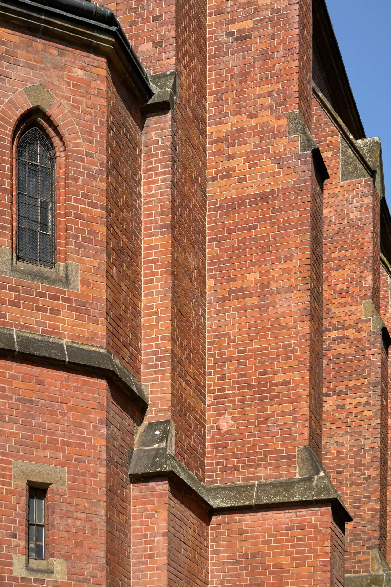 Na stavbě se společně podílela počtená skupina vídeňských a brněnských řemeslníků. Stavbu provedl stavitel Moriz Kellner von Brünnheim, další stavitel, Franz Thannabauer vykonával stavební dozor. Na stavbě se podíleli vídeňští umělci sochař Franz X. Schönhalter, malíř Ferdinand Laufberger (namaloval oltářní obraz Krista), kamenosochař Johann Lang (zhotovil oltář a mramorovou kazatelnu se symboly čtyř evangelistů), výrobce vitráží Karl Geyling, varhanář Hörliger, mnichovský hodinář Johann M. Mannhardt a brněnský umělecký zámečník Nowitzky. Ferdinand Laufberger, oltář a mramorová kazatelna se symboly