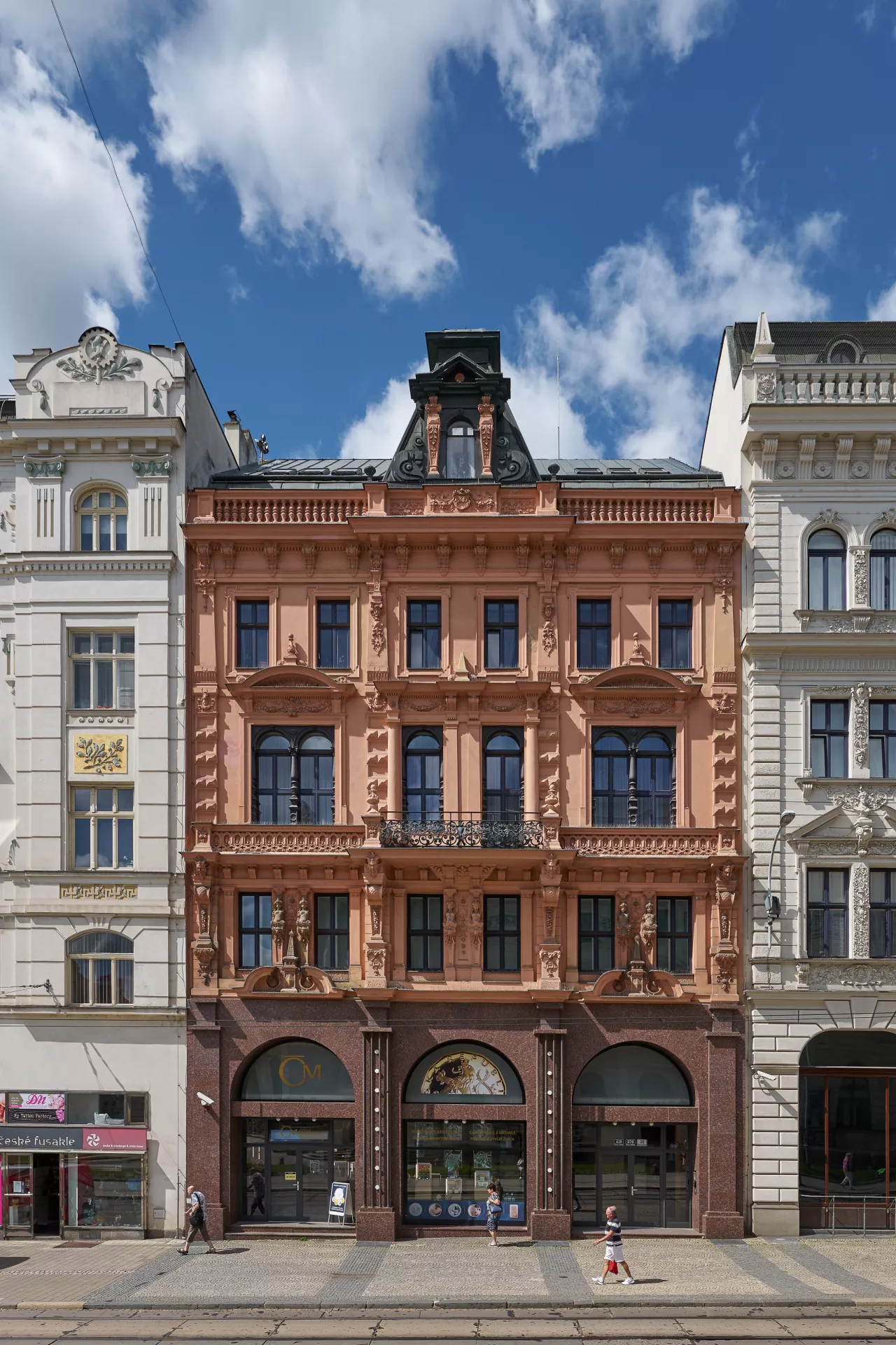 Stavební blok vymezený dnešními ulicemi Rooseveltova a Sukova získal svou nynější podobu na samotném konci 19. století, kdy na Sukově ještě stála řádka malých domků sledujících průběh dřívější hradby, a blok utvářel jen jeden větší dům neznámé podoby. Naproti v parku Koliště bylo v roce 1882 otevřeno divadlo od vídeňské dvojice Fellner&Helmer, což výstavbu nejbližšího okolí značně podnítilo. Pozemek zde získal stavitel Johann Zoufal a podle návrhu Germana Wanderleye v letech 1888–1889 jako výhodnou investici postavil nájemní dům. Až po několika letech na něj navázaly Baumannův dům zvaný Včelín a Hypoteční a zemědělská banka od Antonína Tebicha, která blok uzavřela od severu. Hned po dostavbě v listopadu 1889 v domě otevřela restaurace Johanna Huttera nabízející, vyjma čerstvé kuchyně za přiměřené ceny, rakouská a maďarská vína nebo pivo ze Starého Plzence. Vzhledem k situování naproti divadlu si klientelu jistě našla. Už v roce 1895 se dům nacházel v majetku obchodníka s kůžemi Maxe Schimetschka a postupně se stává bydlištěm zejména židovských rodin z vyšší společenské třídy. V roce 1900 zde žila rodina vlnařského továrníka Viktora Hechta nebo advokáta Phillipa Ellingera. Nejpozději v roce 1921 dům vlastnil zakladatel a provozovatel prvních brněnských kin Dominik Morgenstern. V té době v domě sídlila banka pro pivovarnický průmysl a nábytkářská firma Gustava Reichnera. Po druhé světové válce dům připadl státu, dnes je v majetku České národní banky. Zkušený architekt a profesor brněnské německé průmyslovky Germano Wanderley nájemní dům Johanna Zoufala, s kterým často spolupracoval, navrhl ve stylu pozdního historismu. Na přízemí otevřené trojicí oblouků navazují další tři podlaží, z nichž každé definuje odlišné architektonické členění. První patro zaplňuje až téměř přehršel dekorem obalených konzol a volut vynášejících kordonovou římsu oddělující hlavní druhé podlaží. To se do ulice otevírá obloukovými okny ve vyřezávaných rámech, ústřední osa zahrnuje balkon s novobarokní rokajovou mříží. Ačkoliv je poslední podlaží výzdobou nejstřízlivější, přesto i zde zůstalo minimum ploch nepojednaných štukovou výzdobou. Hlavní římsu v ústřední ose završuje oplechovaný vikýř, pod kterým se mezi festony nachází letopočet 1889 poukazující na dokončení domu. Přízemí bylo původně přepásáno hmotnou nepravou bosáží, v letech 1995–1998 nahrazenou obkladem z leštěné červené žuly. Adaptaci domu na součást ČNB provedli architekti Zdeněk Žilka, Jan Němec a Ivo Bílý v sebejisté bankovní architektuře 90. let – kromě úpravy fasád přízemí byl zcela přestavěn interiér.
