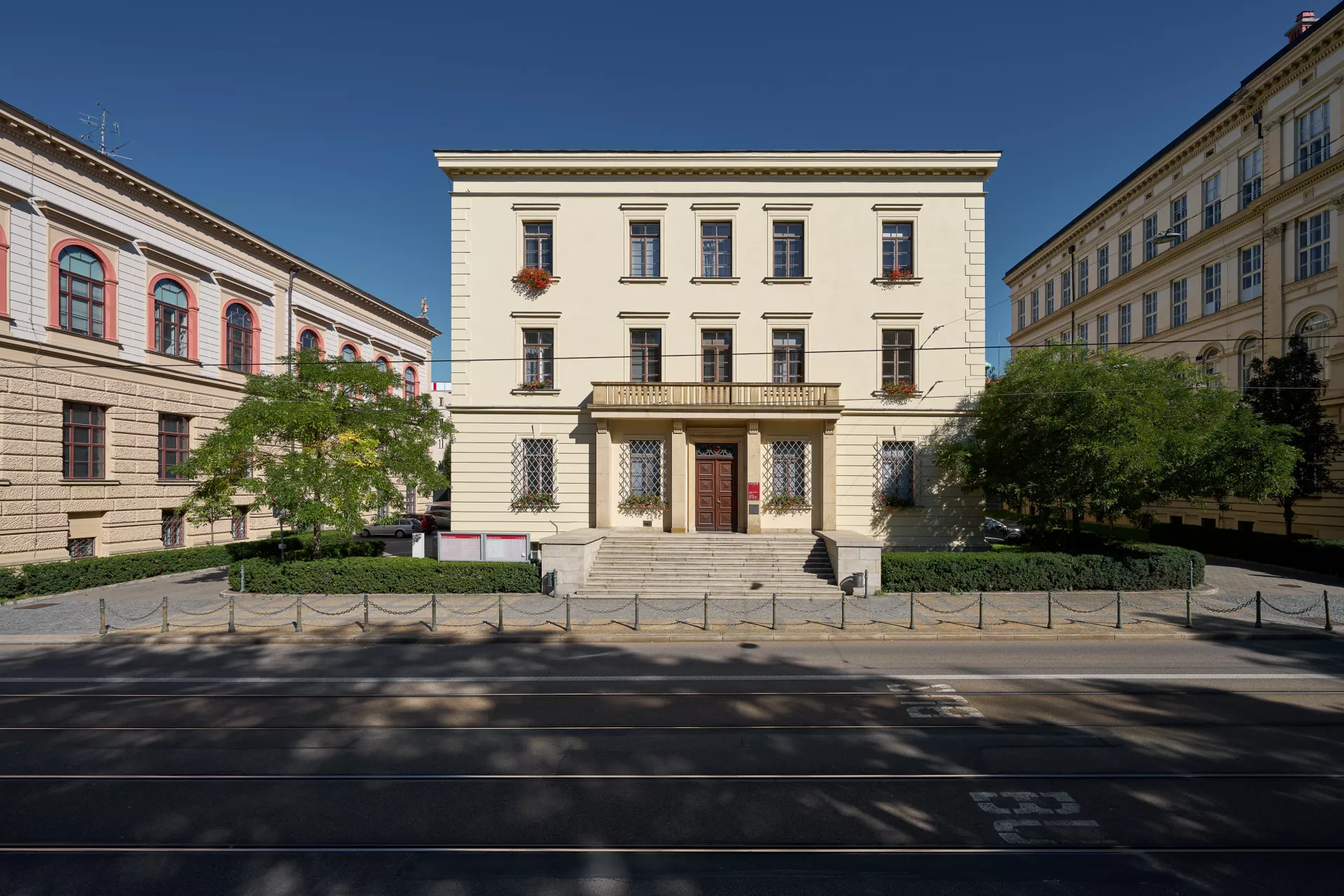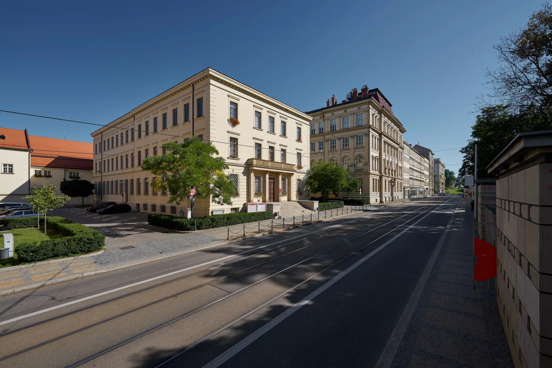 Pád absolutismu a ustavení konstituční monarchie v 60. letech 19. století znamenaly velké změny pro pozoruhodnou, ač nepočetnou komunitu brněnských německých evangelíků. Iniciační přínos evangelíků pro industrializaci moravské metropole ostře kontrastoval s jejich formálním postavením perzekvované náboženské menšiny. Teprve vydání Únorové ústavy a protestantského patentu v roce 1861 otevřelo jejich plné zrovnoprávnění s většinovým obyvatelstvem Brna, což v evangelické obci mimo jiné způsobilo horečnatou stavební aktivitu. Dosud skromný okrsek sestávající z evangelické modlitebny a přilehlého školního domku doplnila reprezentativní školní novostavba navržená renomovaným vídeňským architektem Ludwigem Försterem. Stavba realizovaná v letech 1860-1861 byla vyprojektována v neorenesančním slohu jako sevřená symetrická kompozice se zastřešeným středovým světlíkem. Ludwig Förster s kolegou Theophilem Hansenem – jež je uváděn jako spoluautor, využil v této realizaci motiv toskánské palácové architektury a obdobně jako u své starší školní budovy v Jánské ulici uplatňuje i zde výlučně obloukové prvky u všech okenních a dveřních otvorů i pod obloučky akcentovanou korunní římsou. Dům původně organicky vyrůstající z okolního terénu se vzhledem k recentním pracem na právě vznikající okružní třídě vyvýšil nad své okolí a musel být dodatečně opatřen soklem se schodištěm umožňujícím pasantům přístup k hlavnímu vstupu. To, že se jednalo o první stavbu třídy císařovny Alžběty, kdy brněnský magistrát nebyl s to, pevně stanovit uliční linii, nesla evangelická obec s jistou nelibostí a výsledek problematického plánování je na objektu dodnes patrný mimo značného terénního vyvýšení i jeho mírným vnořením za okolní zástavbu. Avšak významnější než dobové urbanistické obtíže se pro další existenci evangelického okrsku na tomto místě ukázalo obnovení politického života v zemi. Neboť nejen evangelická obec byla zasažena ústavními změnami. Moravský zemský parlament, nyní nově fungující jako volená instituce, plánoval adaptovat a významně rozšířit svoji sněmovnu stojící v těsné sousedství a evangelická obec musela svůj tradiční prostor navíc i s novostavbou školy z tohoto důvodu opustit. Z plánů zemských zastupitelů na přestavbu tohoto místa ovšem rychle sešlo a budova tak dál mohla sloužit školním účelům. Evangelická obec si však promptně vystavěla další školní novostavba u červeného kostela a tak Försterova budova, nyní se nacházející ve veřejné správě, byla nabízena jiným zájemcům. V rychlém sledu se v ní vystřídala: Vyšší dívčí škola a Ústav pro vzdělávání učitelek (1868-1871), Nižší (od r. 1872) Vyšší městská reálka (1871-1876), Státní průmyslová škola (1876–1890), Vyšší zemská reálka (1890–911) a Dívčí lyceum (1911–1939). Kromě německojazyčné výuky všech uvedených školních institucí je vzájemně spojovalo chápání této budovy jako pouhého dočasného provizória. A všechny si během si během fungování v tomto domě vybudovaly vlastní účelové budovy. Přesto se byť někdy jen krátká působení školních institucí do objektu propisovala množstvím úprav, přístaveb a adaptací. Mezi ty zásadní patřila přístavba zadního křídla pro Státní průmyslovou školu v 70. letech a dostavba druhého křídla a jejich propojení v 90. letech 19. století, čímž objekt získal svůj současný obdélníkový půdorys. Předání a adaptace objektu pro potřeby magistrátu města Brna v závěru třicátých let 20. století změnilo nejen funkci budovy, ale svým rozsahem i celkové vyznění Försterovy (a Hansenovy) architektury.