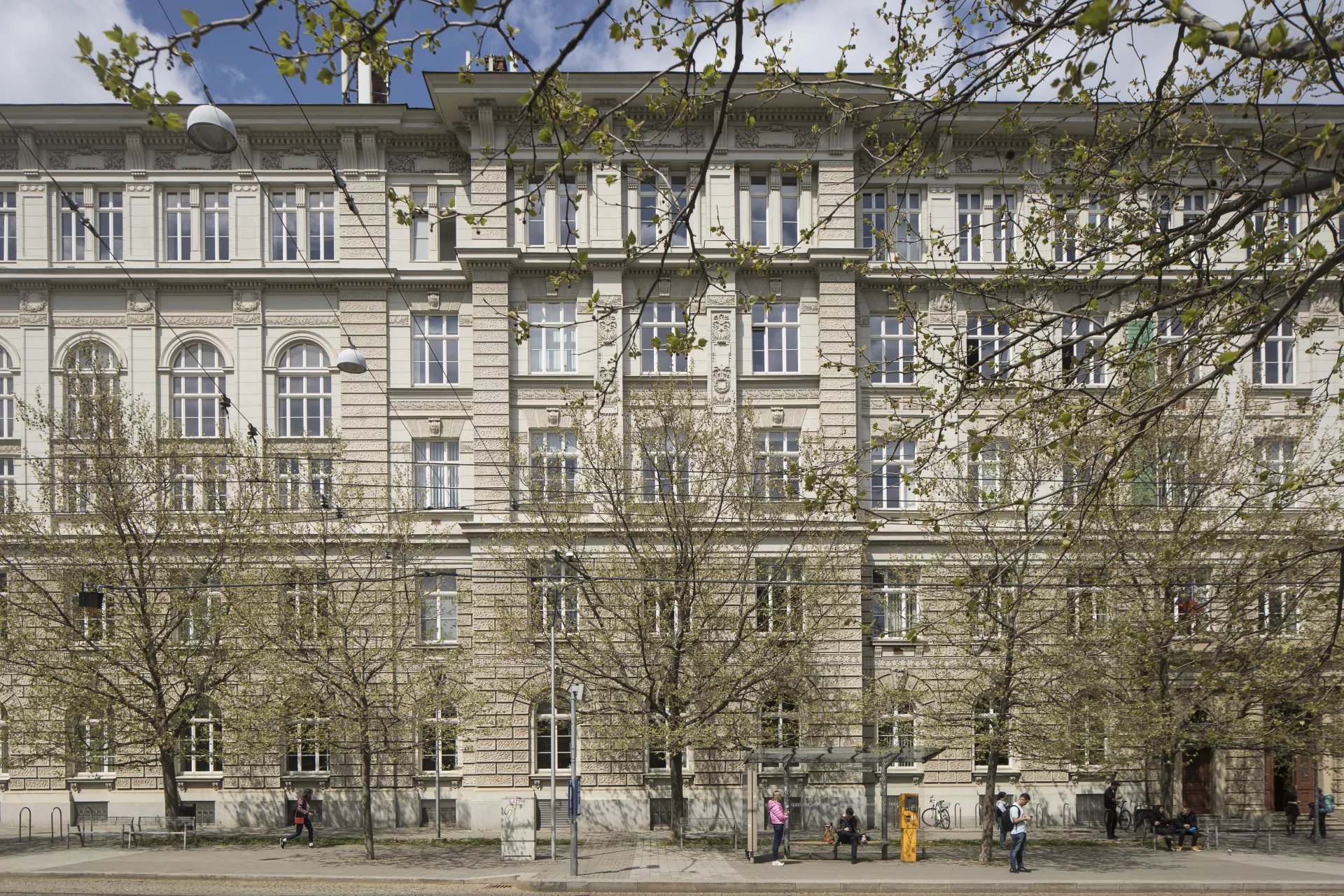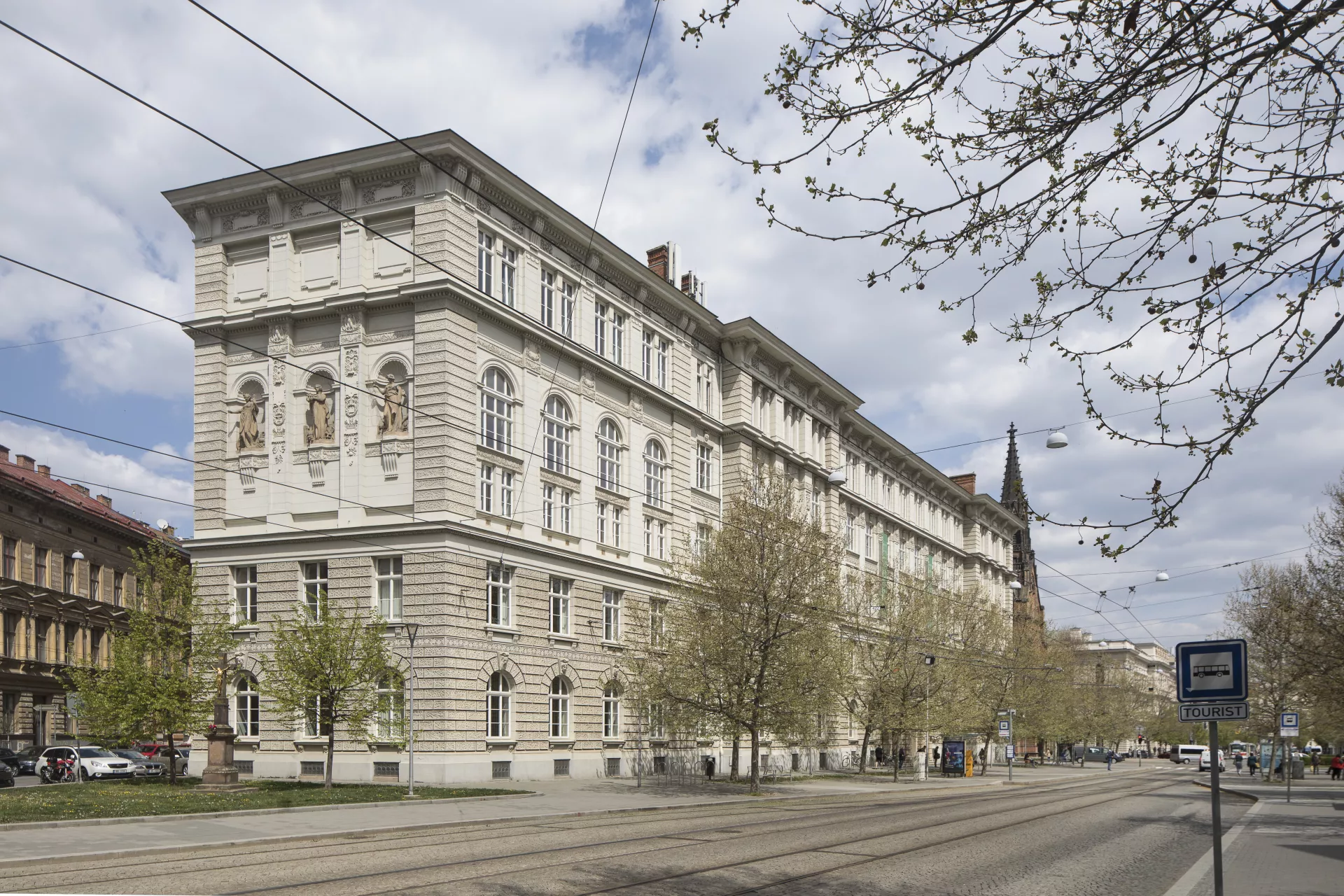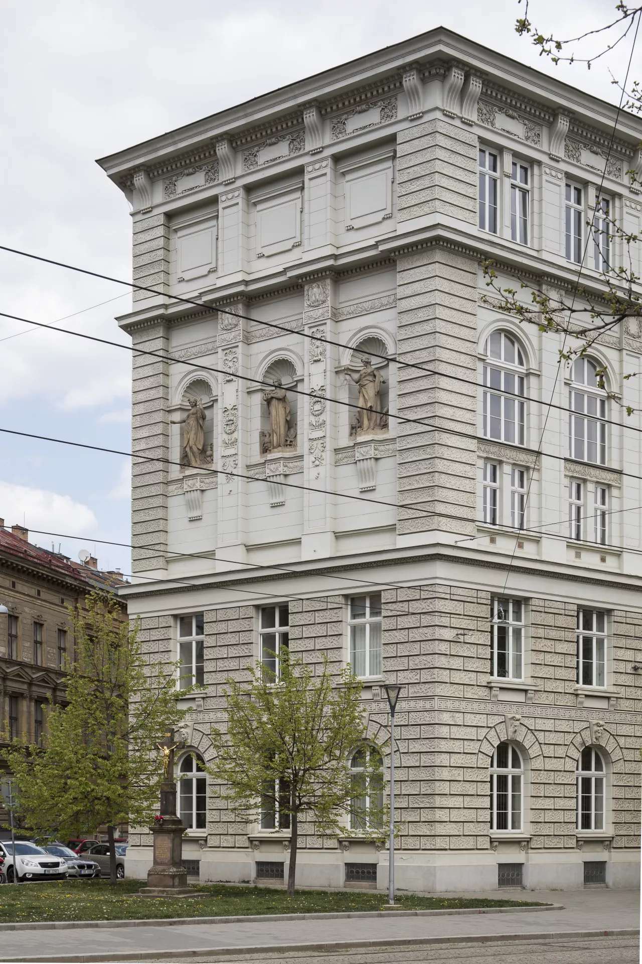 Krátce po svém příchodu z Vídně do Brna roku 1893 byl architekt Ferdinand Hrach jako mimořádný profesor Německé vysoké školy technické (Deutsche technische Hochschule in Brünn) v Brně osloven, aby vypracoval návrh k rozšíření stávajících prostor školy. Díky rozvoji technických oborů, jejich specializaci a rostoucímu zájmu o jejich studium se původní zamýšlená přístavba stávající budovy z roku 1860 na Komenského náměstí rozšířila o další objekty, jedním z nich byla novostavba Chemického institutu na nároží ulic Joštova a Údolní. Pozemek získala škola v areálu bývalé botanické zahrady po zrušení skleníku a observatoře. Jednopatrovou osově souměrnou stavbu řešil Ferdinand Hrach na půdorysu lichoběžníku s vnitřním dvorem přístupným z hlavního vchodu a zadním průjezdem sloužícím k prosvětlení. V prostorách sníženého přízemí, parteru a jednoho nadzemního podlaží byly umístěny pracovny a laboratoře katedry obecné, analytické a zemědělské chemie a dále katedry chemických technologií, hygieny a bakteriologie se dvěma velkými posluchárnami. V přízemí se navíc nacházel soukromý byt služby školy. Lichoběžníkový půdorys a poměrně malá plocha zástavby umožnila architektovi dynamičtější práci s hmotou. Výrazným prvkem jsou z fasády vystupující rizality a průběžné římsy, které oddělují zvýšené bosované přízemí od prvního patra. Ve všech patrech se jako společný prvek fasády objevuje použití sloupového řádu, který se uplatňuje také v interiéru. Jednoduché pilastry rámují vestibul hlavního vstupu, toskánské sloupy se pak objevují na hlavním schodišti. V drobnějším dekoru kompozitních hlavic, vlysů a podlahy se opakuje motiv rozety. K architektonickému tvarosloví obou staveb se Ferdinand Hrach vyjadřuje ve svém komentáři vydaném u příležitosti slavnostního otevření nových prostor německé techniky v říjnu roku 1899. Obdobně jako u stavby Vyšší obchodní školy na nedaleké Husově ulici i zde podle svých slov usiloval při řešení vnějšího průčelí i fasád dvora o dodržení kultivovaných a jednoduchých forem, tedy prvků klasické renesance. Výrazné prolamování vnější fasády v případě Chemického institutu vysvětluje promítnutím dispozičního řešení interiéru navenek. Po druhé světové válce, kdy došlo ke zrušení Německé vysoké školy technické, se do bývalého Chemického institutu i do sousedního objektu školy přestěhovala Lékařská fakulta Masarykovy univerzity. Od roku 2010 zde sídlí jako v jedné ze tří budov Filozofická fakulta Masarykovy univerzity.