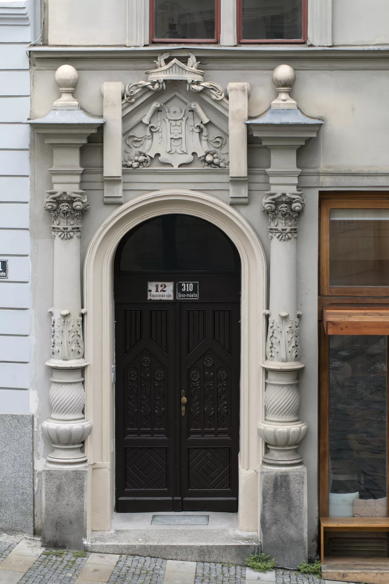 Nájemní dům s velmi nekonvenčně pojatým průčelím představuje takovou polohu architektury pozdního historismu, která se „přibližuje na okraj dobově možného či akceptovatelného“, jak stavbu charakterizoval historik architektury Pavel Zatloukal. Ten za jeho autora považoval tehdy začínajícího architekta Vladimíra Fischera, toto autorství se však nejeví jako pravděpodobné. Dům je součástí skupiny tří nájemních domů (Kapucínské náměstí č. 10, 12 a 12) postavených na parcelách uvolněných asanací během roku 1899. Povolení k demolici staršího a stavbě nového domu obdržel Max Herzog 27. 1. 1899, k témuž roku stavbu také datuje římský letopočet na fasádě. Na úzké parcele vznikla novostavba nájemního domu ve vysokých, úzkých proporcích s vertikálně komponovaným dvouosým průčelím. Značně nekonvenční fasáda je jakousi „otevřenou učebnicí architektury“ či „přehlídkou všech uměleckých stylů“, které navršeny na sebe vytváří bizarní celek. Nalezneme zde tak románský obloučkový vlys, gotické chrliče, renesanční stupňovitý štít a niku s konchou, barokní mariánskou sochu, rokokové lastury, klasicizující pilastry či antikizující ornamenty. Výrazná plasticita přepjatého dekoru, jenž v podstatě celoplošně pokrývá průčelí, vyvolává dojem, že dům je spíše sochařským, než architektonickým dílem. Kompozice dekoračních motivů evokují pocit nahodilého rozmaru či ironické hry s různorodými citacemi minulosti. V důsledku tak zřejmě nepředstavují vážně míněnou přehlídku historických stylů, ale jakousi směs, „jejímž cílem je pouze pohrát si a vyvolat dojem starobylosti. […] Průčelí tohoto domu je ve své ostentativní antifunkčnosti, nelogičnosti, skladebné i literární přetíženosti romantickou hříčkou, pohádkovým ohlédnutím za odcházející érou historismu.“ Obdobně bizarních fasád, u nichž se architektura pozdního historismu dostává do této krajní polohy, nalezneme v Brně více, převážně v tvorbě Germana Wanderleye a jeho žáků. Rodinné jméno majitelů domu Herzog připomíná velké písmeno H ve štítu portálu. Za pozornost stojí některé cenné detaily v interiéru, jako štuková výzdoba vestibulu, jehož dominantním prvkem je pohádkový motiv velkých plastických sov, i dekorativní kovové zábradlí schodiště. Dům prošel citlivou obnovou a je v exteriéru dobře dochován. Nadále souží jako nájemní dům s citlivě adaptovaným obchodním parterem.