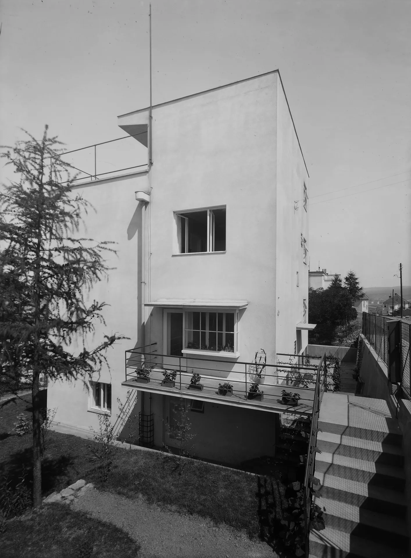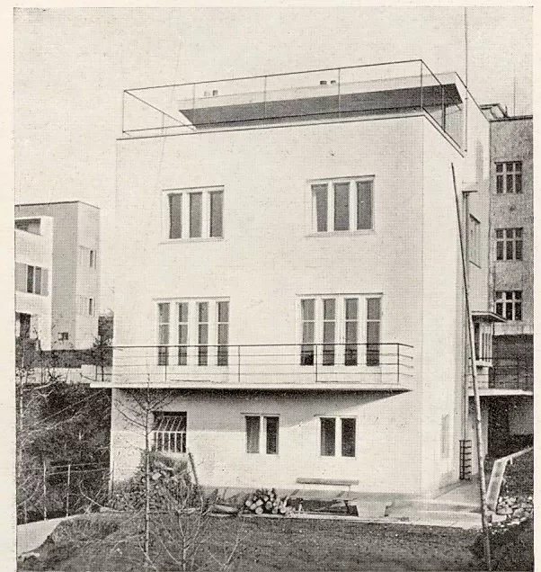 Roku 1928 navrhl Jaroslav Grunt rodinný dům pro Marii a Annu Jelínkovy v ulici Tůmově. Použil zde koncept dovnitř orientované dispozice, která se projevuje plnou uliční fasádou s minimem oken. Podobné minimalistické pojetí, které chránilo soukromí obyvatel, použil i architekt Adolf Gustav Schneck u domu ve stuttgartské kolonii Weissenhofsiedlung. Grunt ji měl možnost navštívit roku 1927 společně s Janem Vaňkem a Bohumilem Turečkem. Dvoupatrový dům s plochou střechou na čtvercovém půdorysu se otevírá hlavními obytnými místnostmi na západ do zahrady, kam vede i balkon v prvním patře a střešní terasa se subtilním zábradlím. Vchod do domu, který ustupuje z uliční čáry, je umístěn v levé boční fasádě a přístupný z podesty. V přízemí se nachází prostorná hala se schodištěm, kuchyň, jídelna a obývací pokoj. V patře byly umístěny tři ložnice a koupelna, podkroví obsahovalo prostorný ateliér se vstupem na terasu. V suterénu měl byt domovník a bylo zde provozní zázemí s prádelnou, skladem paliva a potravin. Zajímavým prvkem uliční fasády je Gruntovo oblíbené kaktusové okno v přízemí, které umožňuje pohled z haly přímo do ulice. PH