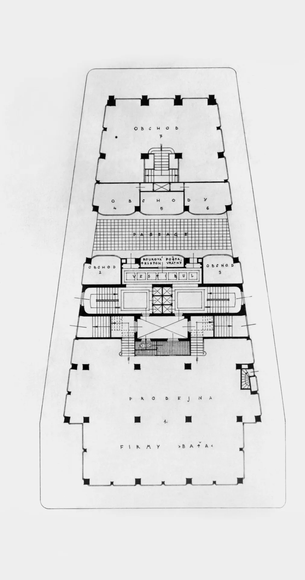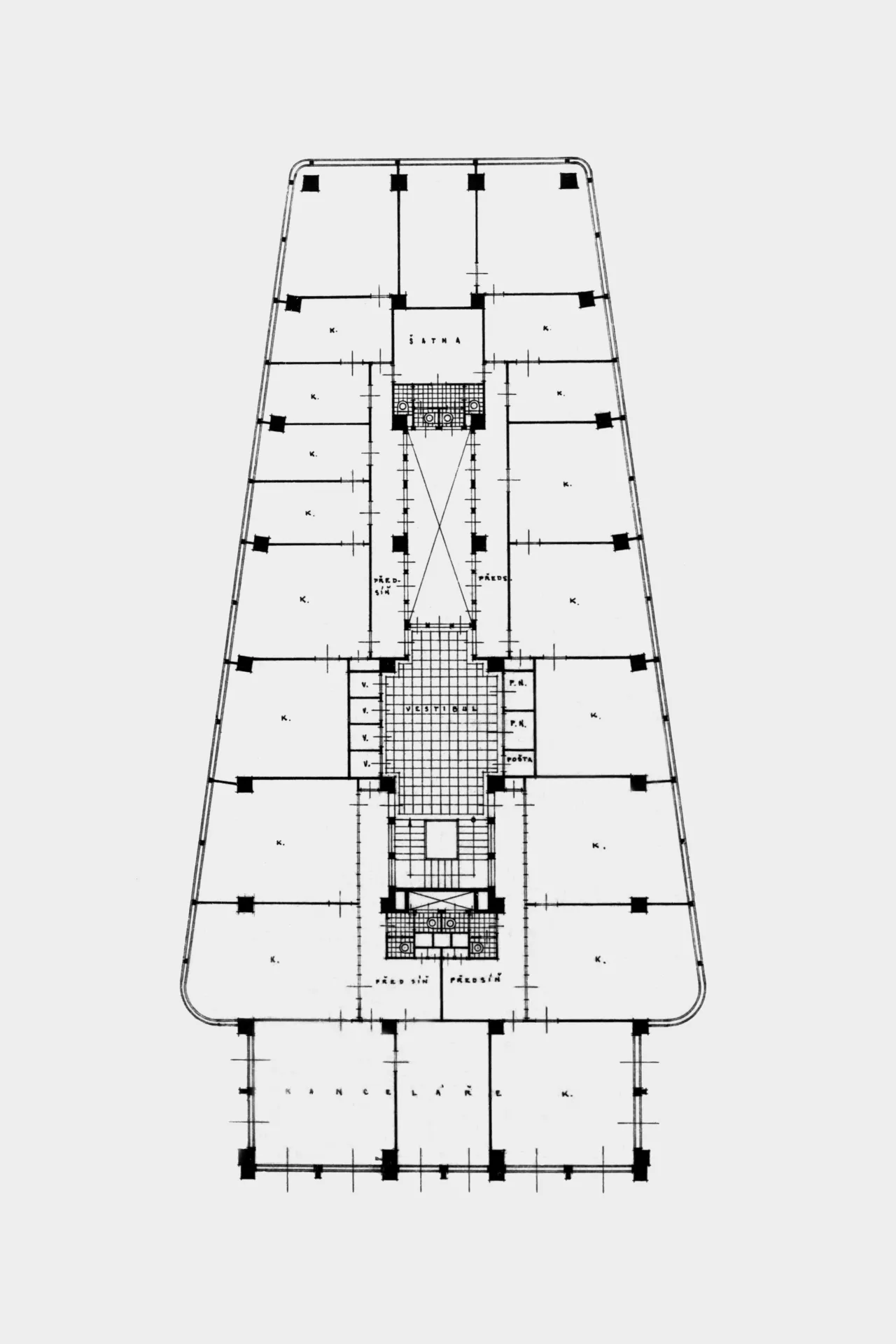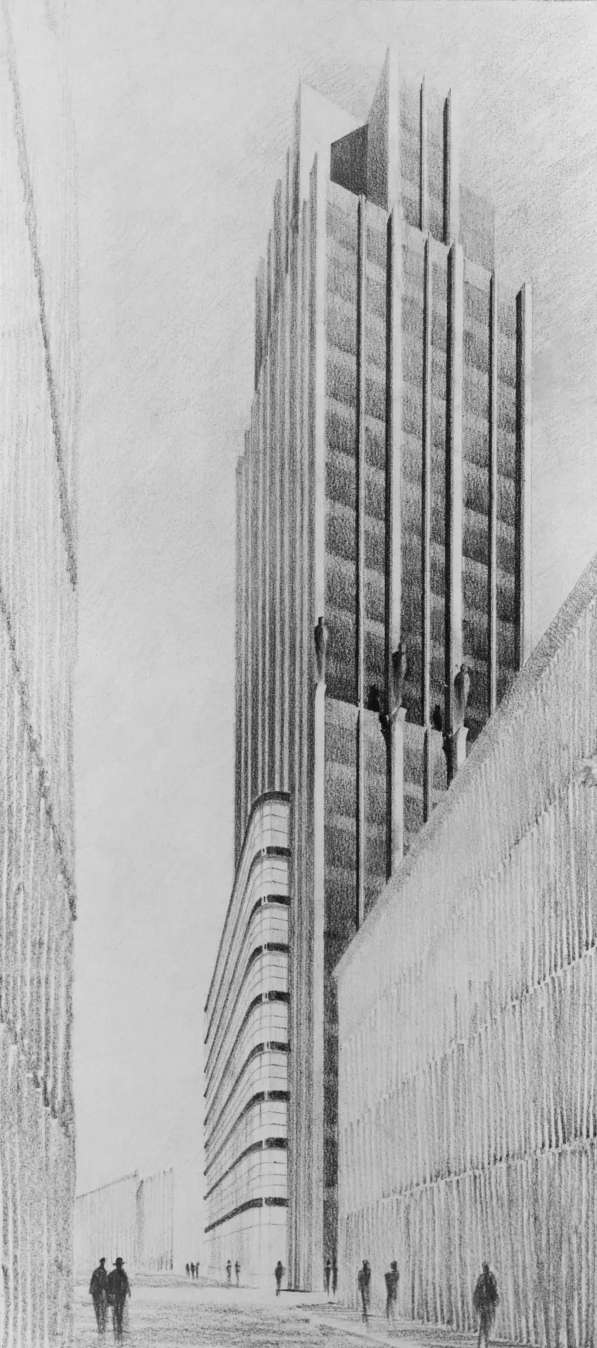 Soutěžní návrh na obchodní a administrativní budovu firmy Baťa