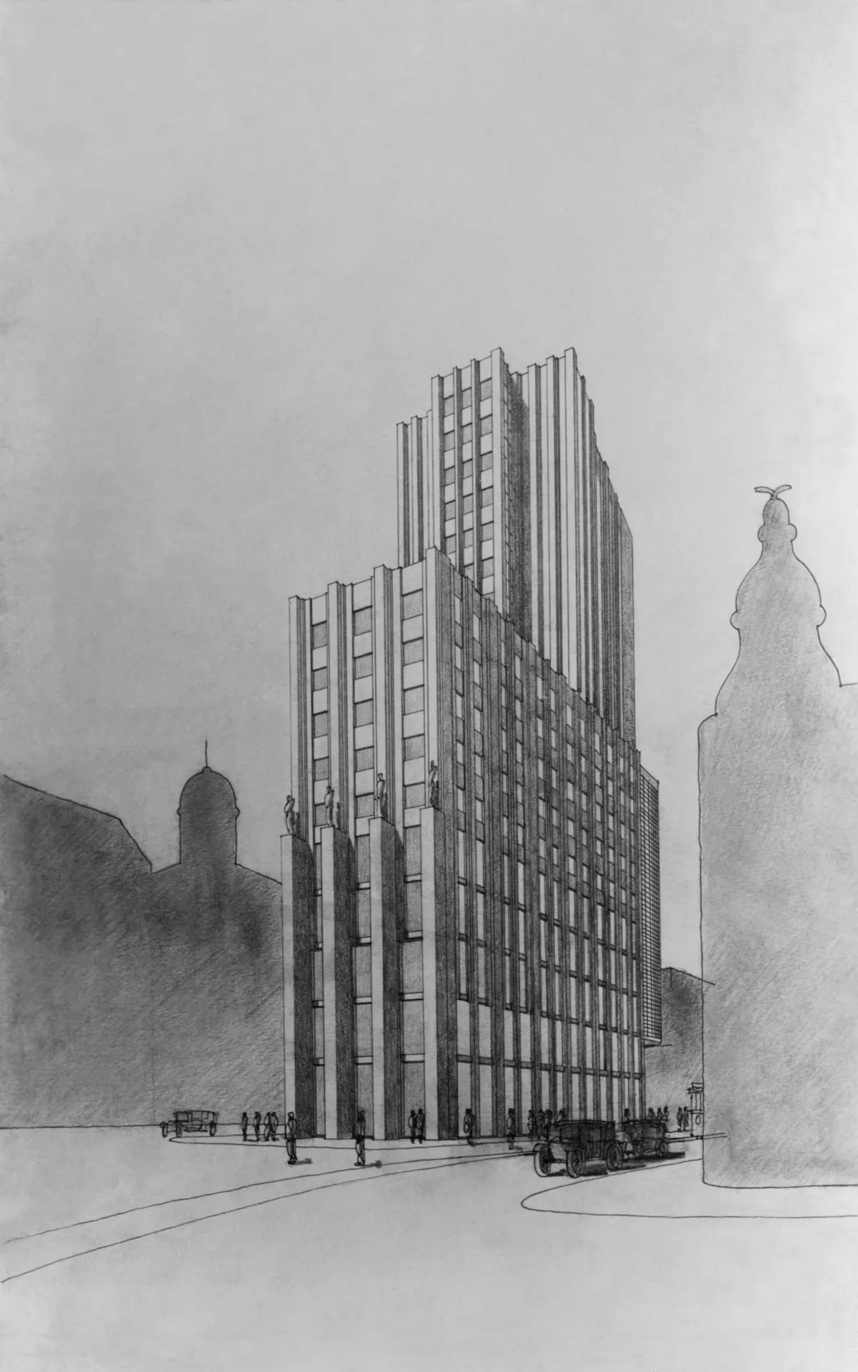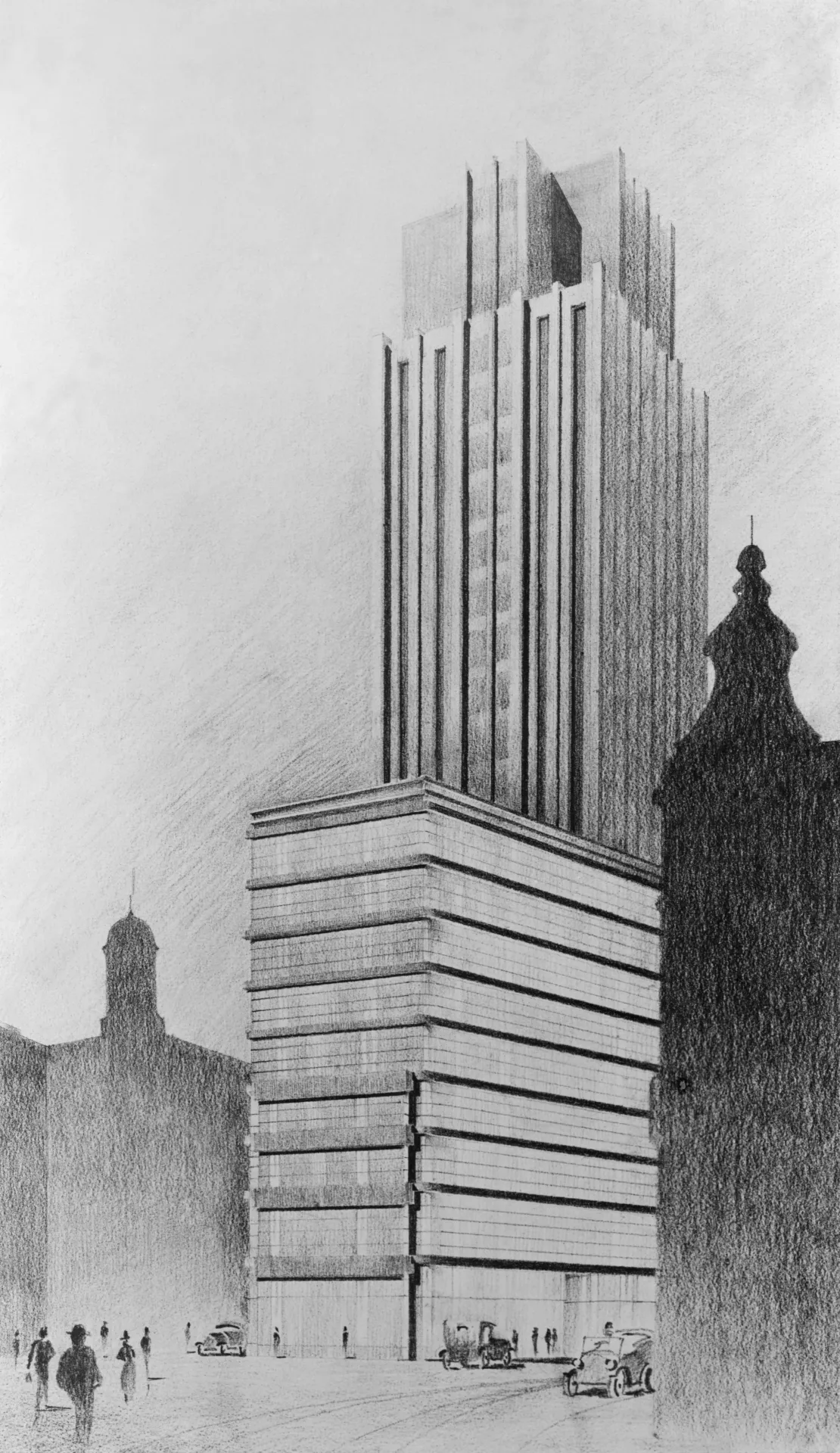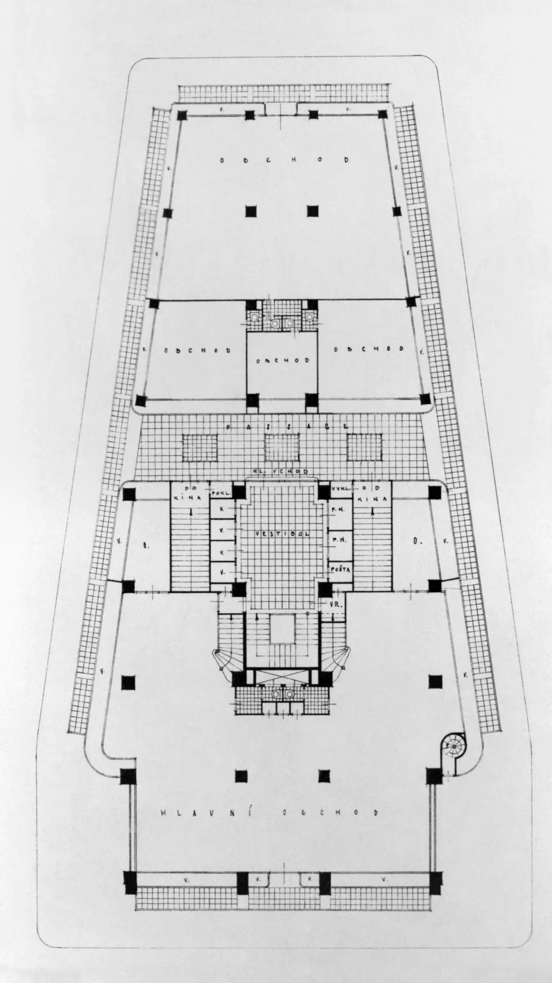 Soutěžní návrh na obchodní a administrativní budovu firmy Baťa