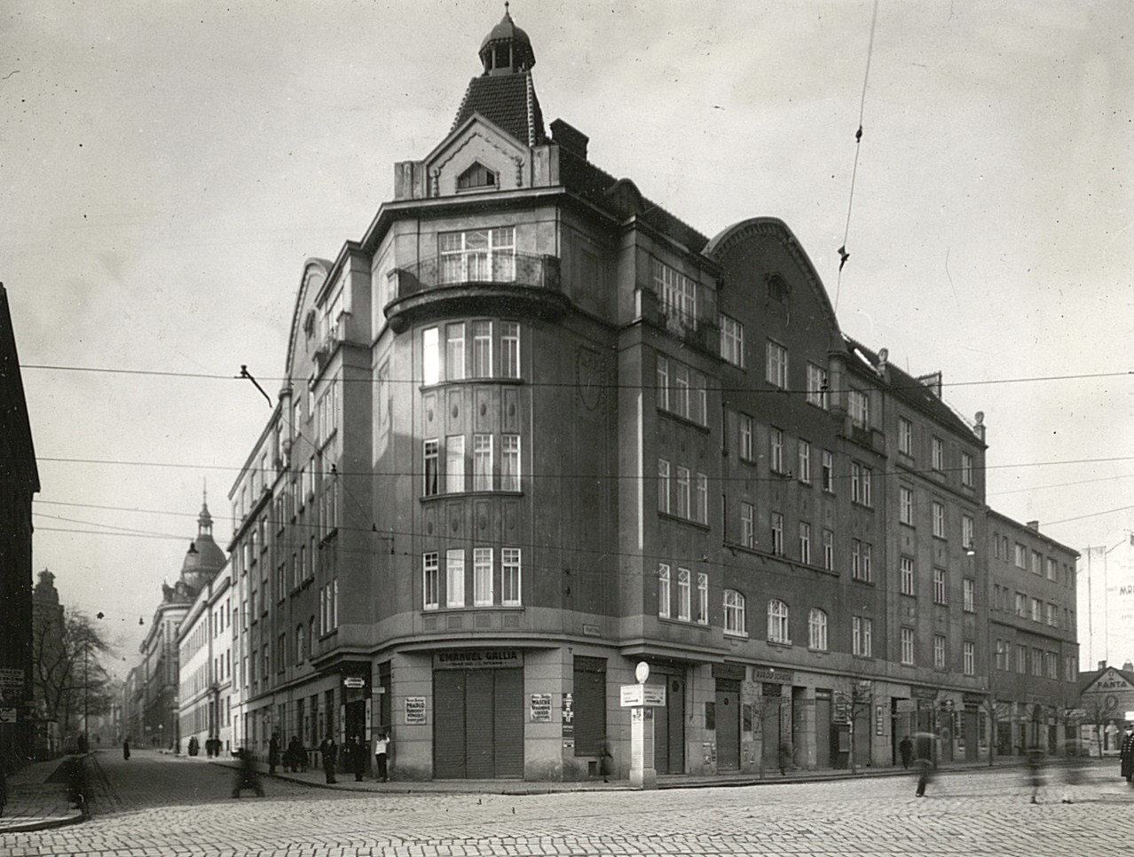 Na rozlehlé nárožní parcele, na místě původního staršího dům s hostincem, jehož podobu s podloubím otevřeným do ulice Cejl zachycují historické kresby a fotografie, vznikla trojkřídlá šestipodlažní budova s obchodními prostory v přízemí a s byty v patrech. Návrh průčelí nájemního domu spadá do rané Čermákovy tvorby a jedná se zřejmě o první architektovu zakázku tohoto druhu v Brně. Zvolené řešení bylo velmi výrazně inspirováno soudobou vídeňskou architekturou, zvláště tvorbou Josefa Hoffmanna. Náročná kompozice fasád obou křídel budovy spojených zaobleným nárožím završeným atikou a věžovitou nástavbou je vyváženou sestavou vertikál a horizontál členících souvislé hladké plochy, dekorované pouze střídmým ornamentem ve stylu klasicizujícího proudu vídeňské secese. Obě průčelí završují výrazné štíty lemované obloučkovým vlysem. Rozsáhlé plochy čel štítů jsou hladké, prolomené pouze jedním okenním otvorem rámovaným subtilním dekorem geometrizovaných festonů. Parapetní výplně oken jsou dekorovány obdélnými rámy s vpadlými poli, v jejichž centru jsou umístěny mírně vypouklé ovály. Tento způsob zpracování parapetních ploch, mající opět původ v inspiraci architekturou Josefa Hoffmanna (obytný dům rodiny Beer-Hofmann nebo vila Eduarda Asta na Hohe Warte ve Vídni), si Bohumír Čermák oblíbil a na svých předválečných realizacích jej opakovaně používal. Geometrické sestavy ústupkových obdélných ploch, které nacházíme v orámování dvojic nad sebou umístěných oken, jsou, stejně jako odstupňované lizénové rámy v krajních osách průčelí, ohlasem na raně modernistickou a kubistickou architekturu.
