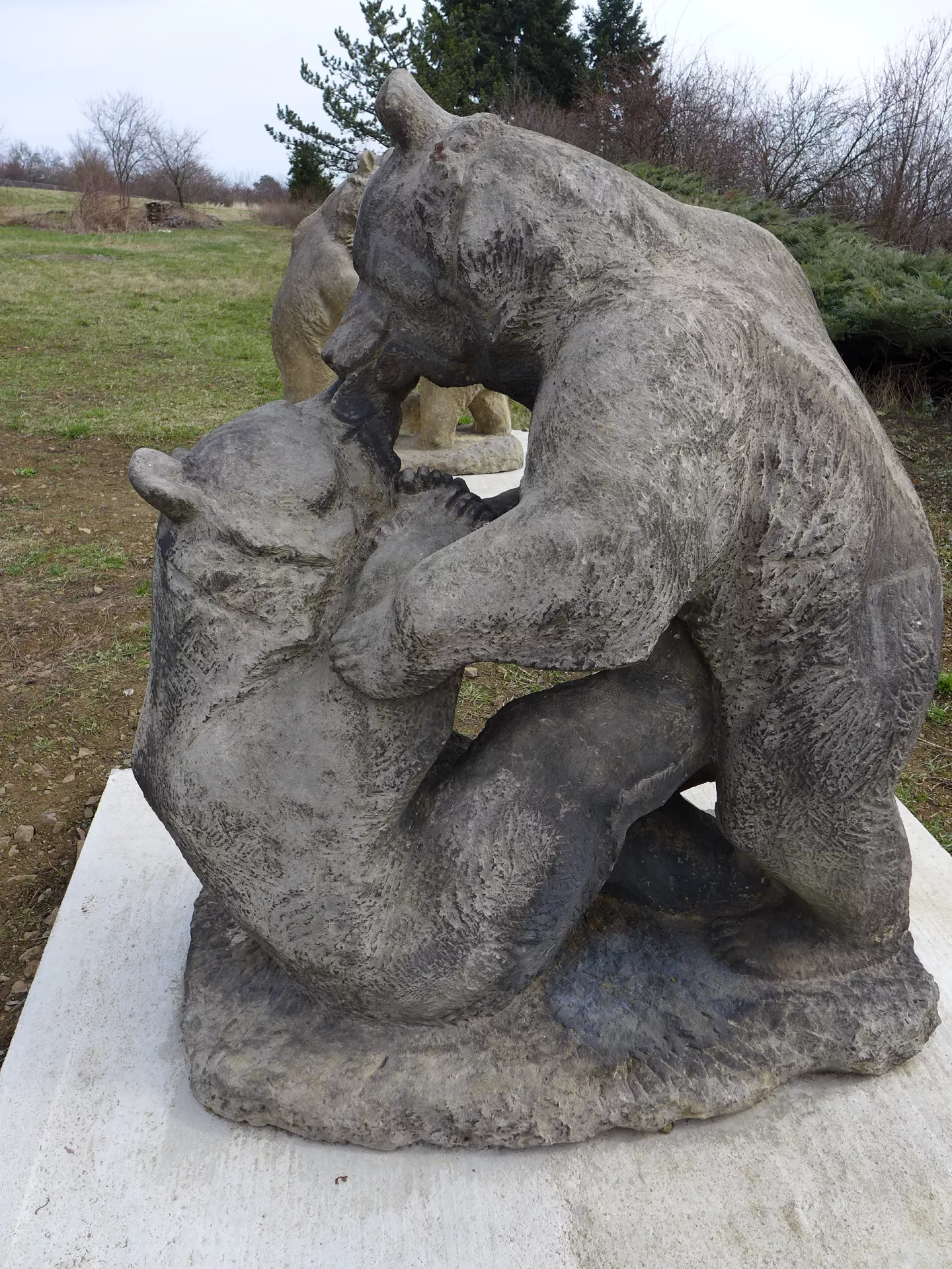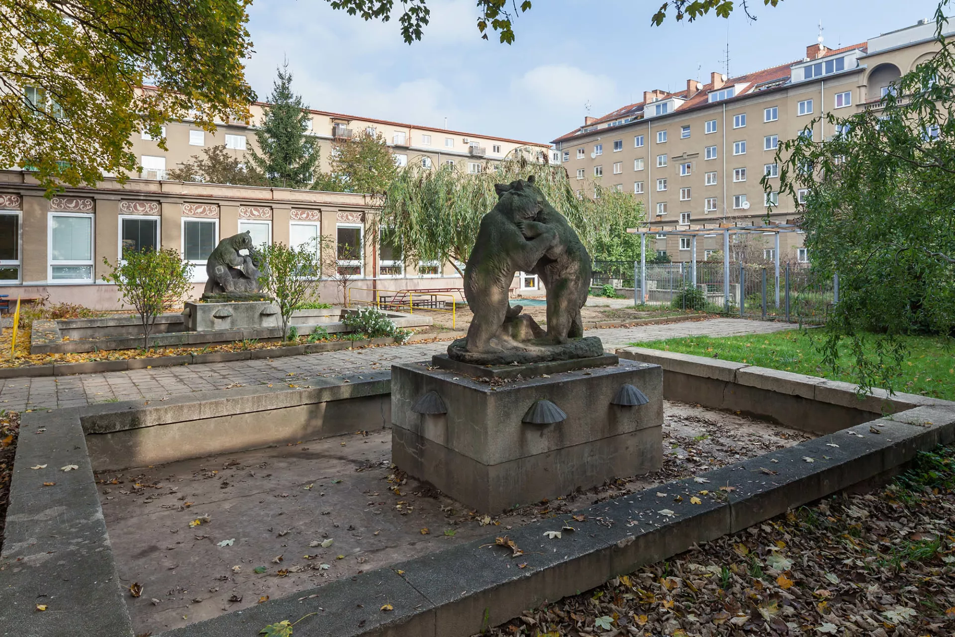 První fotografie zachycuje původní umístění – sousoší bylo součástí vodního prvku mateřské školy v Tučkově ulici. Pískovcové sousoší bylo v roce 2016 odstraněno během rekonstrukce zahrady a je druhotně umístěno ve venkovním areálu plaveckého bazénu na Kraví hoře. Rozměry 165 × 160 × 80 cm; 160 × 145 × 75 cm